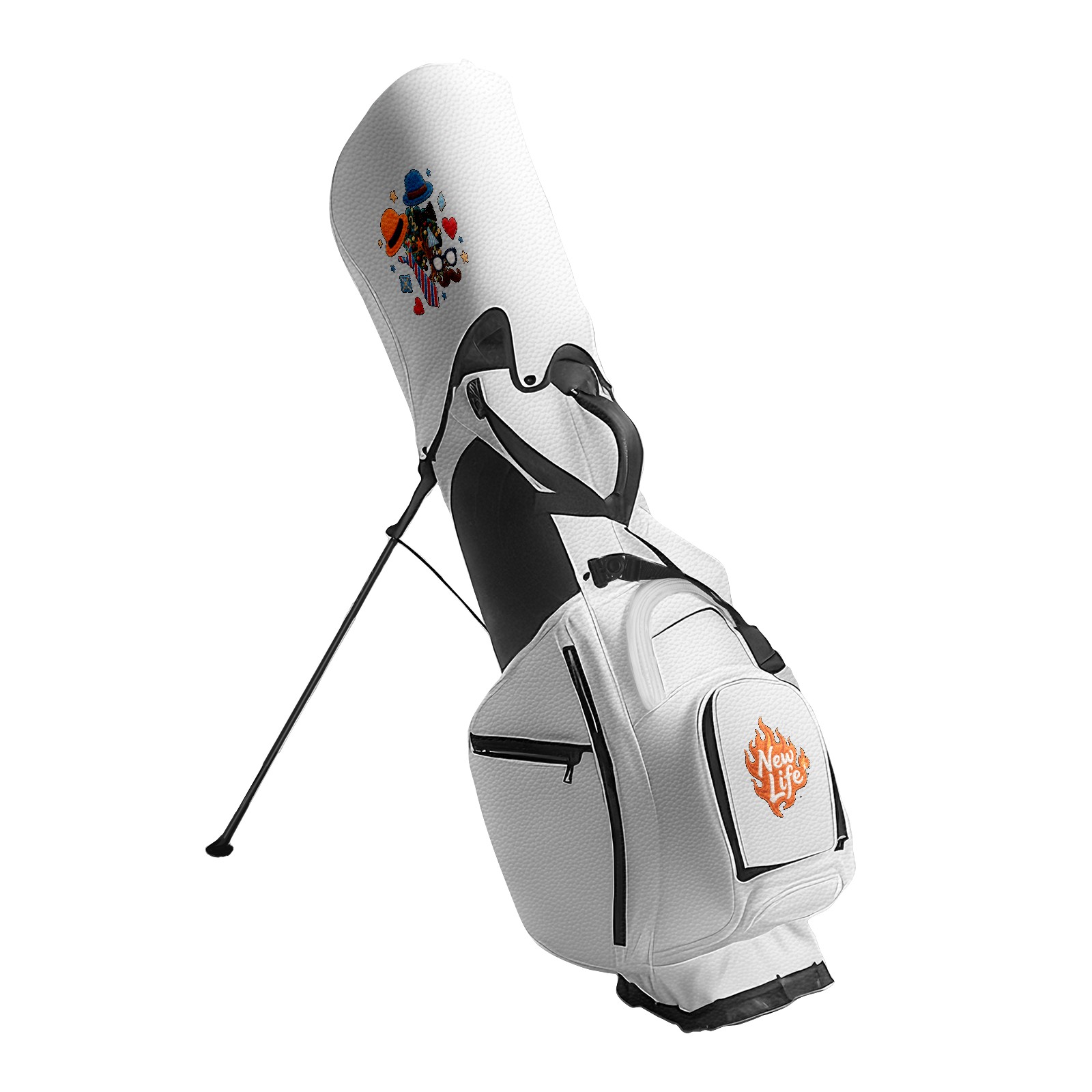 • <p>The Golf Stand Bag, designed specifically for golf enthusiasts, offers a choice of 5 - way and 14 - way top dividers. Its 5/14 - compartment design with independent full - size club compartments safeguards clubs from collisions. Equipped with a rain cover, waterproof zippered pockets (tested to resist moderate to heavy rain), and a high - performance cooler pouch that can keep drinks cold for hours, it ensures a convenient golfing experience. The bag features thickened, breathable neoprene shoulder straps and an adjustable chest buckle, reducing shoulder fatigue by 35% compared to regular bags, and its automatic aluminum alloy stand provides stable support on various terrains. Crafted from top - tier, water - resistant litchi - grain PU leather, with double - stitched edges, reliable zippers tested for over 15,000 cycles, and anti - abrasion bottom studs, it guarantees durability. You can personalize it with embroidery on the front pocket and rain cover side (15*15cm area), and it comes in classic black and white, with a matte finish and litchi - grain texture that combines business and leisure styles. Measuring 130 cm in height, 37 cm in width, and 31 cm in depth (including rain cover) and 90 cm x 31 cm x 37 cm (excluding rain cover), it strikes a balance between storage and portability, capable of holding 14 standard - sized clubs and other essentials, and it also includes a dust cover. It's truly the perfect choice for golfers.<br></p>