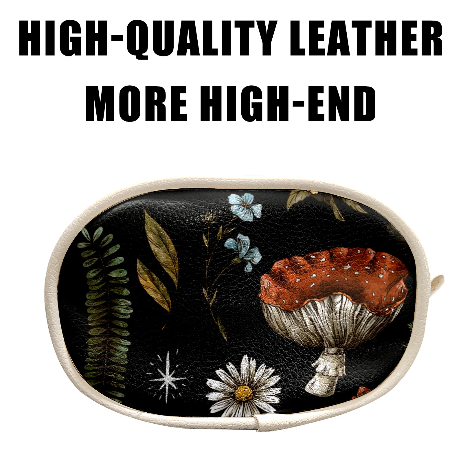 Women's and men's slim fit running waist bags, running waist belts, money belts, Premium Leather Vintage Botanical Mushrooms