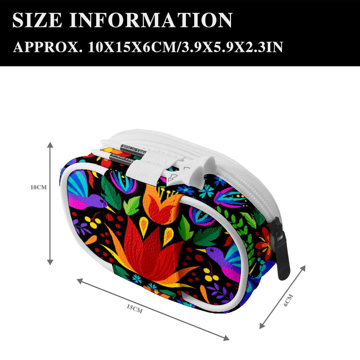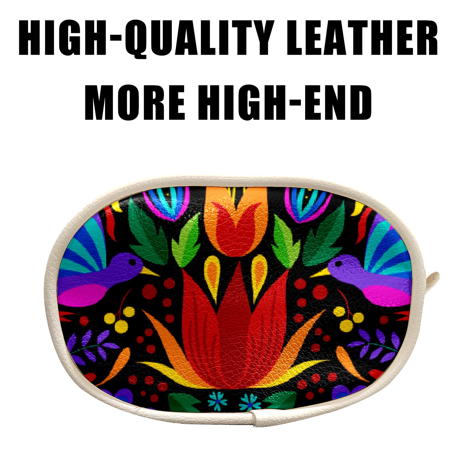 Women's and men's slim fit running waist bags, running waist belts, money belts, Premium Leather Mexican Color Bird Flower Leaves