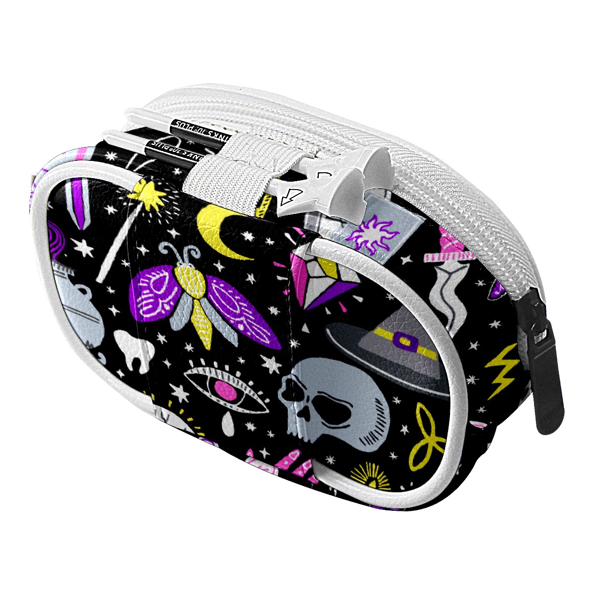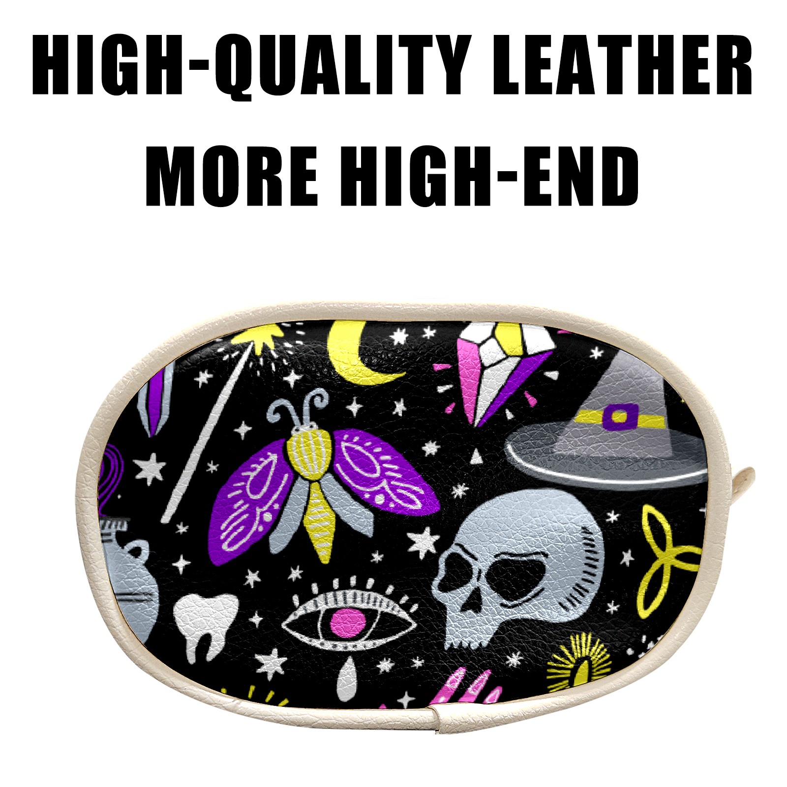 Women's and men's slim fit running waist bags, running waist belts, money belts, Premium Leather Halloween Bat Skull Witch