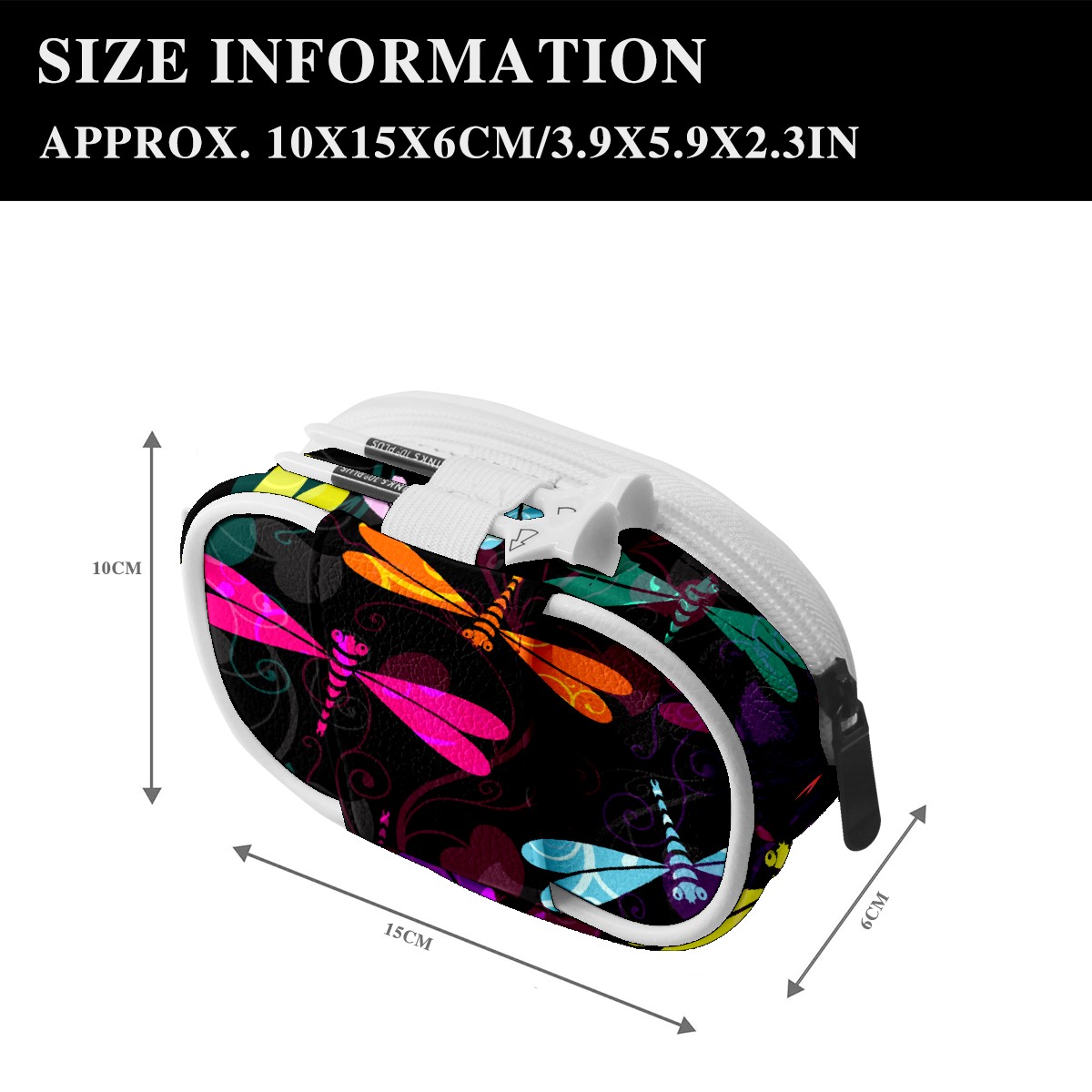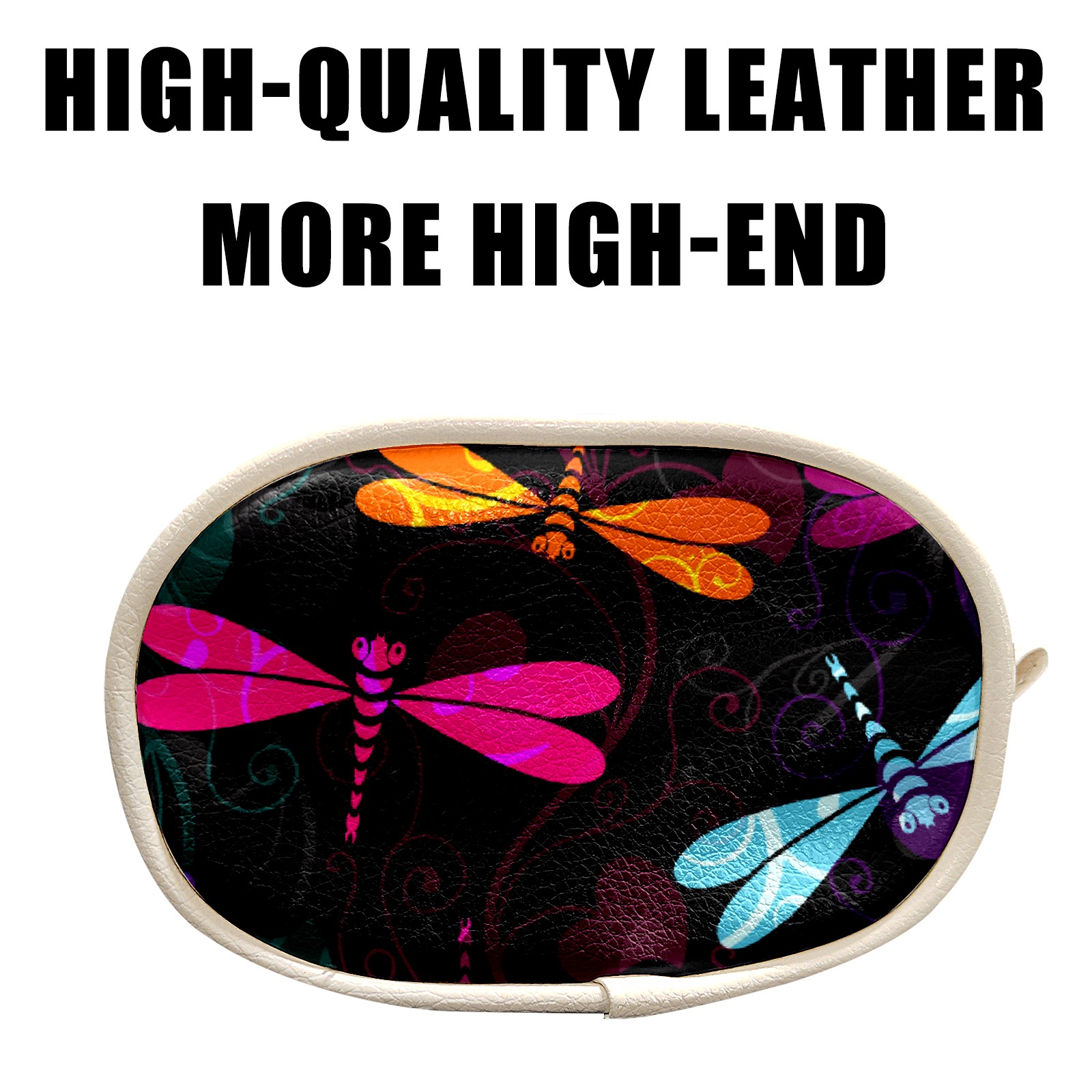 Women's and men's slim fit running waist bags, running waist belts, money belts, Premium Leather Colorful Insect Dragonfly Pattern