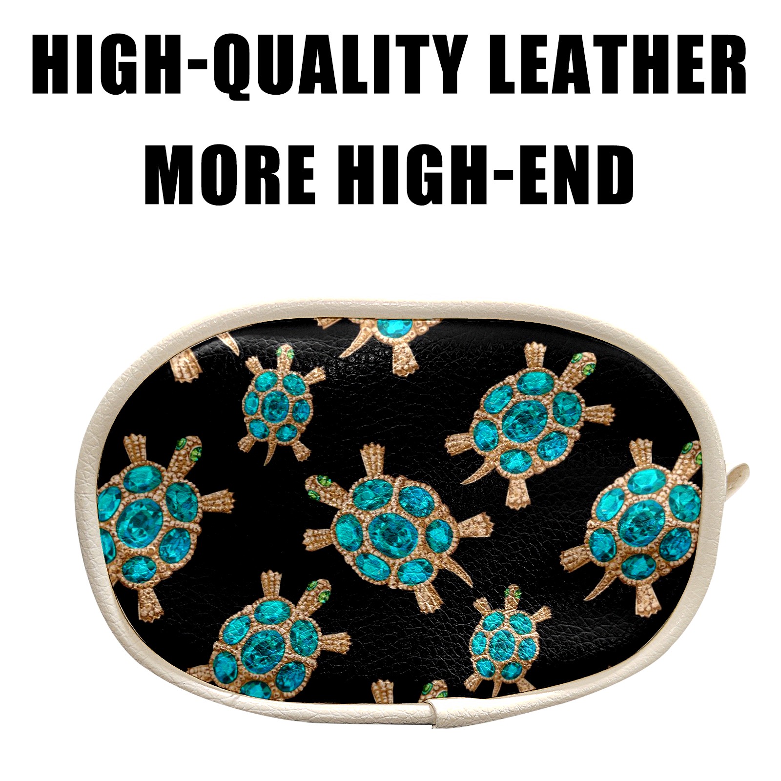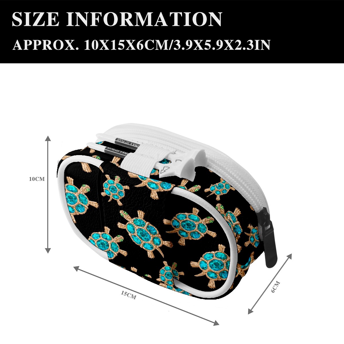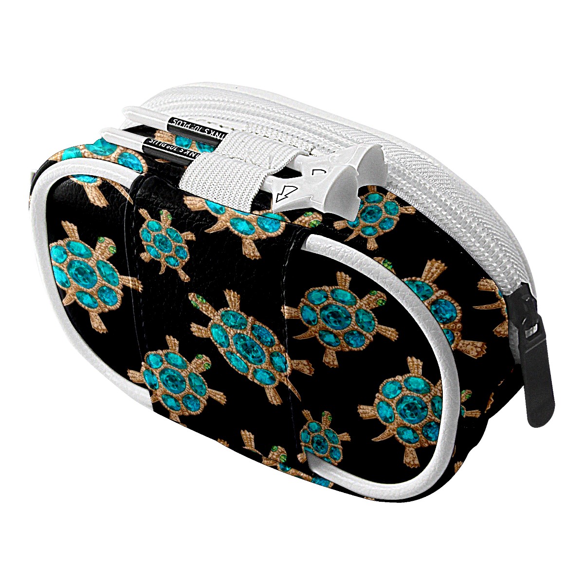 Women's and men's slim fit running waist bags, running waist belts, money belts, Premium Leather Turtles Blue Stones Pattern Black