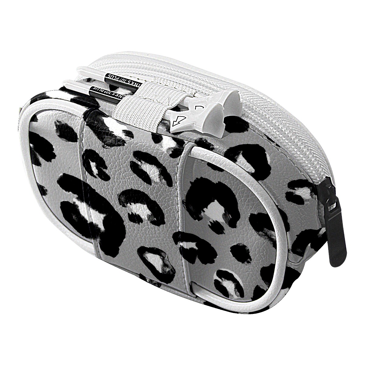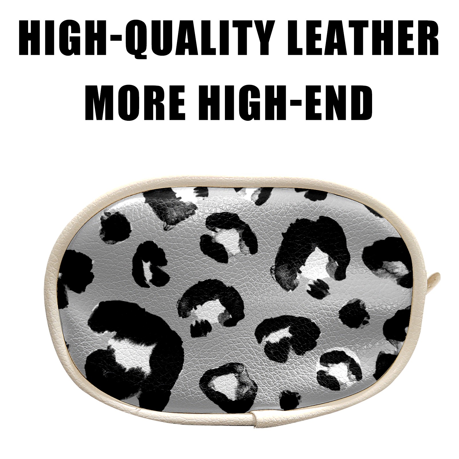 Women's and men's slim fit running waist bags, running waist belts, money belts, Premium Leather Gray Black Leopard Print