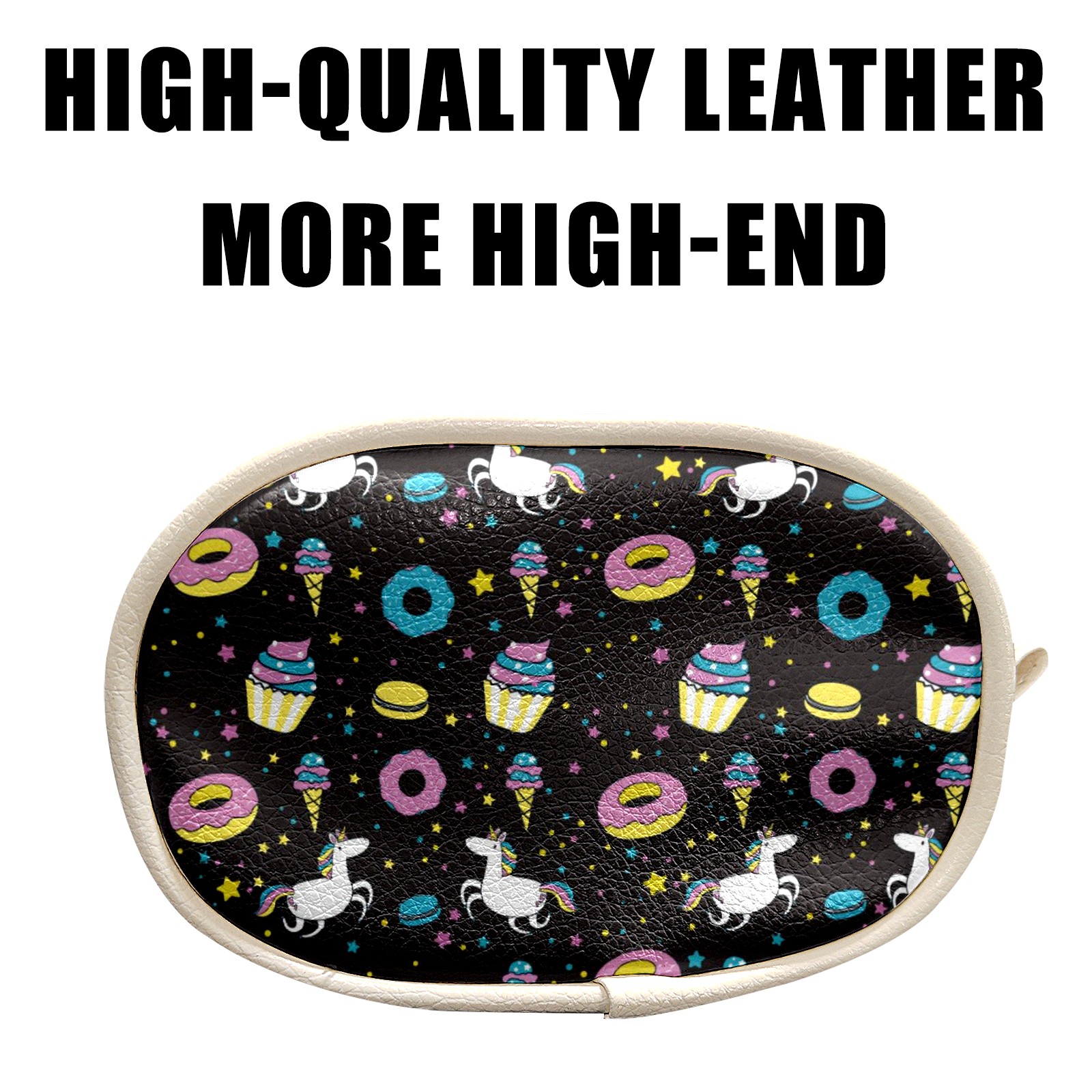 Women's and men's slim fit running waist bags, running waist belts, money belts, Premium Leather Colorful Unicorn Doughnut Cartoon