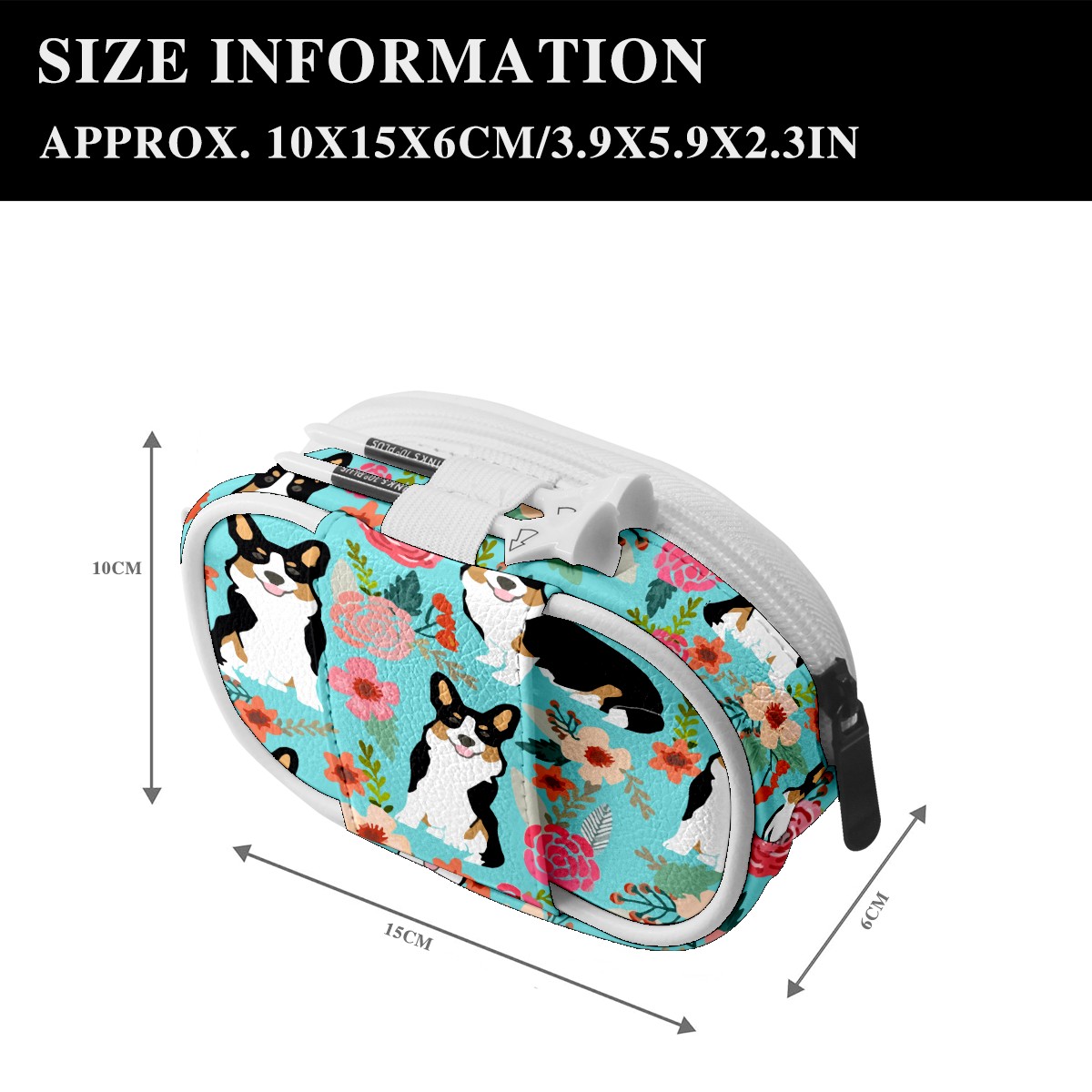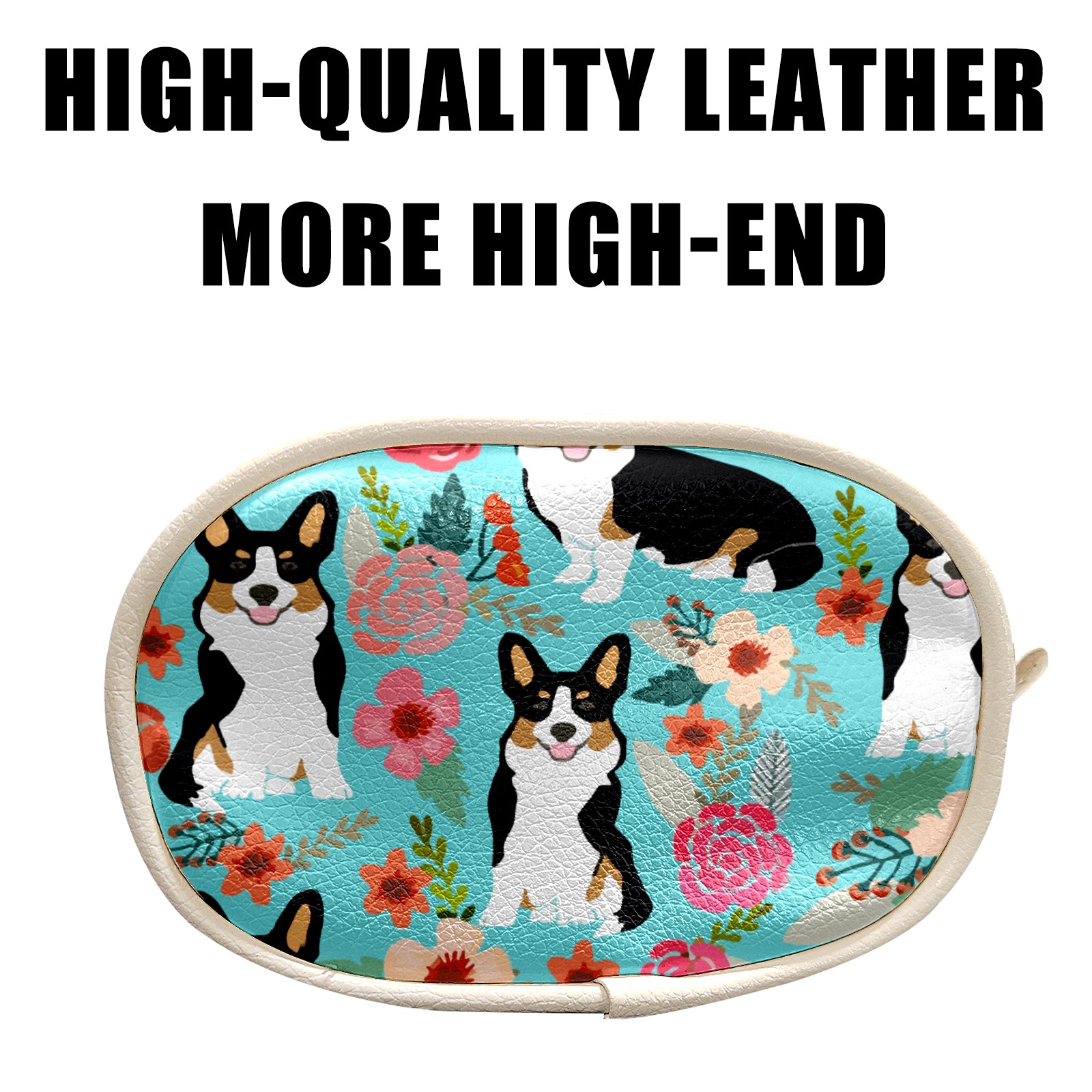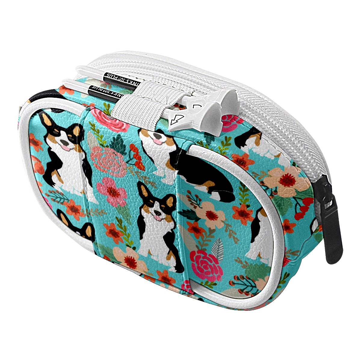 Women's and men's slim fit running waist bags, running waist belts, money belts, Premium Leather Lovely Corgi & Flowers