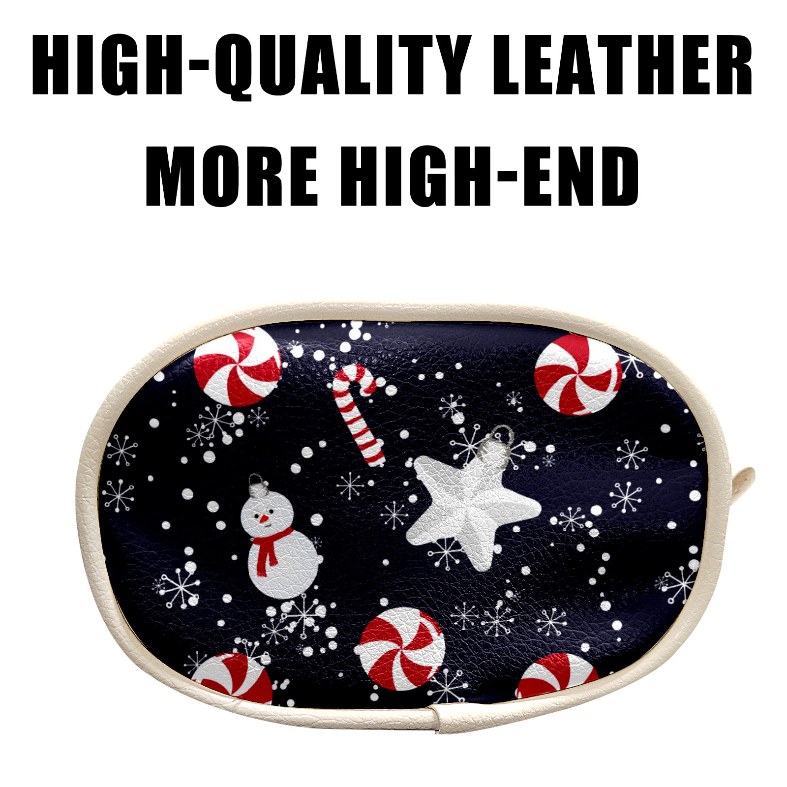 Women's and men's slim fit running waist bags, running waist belts, money belts, Premium Leather Christmas Snowflakes Snowman