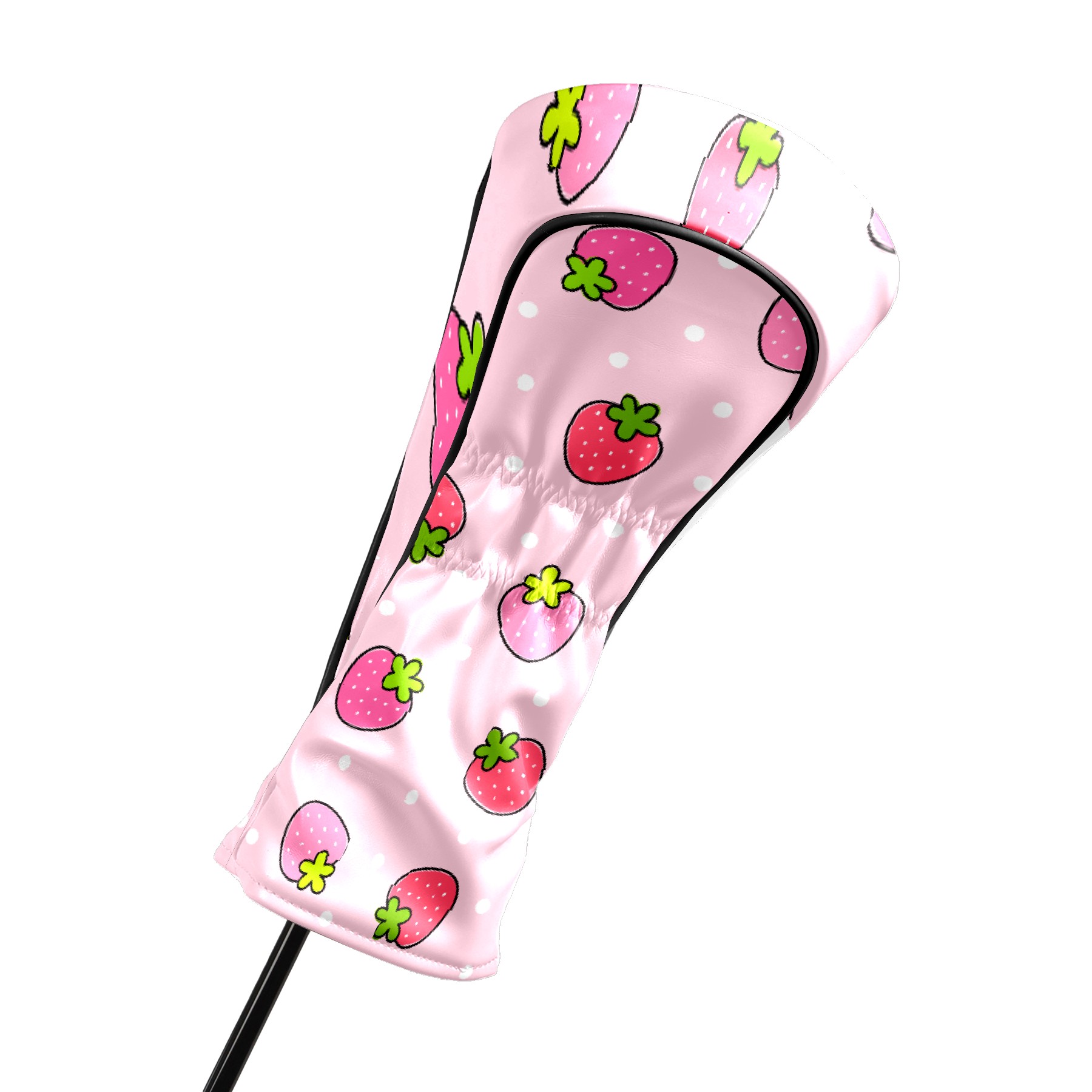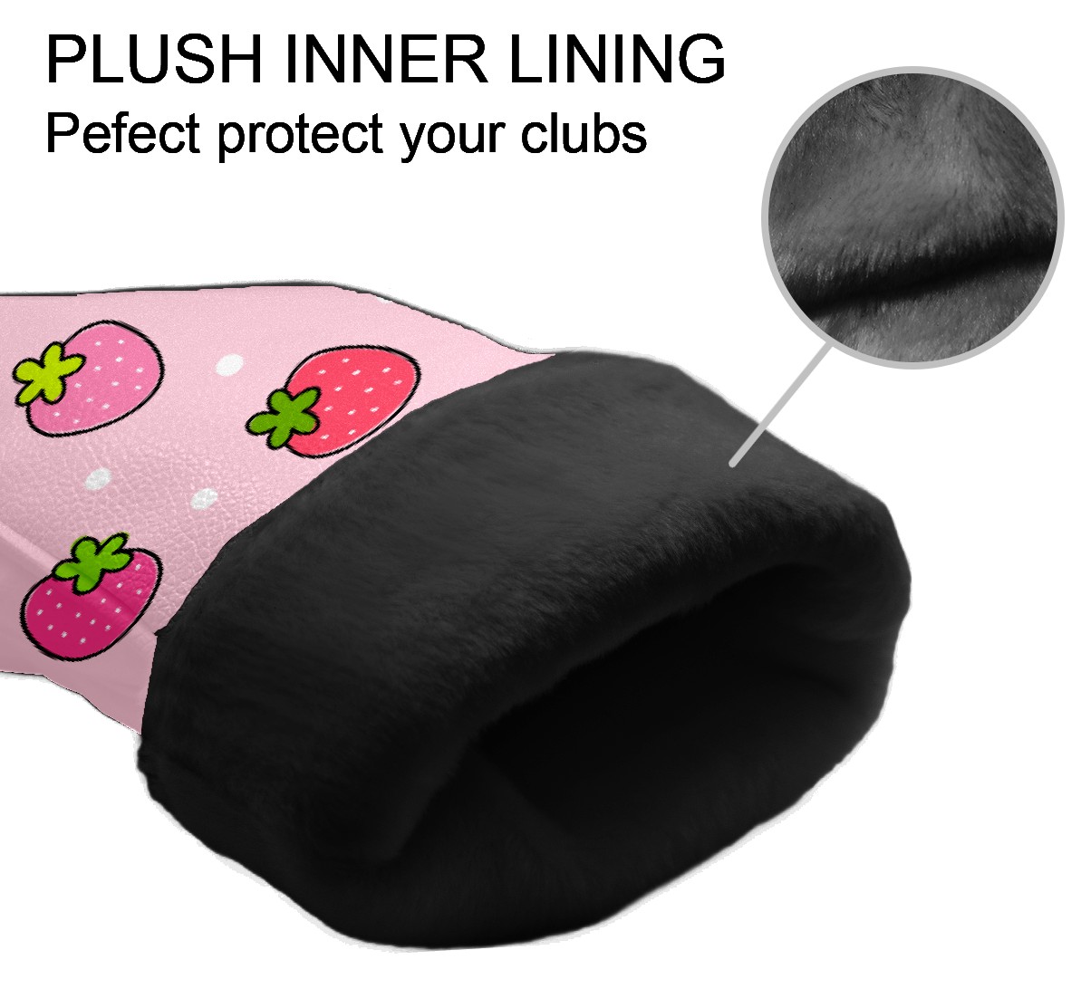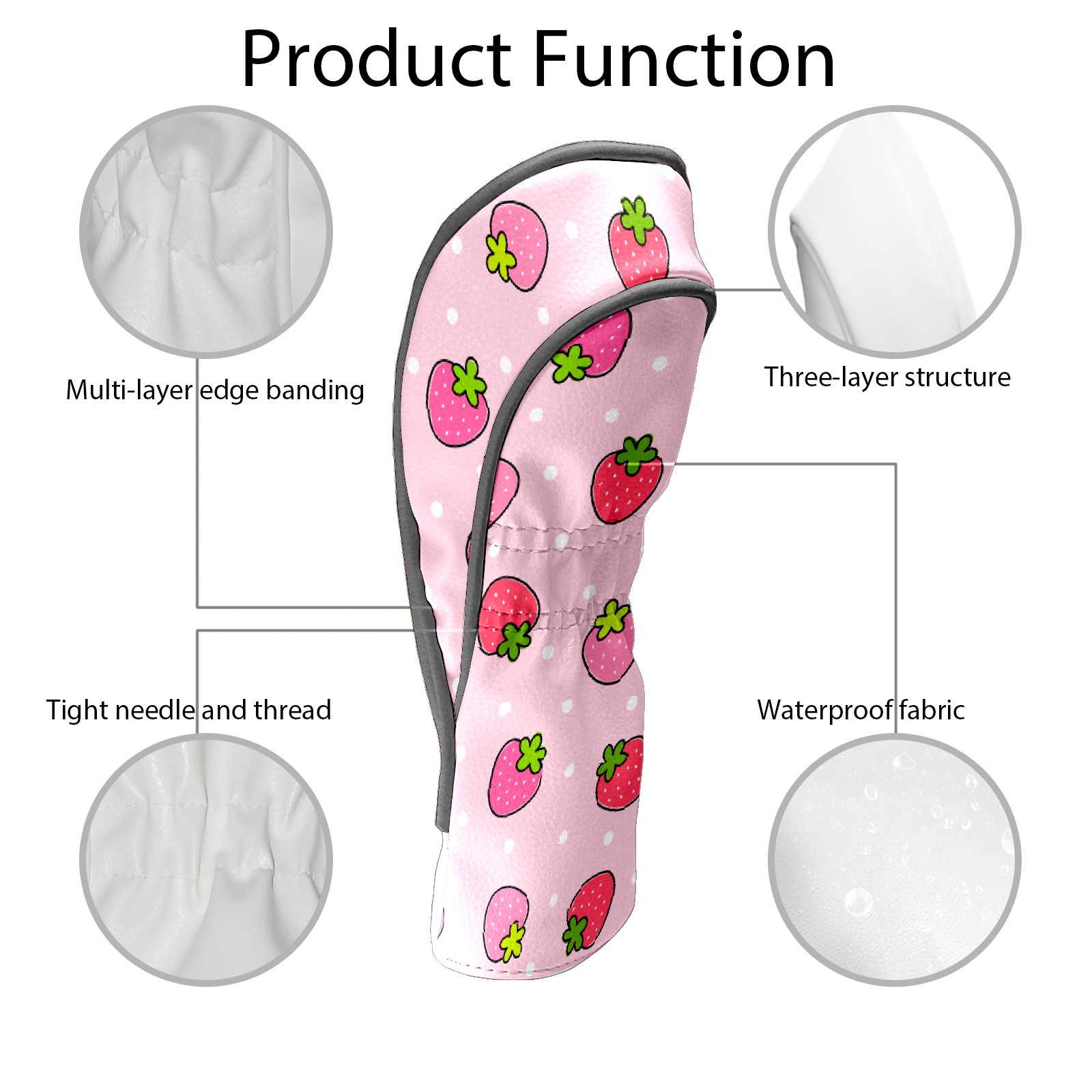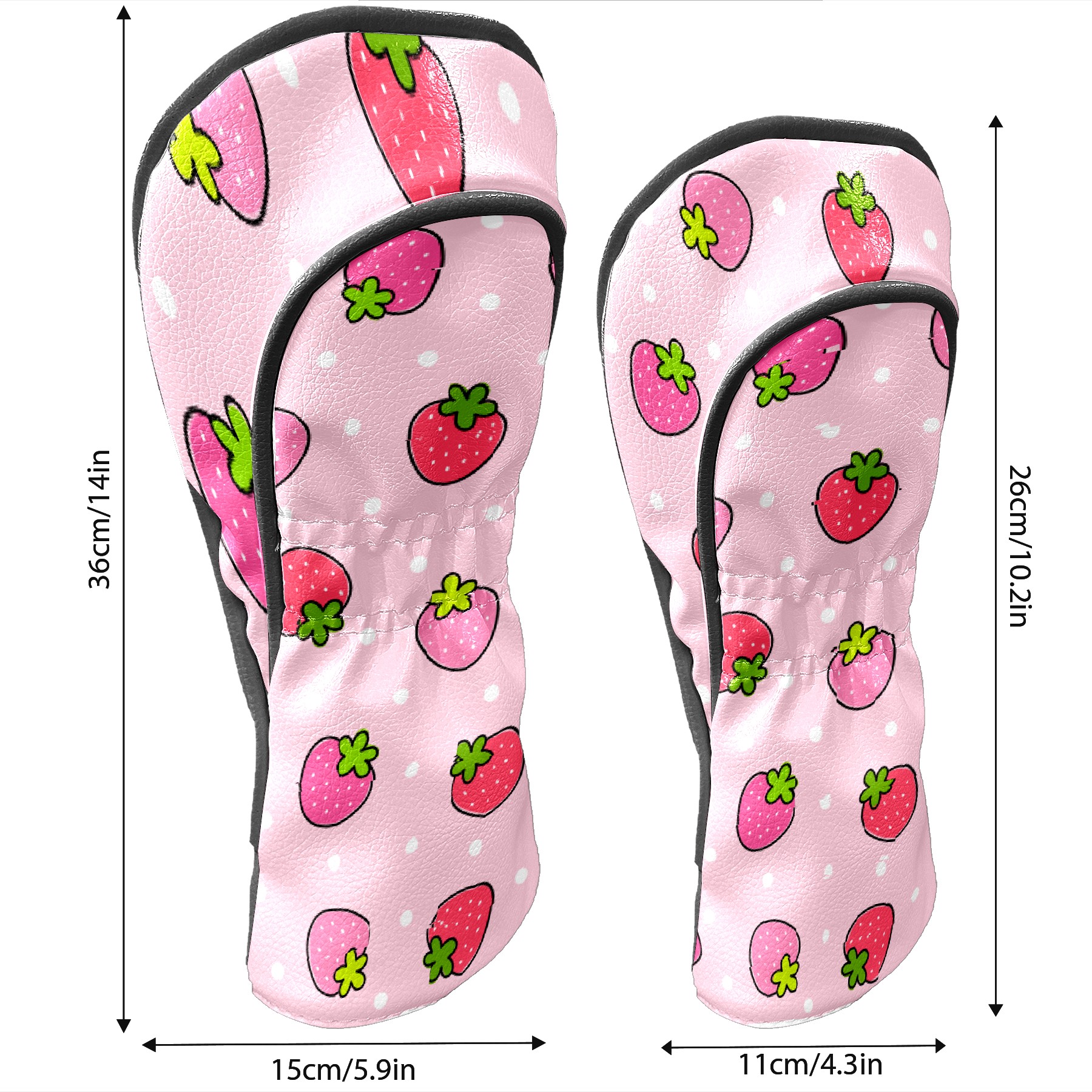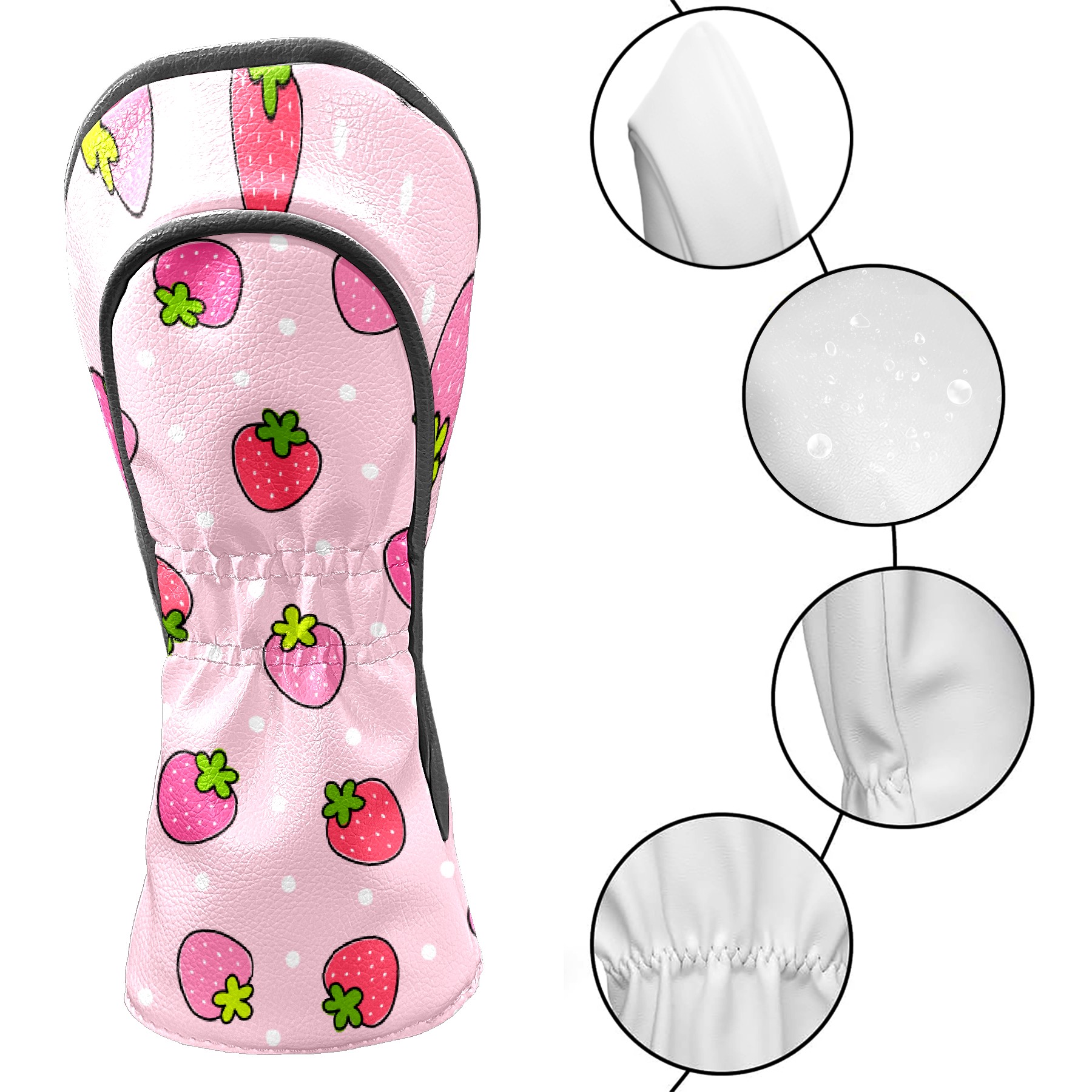 Golf Club Head Cover Premium Leather Driver Headcover, Golf Head Covers for Woods and Driver Waterproof Golf Headcovers with Anti-Scratch Lining for Men Women (Pink Strawberry)