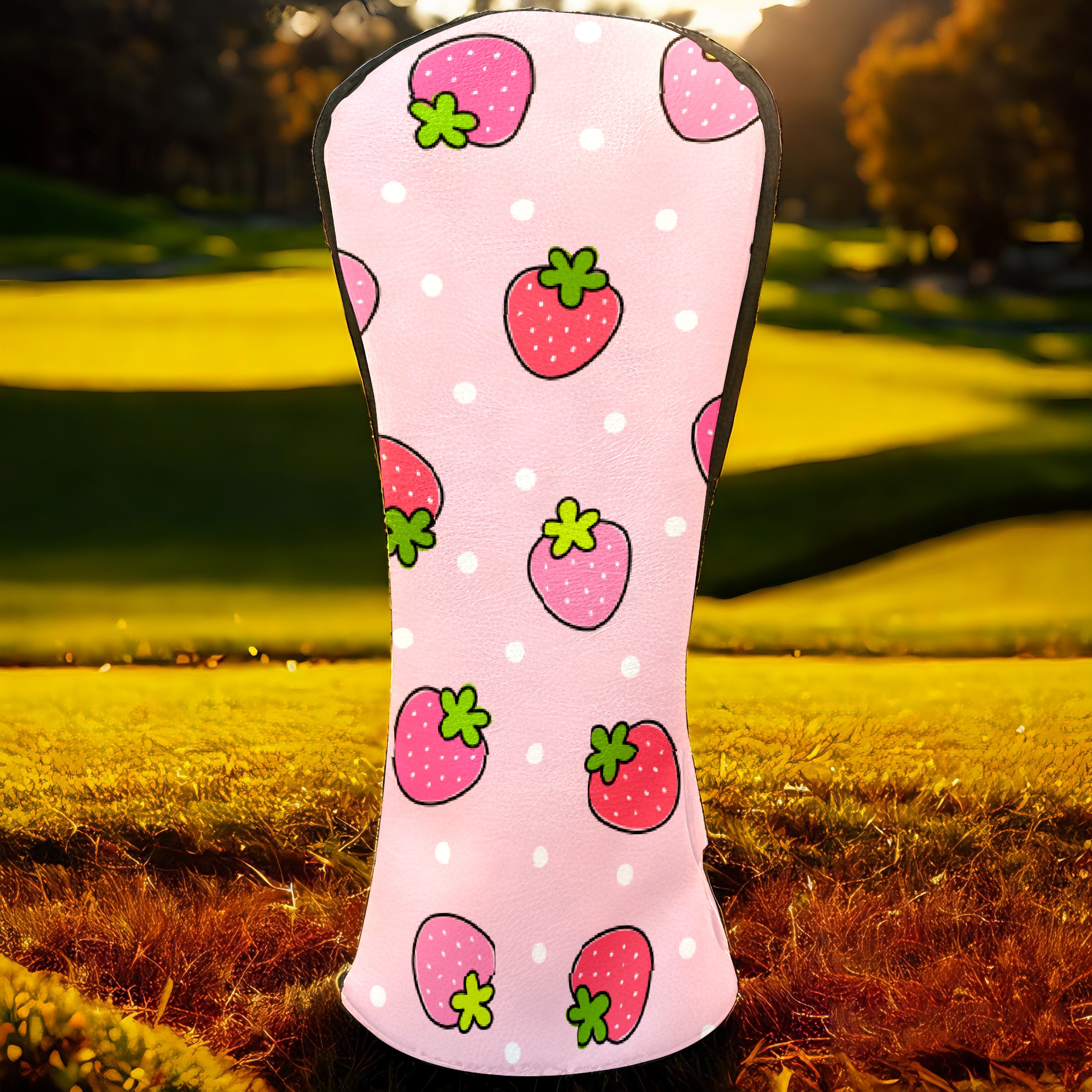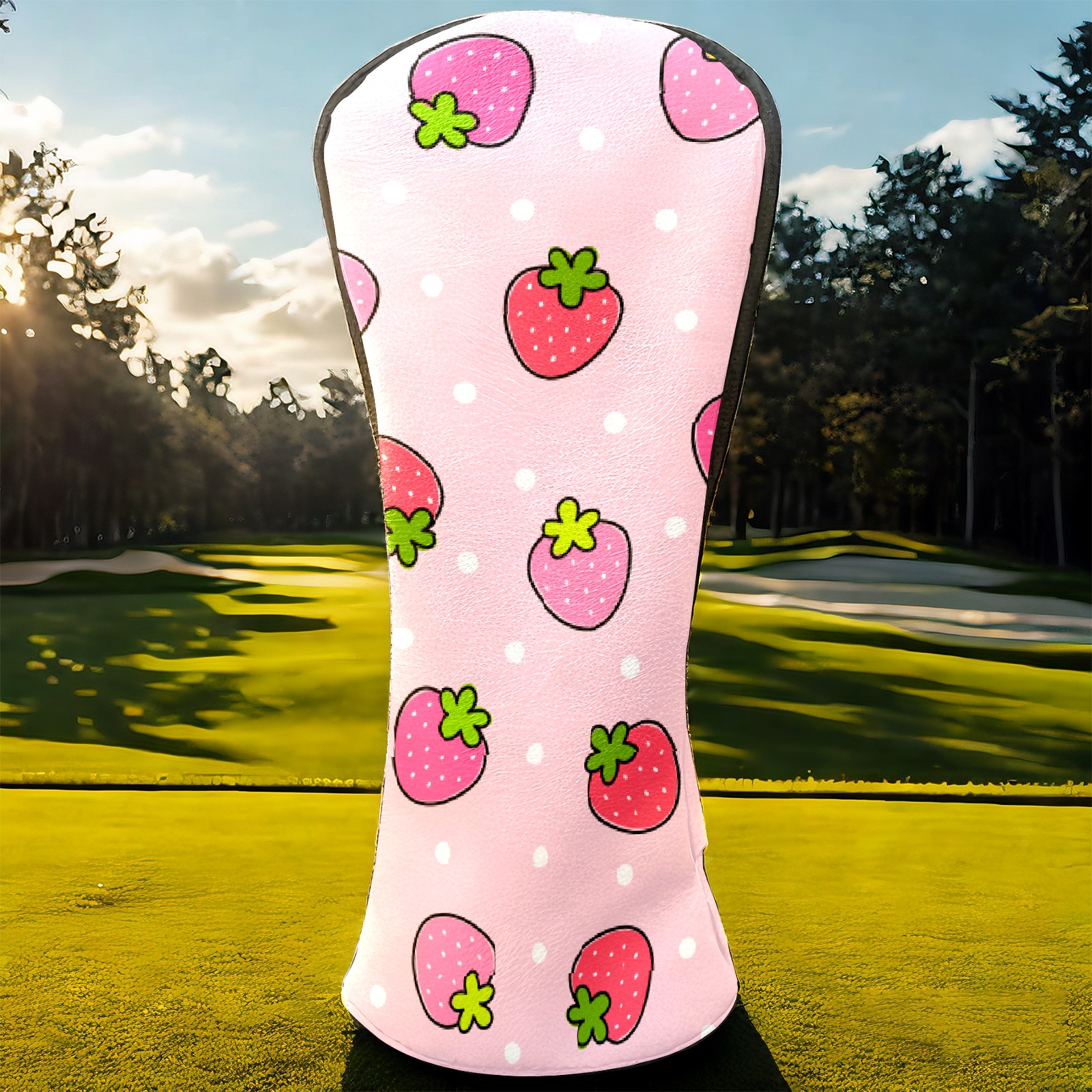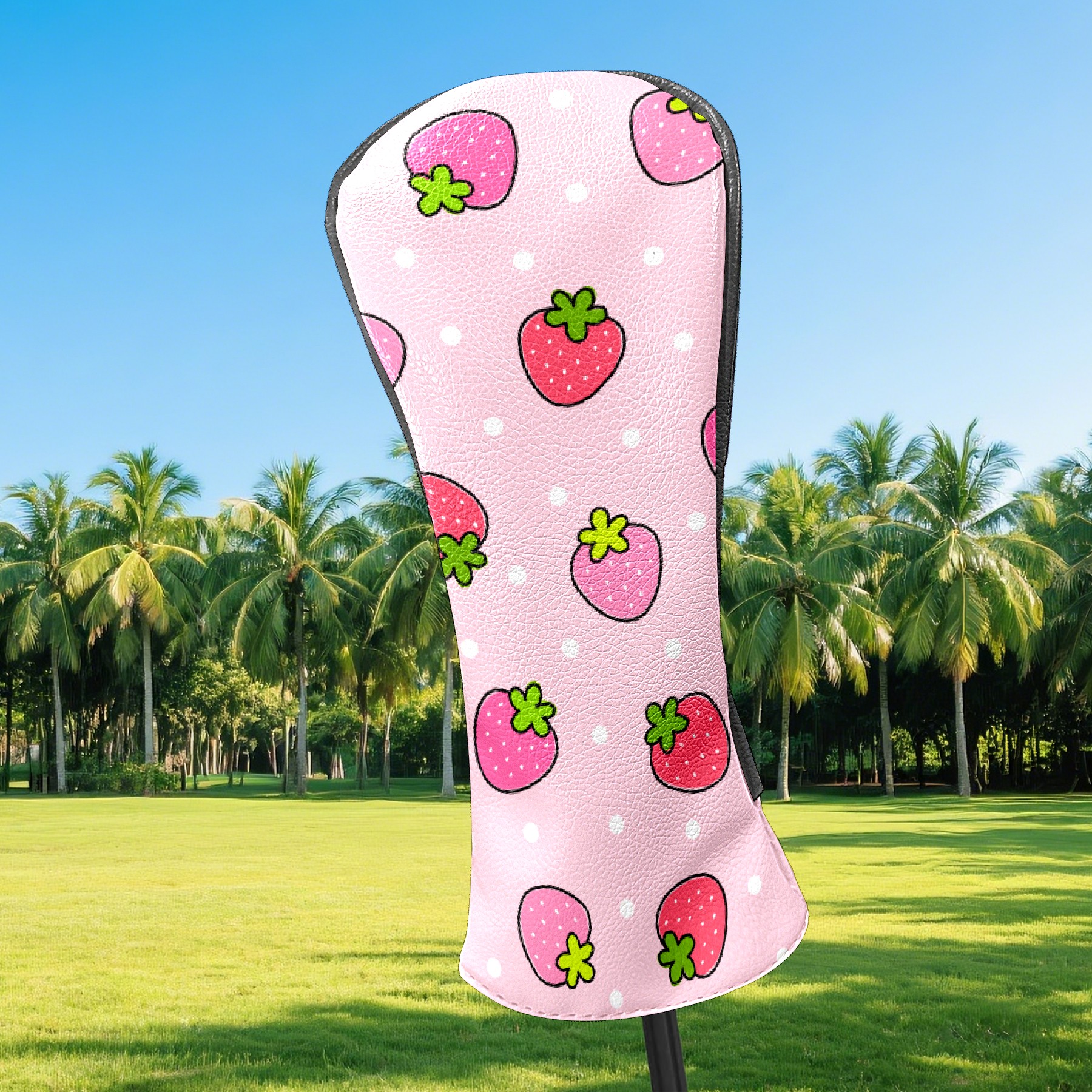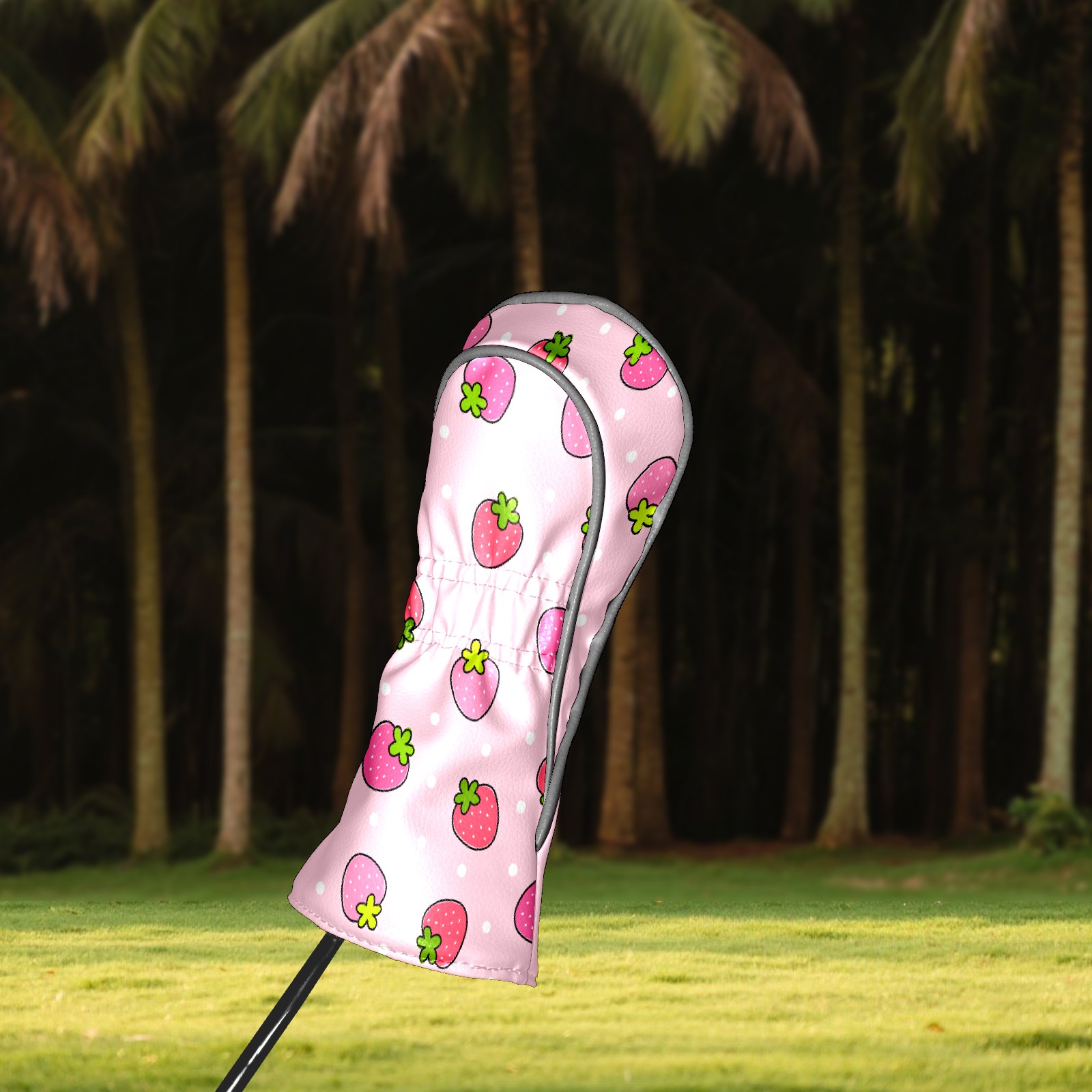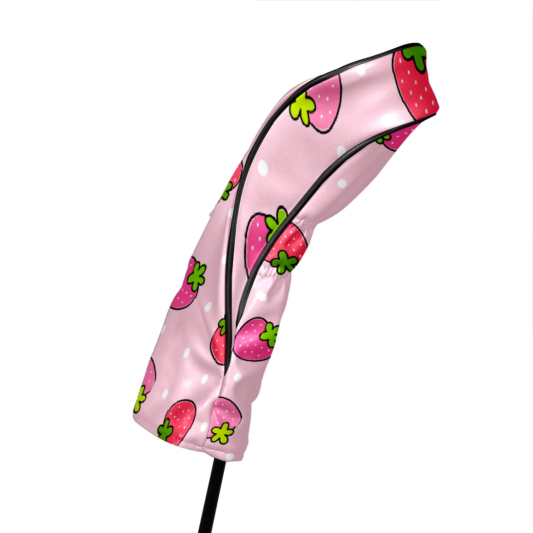 Golf Club Head Cover Premium Leather Driver Headcover, Golf Head Covers for Woods and Driver Waterproof Golf Headcovers with Anti-Scratch Lining for Men Women (Pink Strawberry)