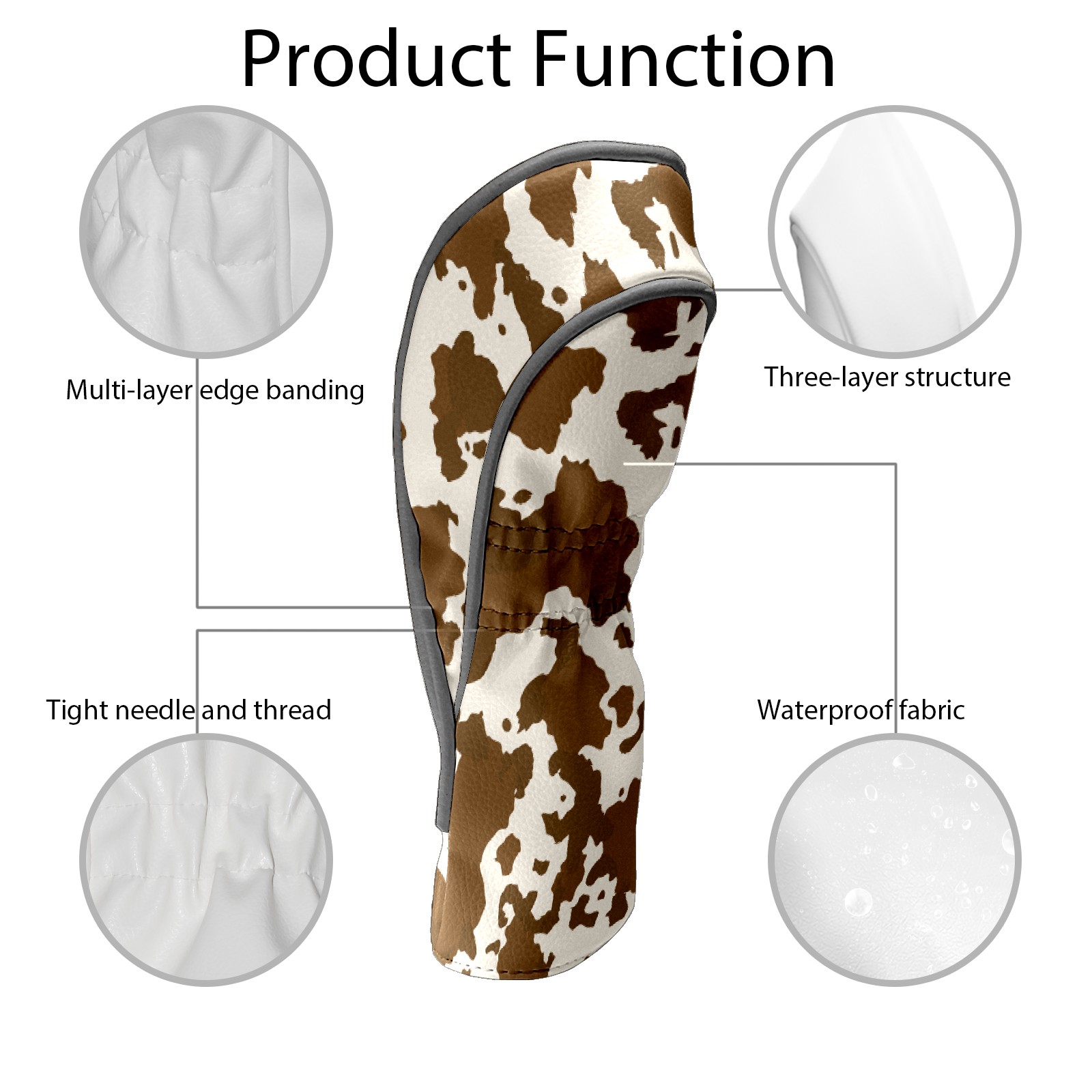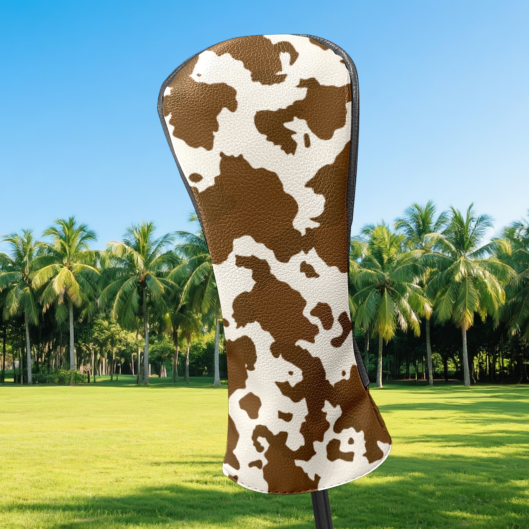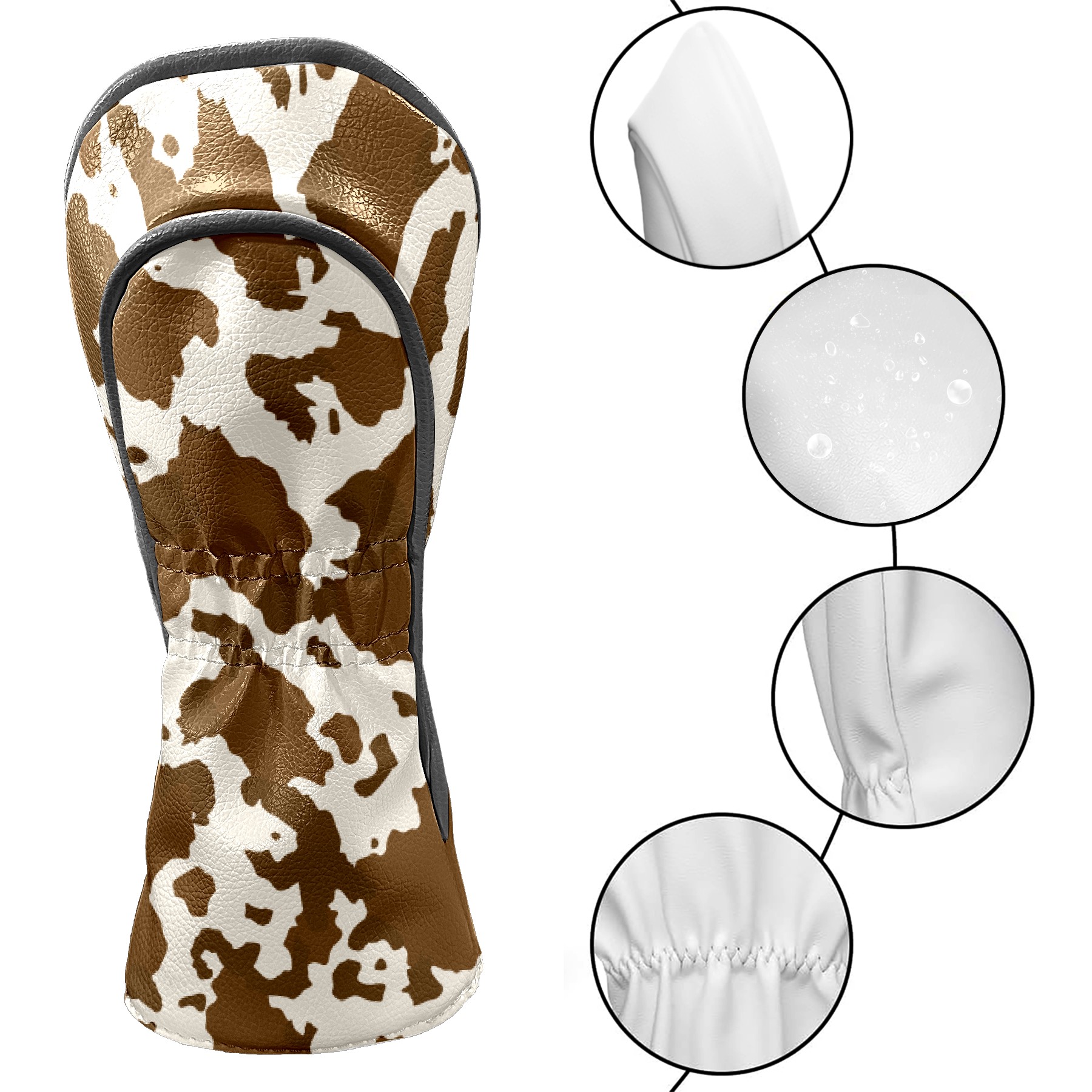 Golf Club Head Cover Premium Leather Driver Headcover, Golf Head Covers for Woods and Driver Waterproof Golf Headcovers with Anti-Scratch Lining for Men Women (Brown Cow Print)