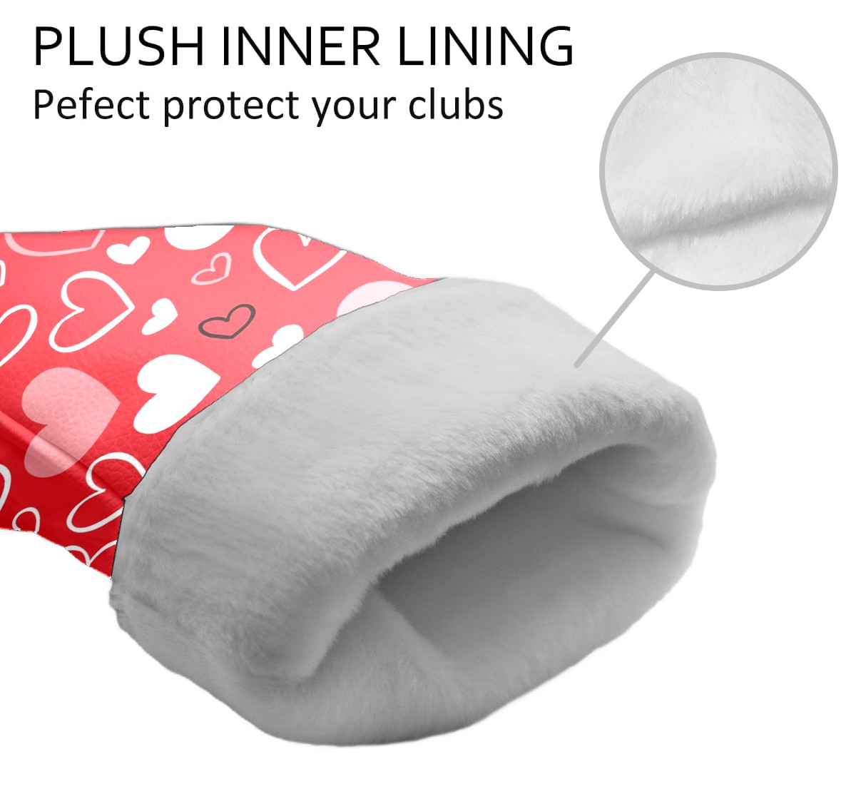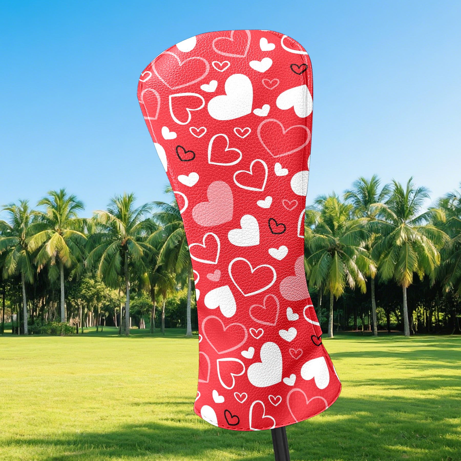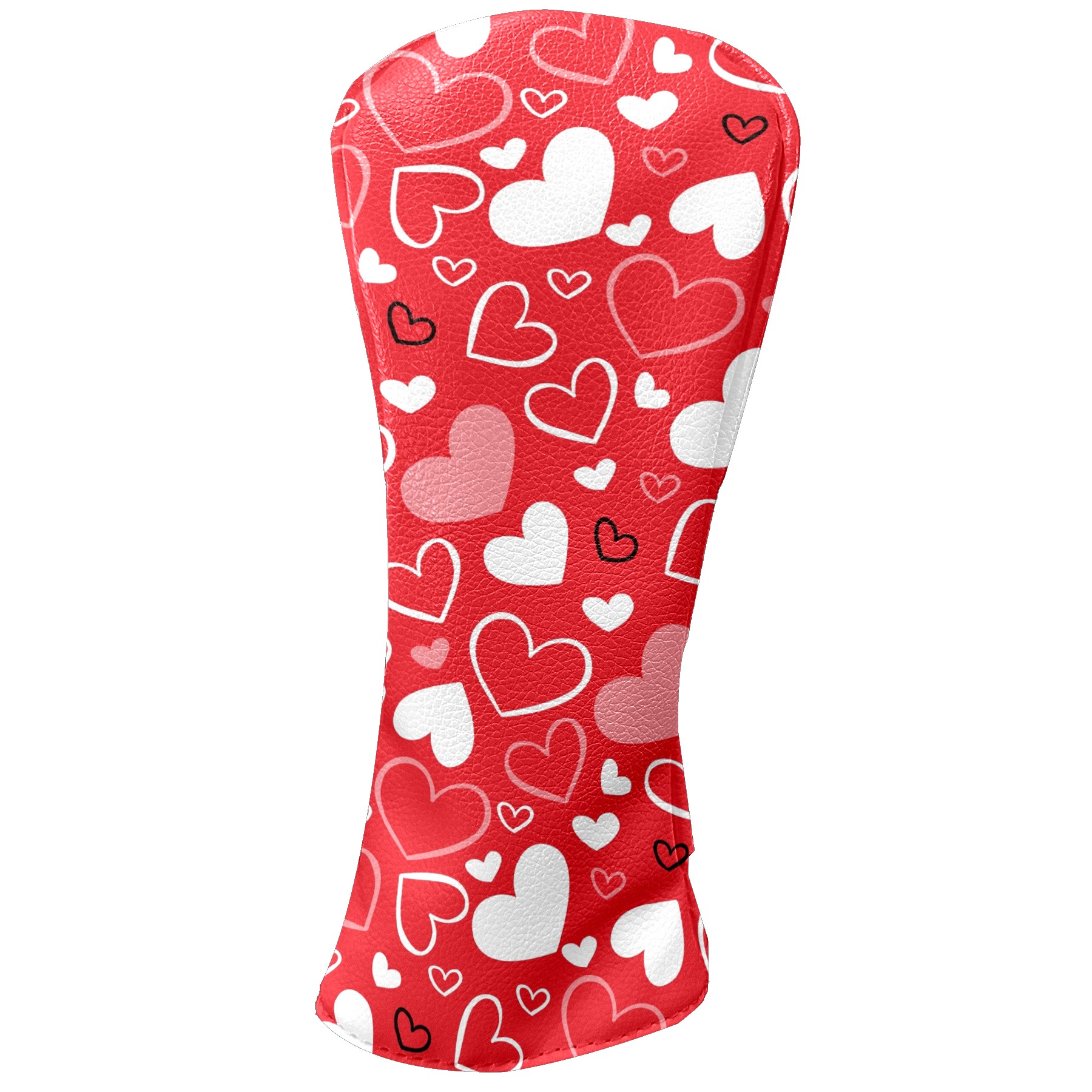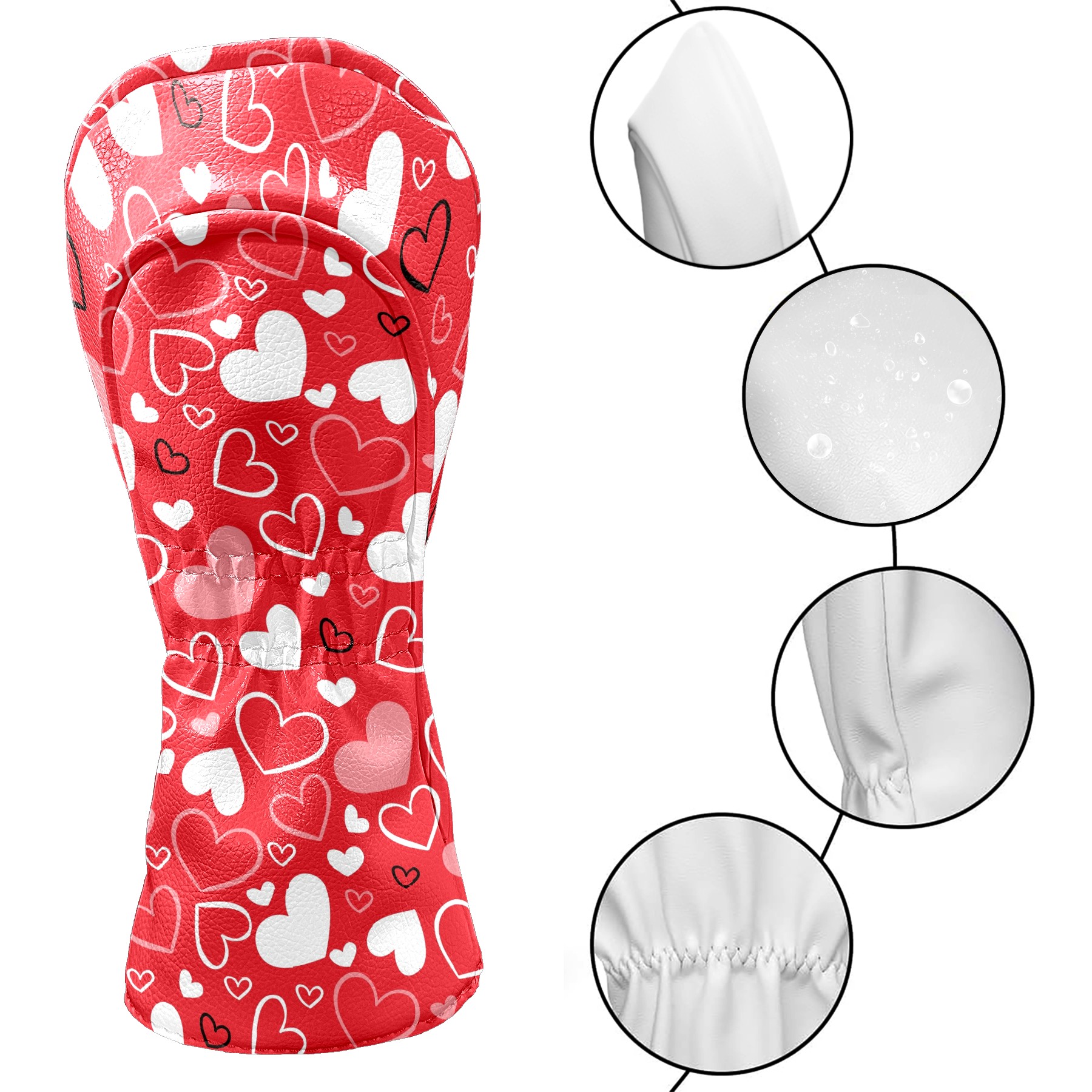 Golf Club Head Cover Premium Leather Driver Headcover, Golf Head Covers for Woods and Driver Waterproof Golf Headcovers with Anti-Scratch Lining for Men Women (Valentines Day Red Heart)