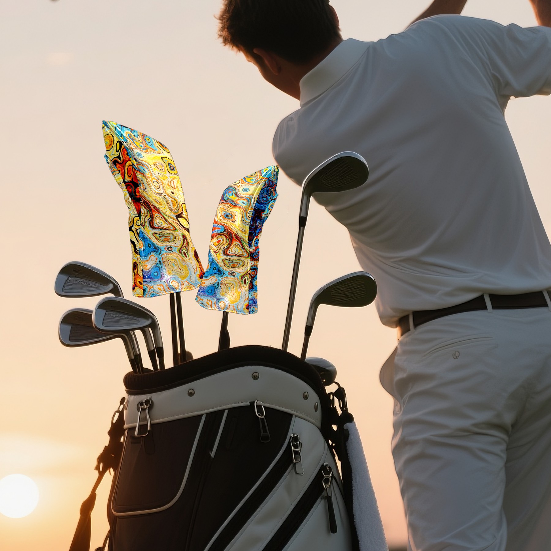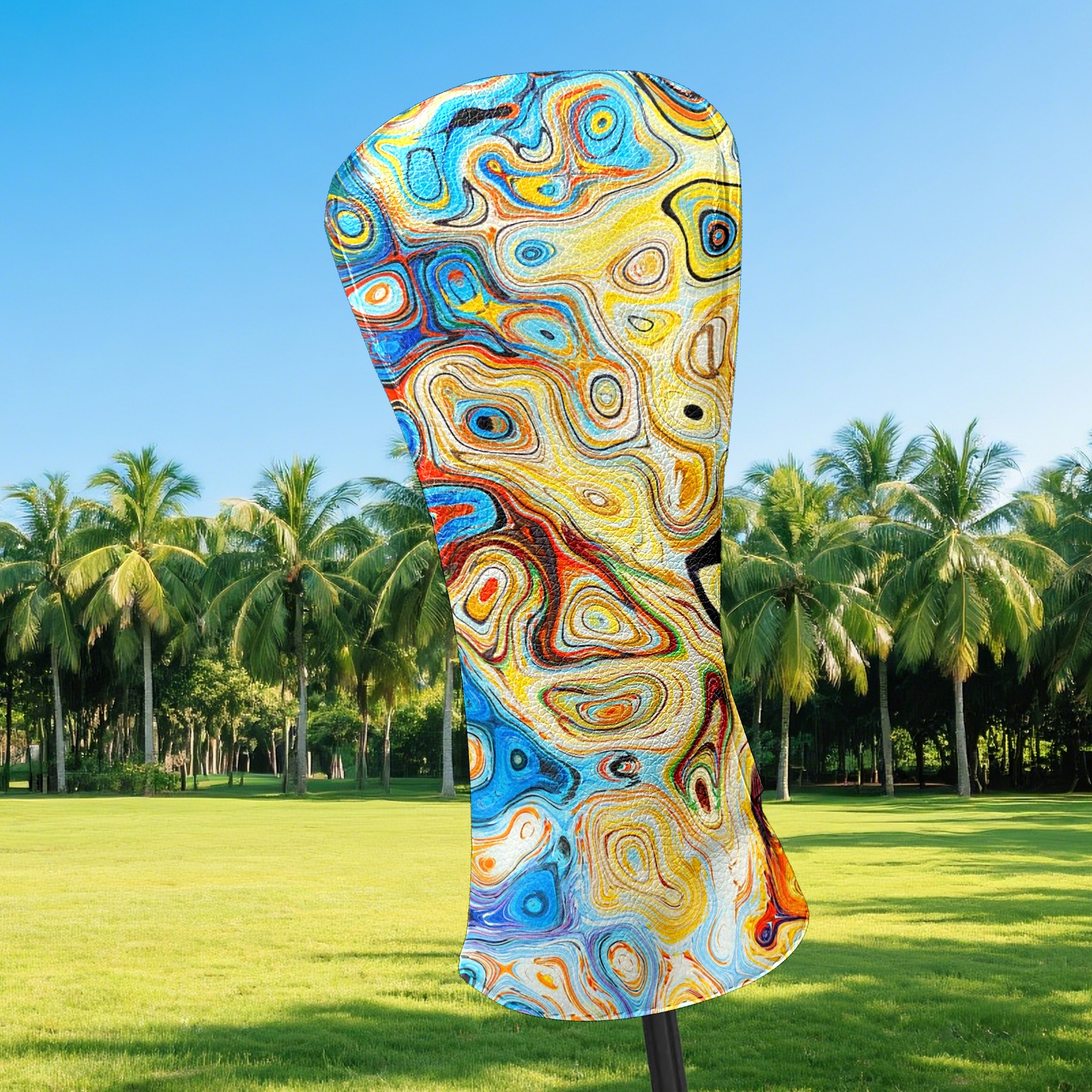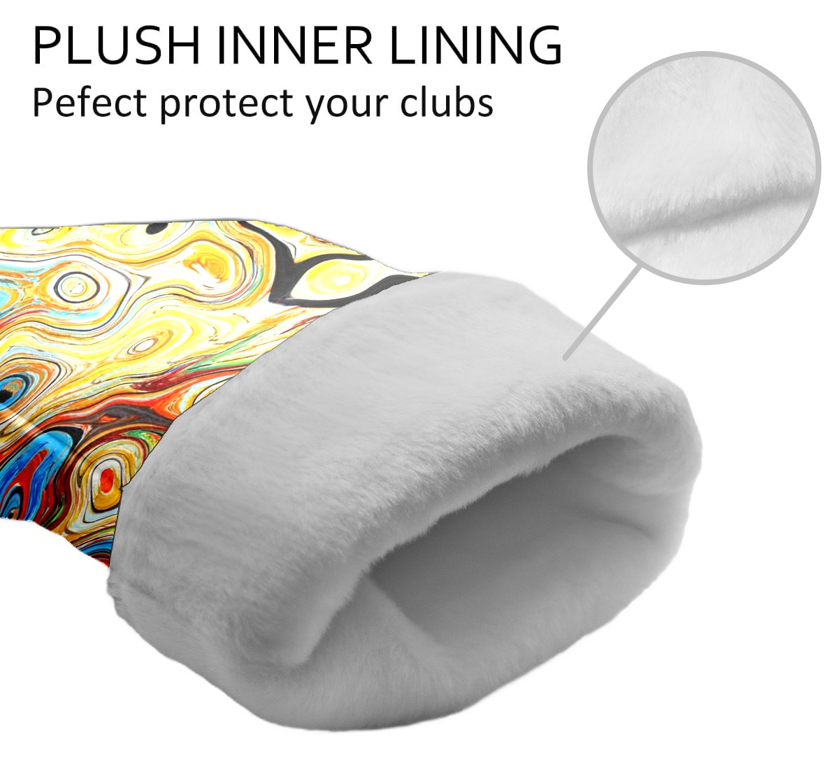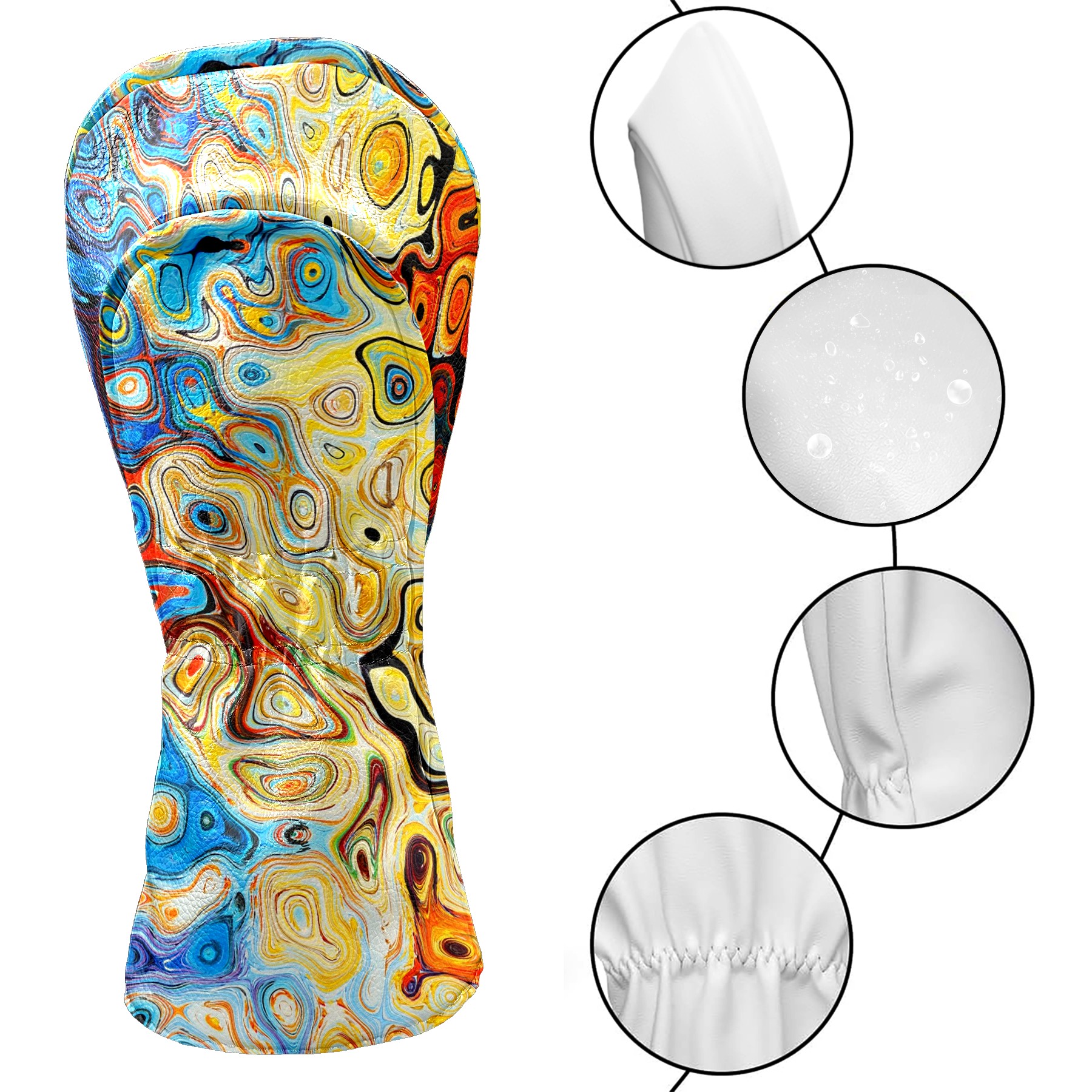 Golf Club Head Cover Premium Leather Driver Headcover, Golf Head Covers for Woods and Driver Waterproof Golf Headcovers with Anti-Scratch Lining for Men Women (Abstract Colorful Geometric Painting)