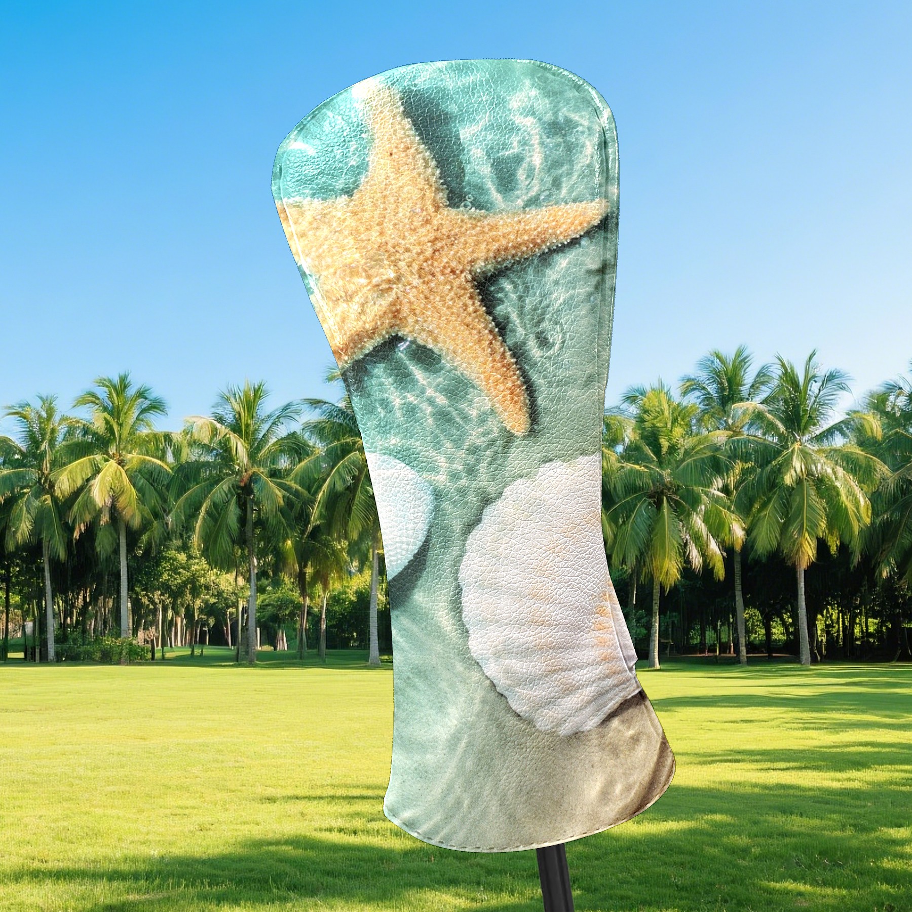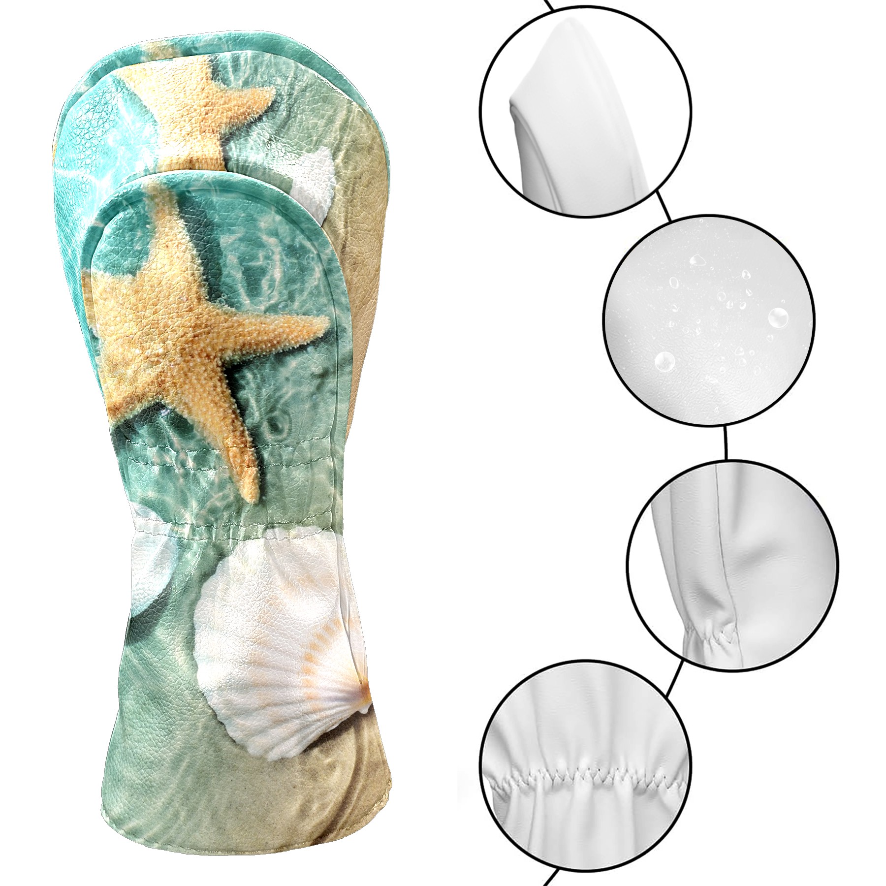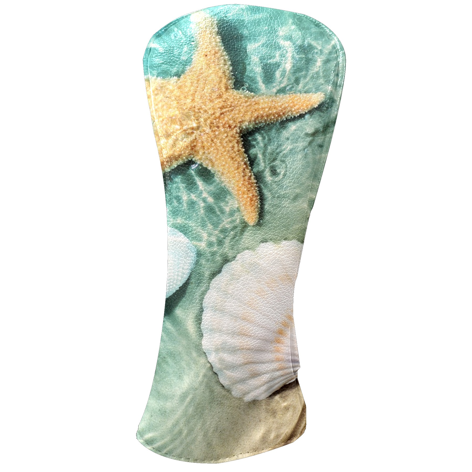 Golf Club Head Cover Premium Leather Driver Headcover, Golf Head Covers for Woods and Driver Waterproof Golf Headcovers with Anti-Scratch Lining for Men Women (Ocean Water Sea Beach Starfish Shell)