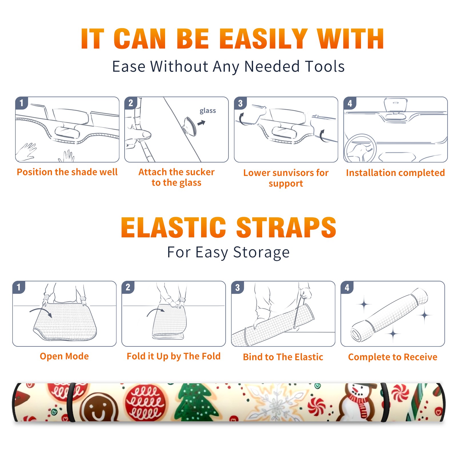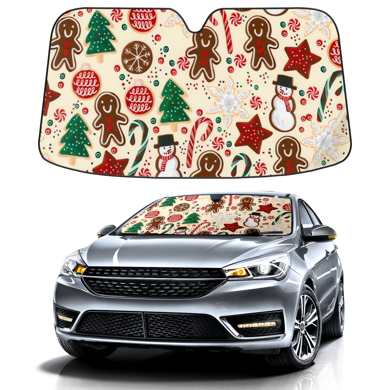 Aluminum foil polyester car sunshade pad, efficient heat insulation and sun protection artifactChristmas Cookies Snowman