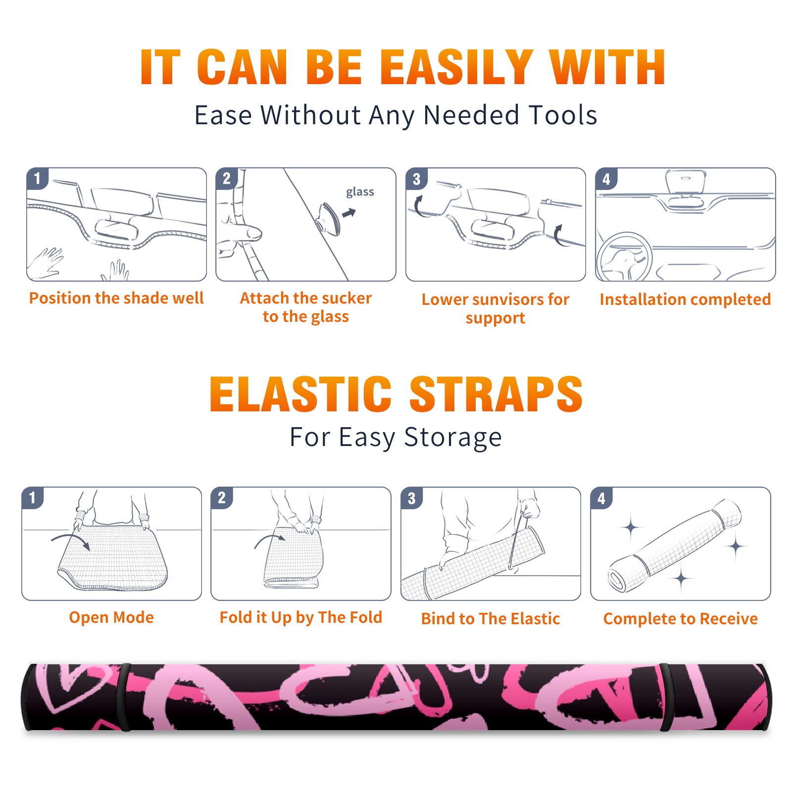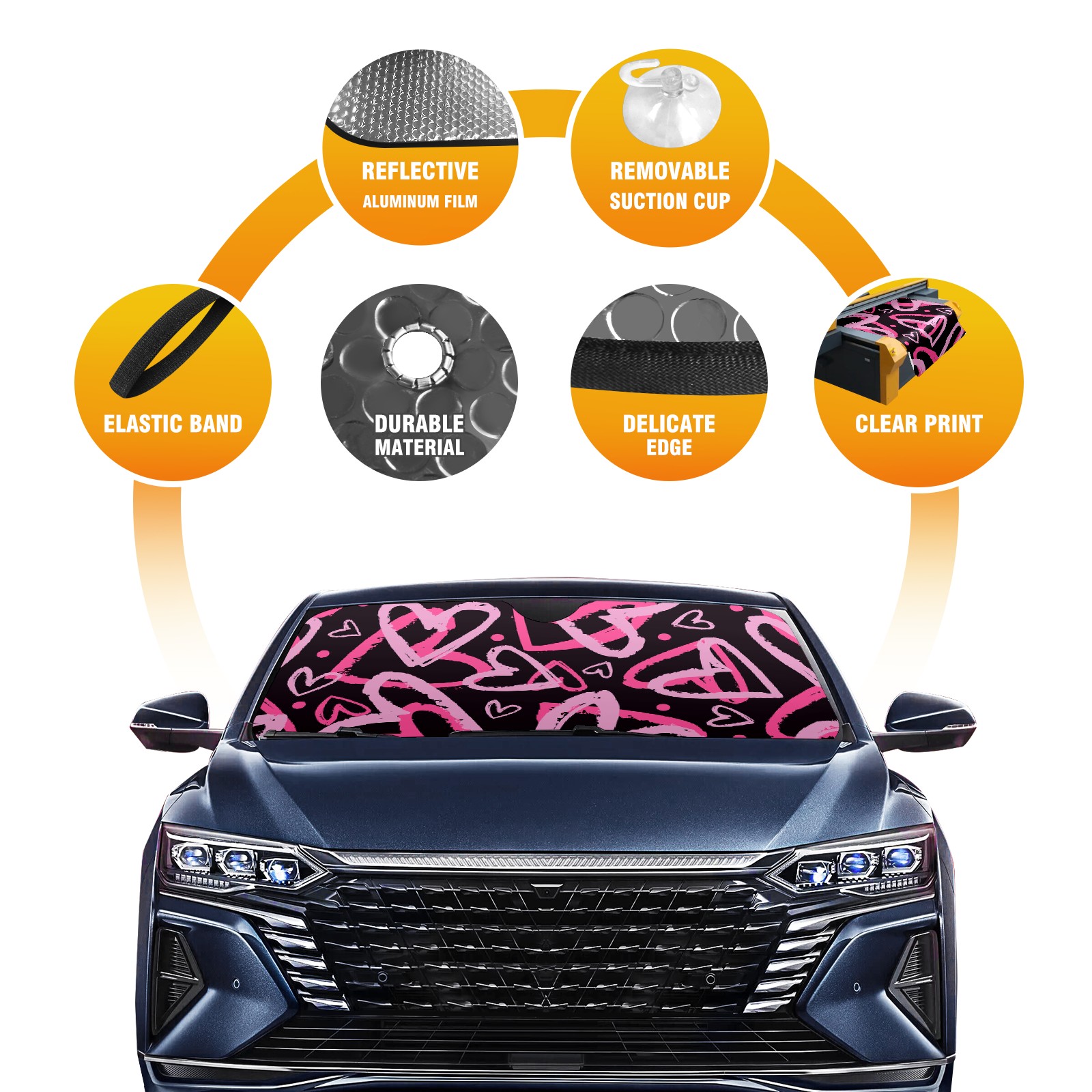 Aluminum foil polyester car sunshade pad, efficient heat insulation and sun protection artifactHeart Pink Love