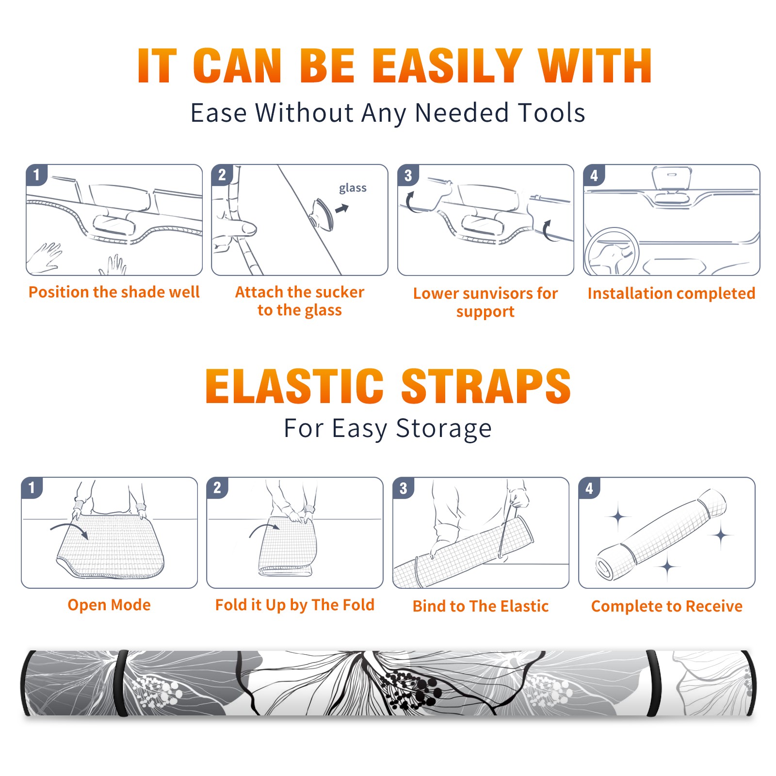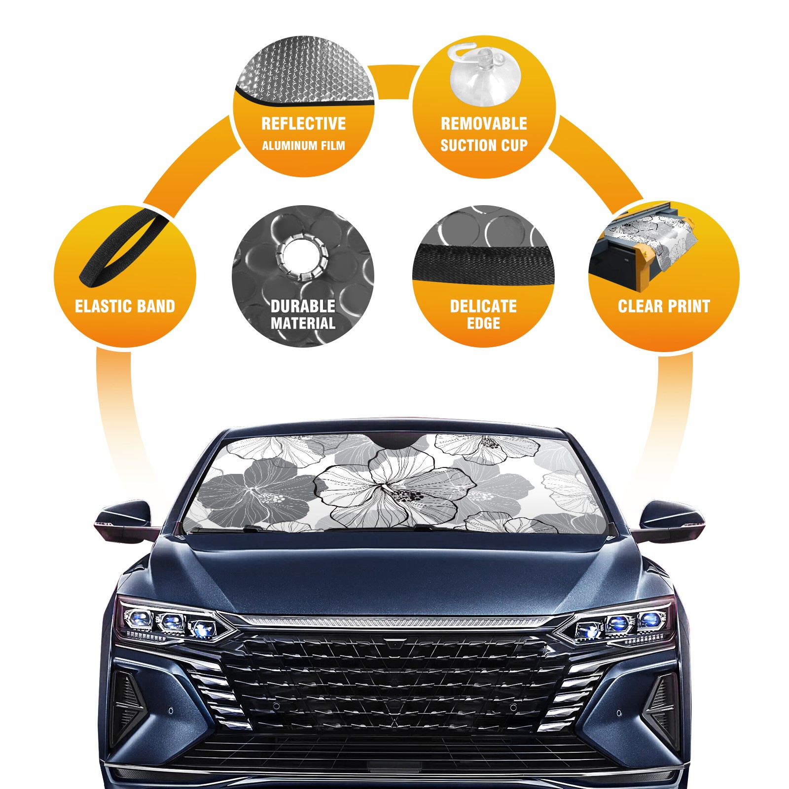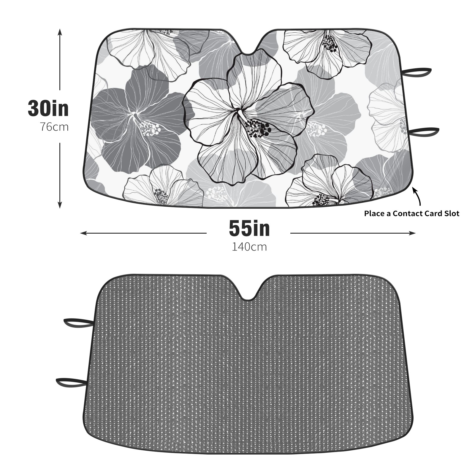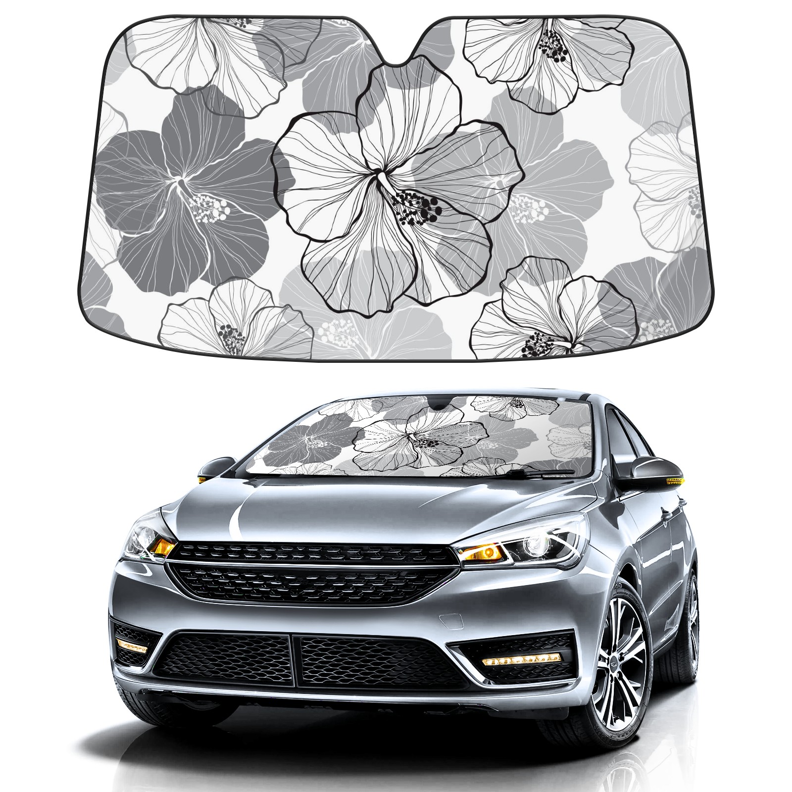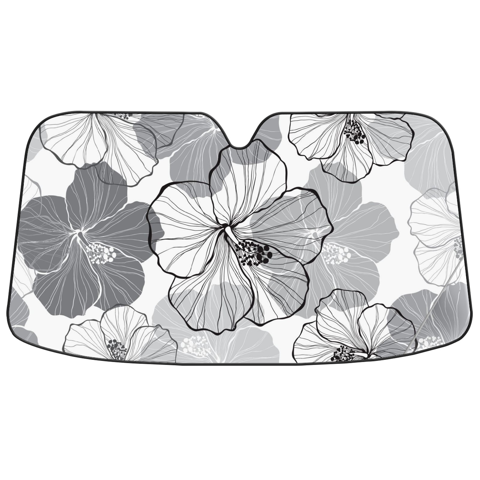 Aluminum foil polyester car sunshade pad, efficient heat insulation and sun protection artifactWhite Black Tropical Hibiscus