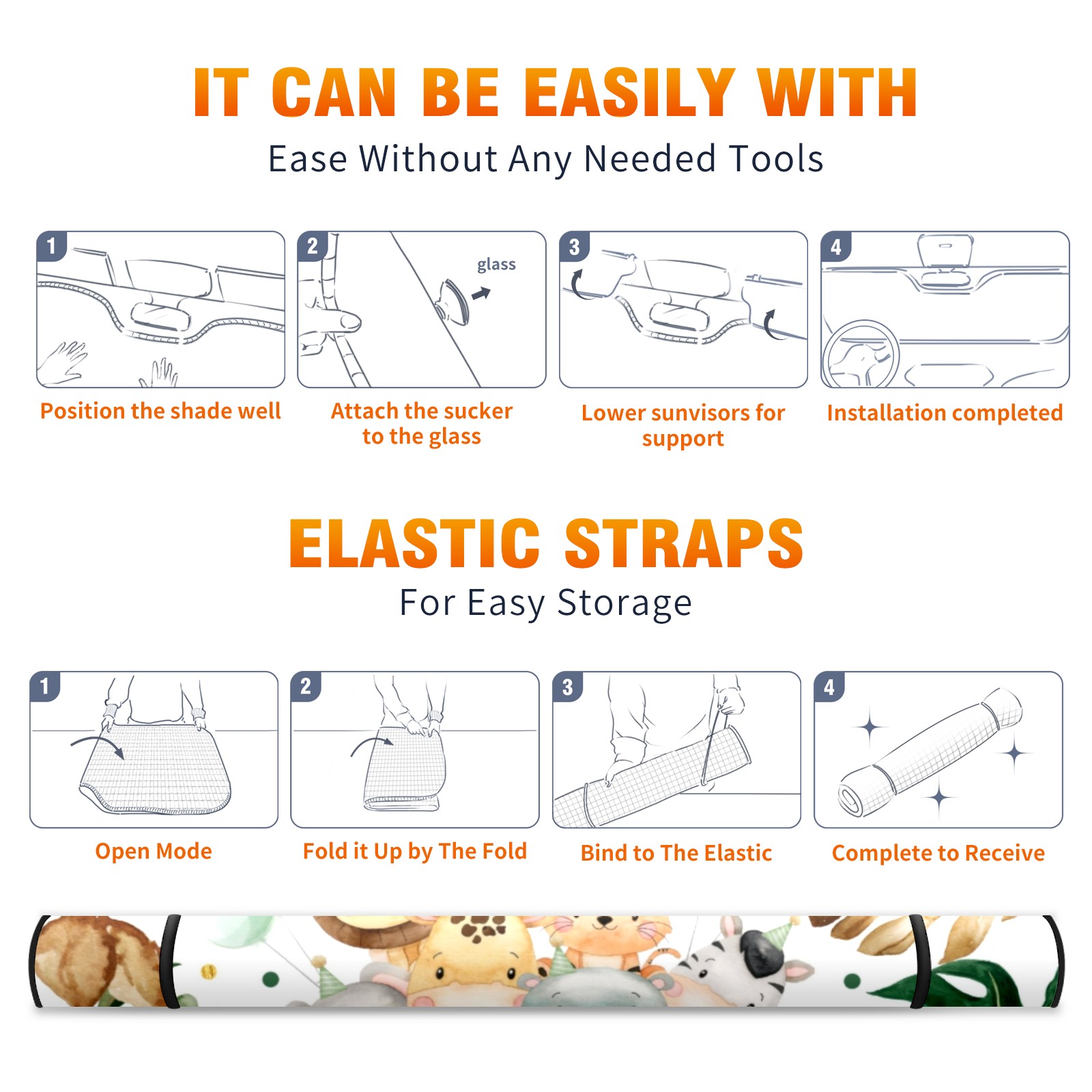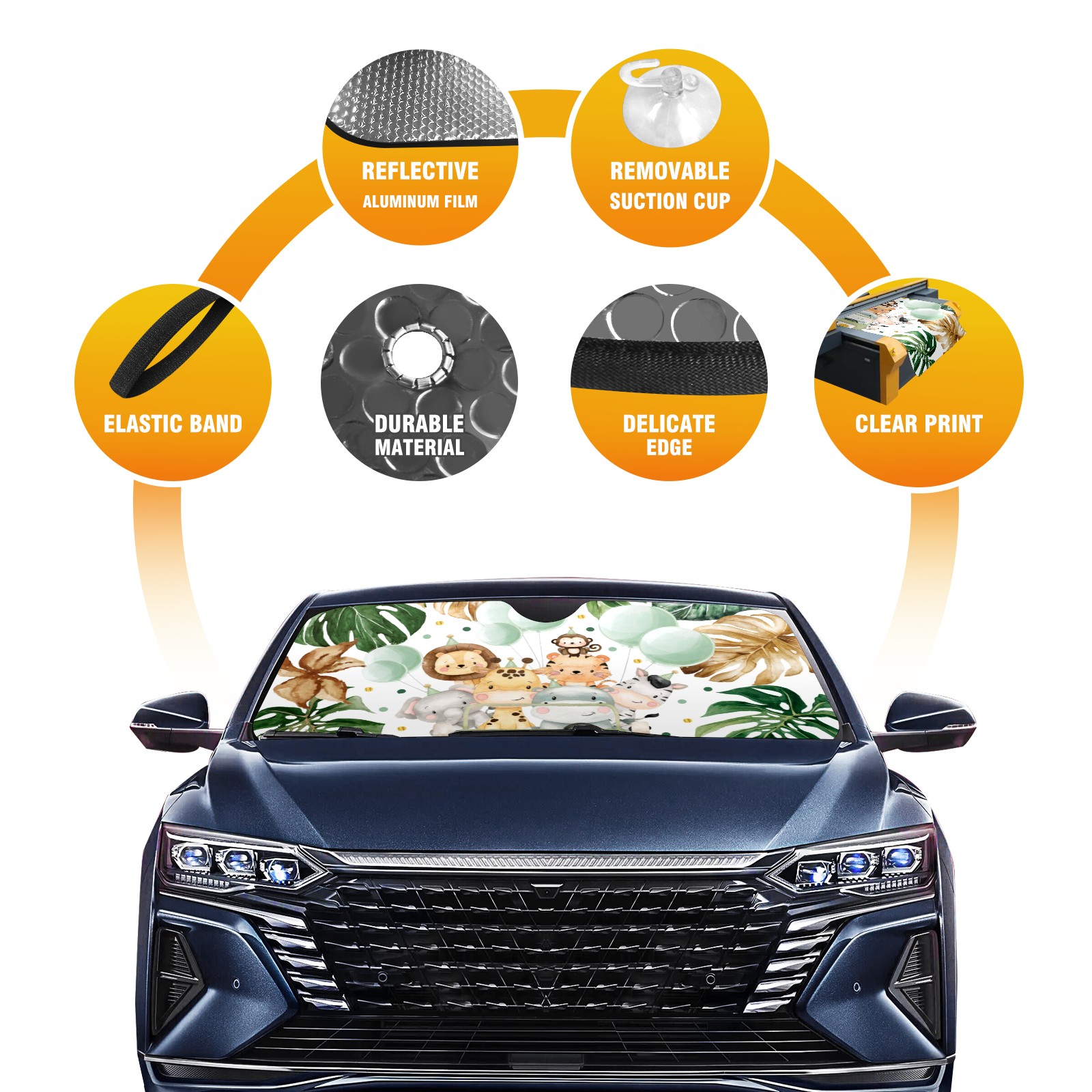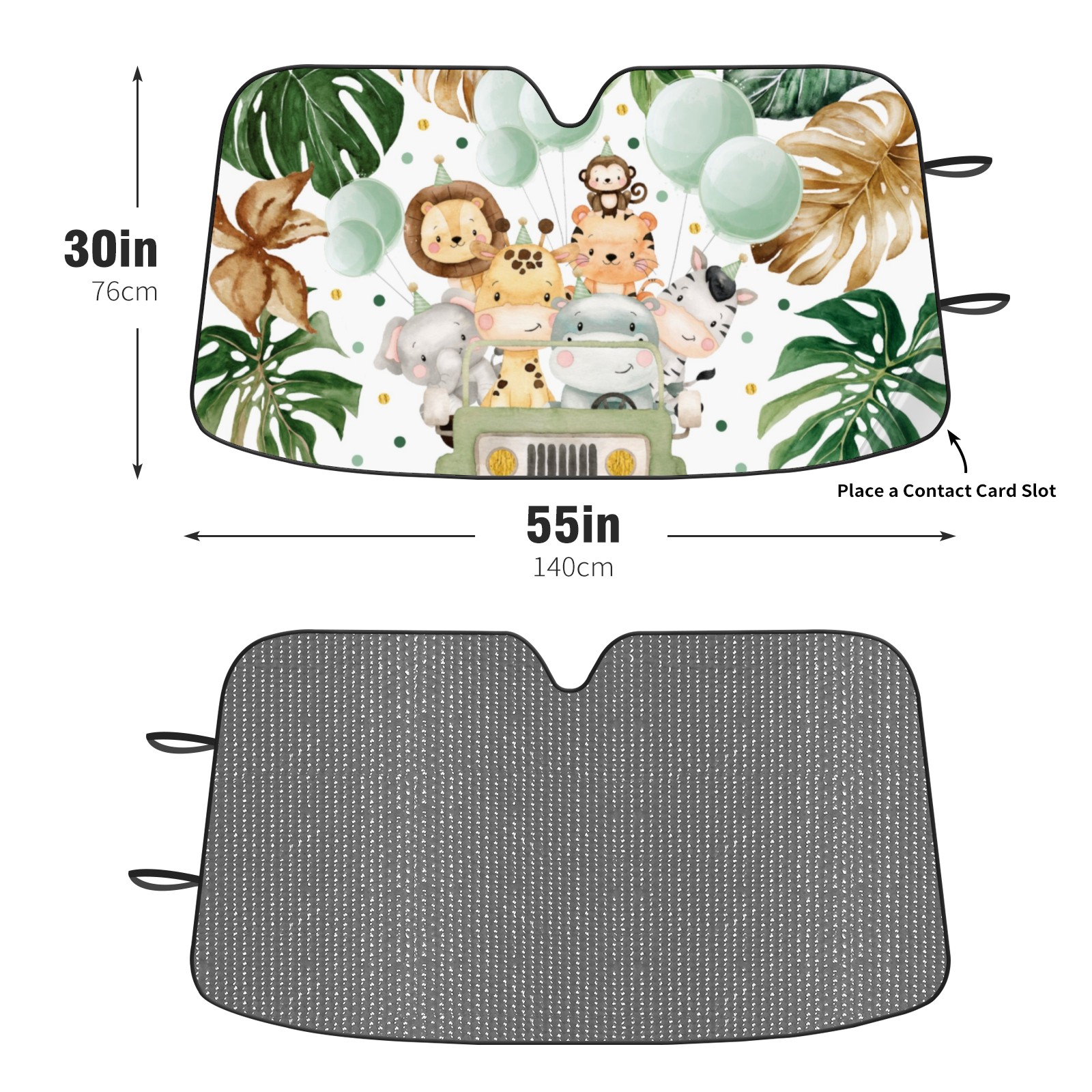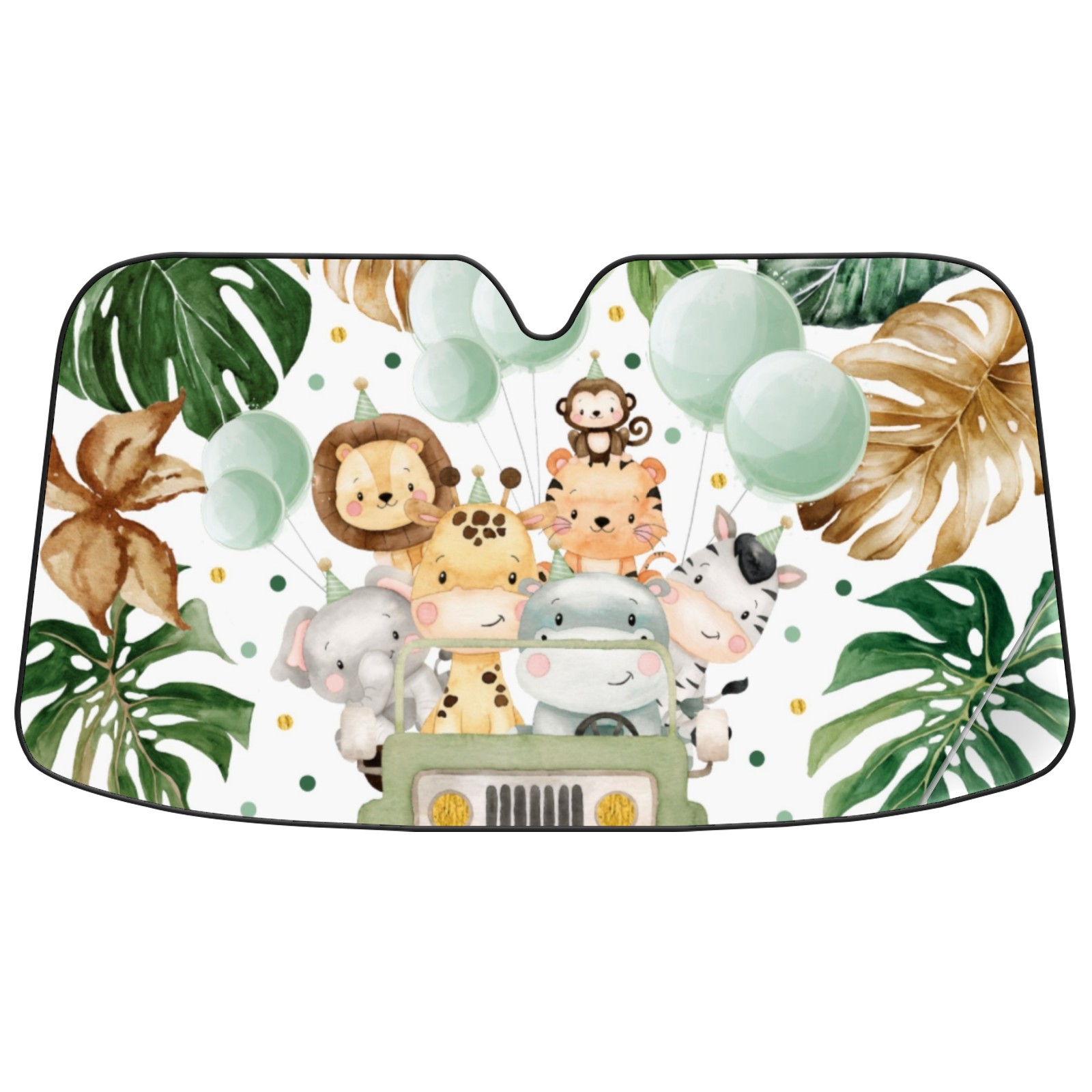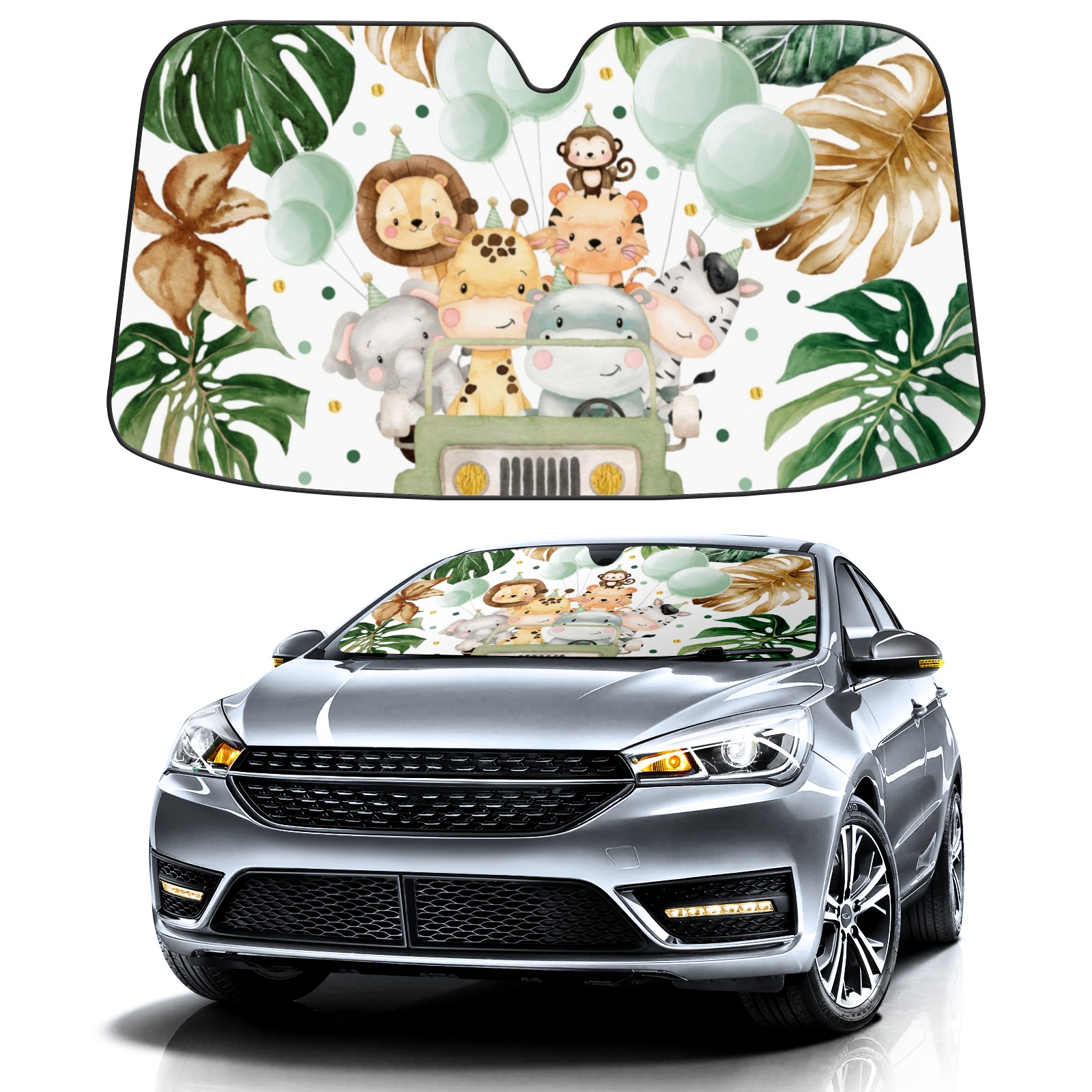 Aluminum foil polyester car sunshade pad, efficient heat insulation and sun protection artifactCute Watercolor Safari Animals Jungle Greenery