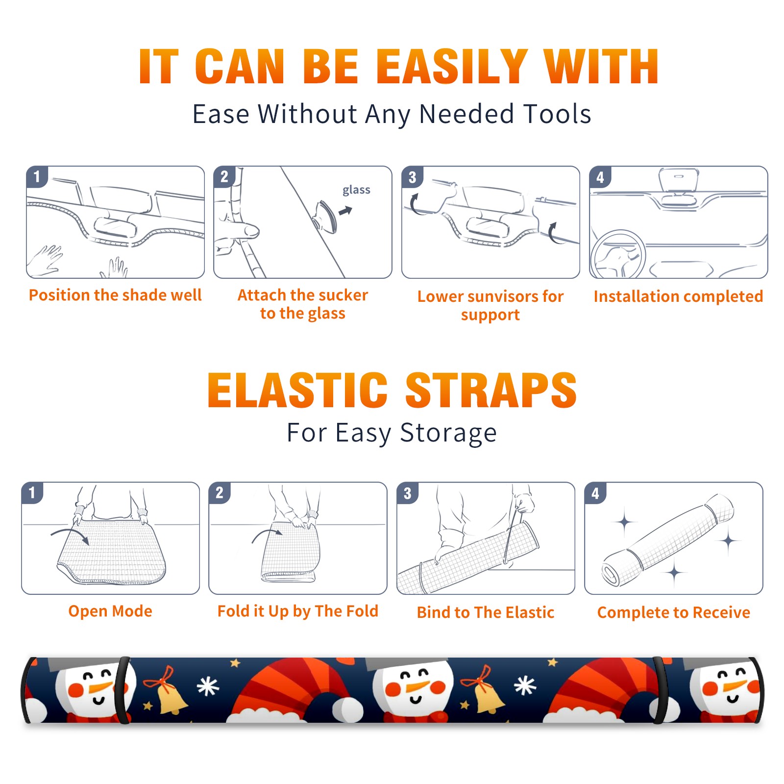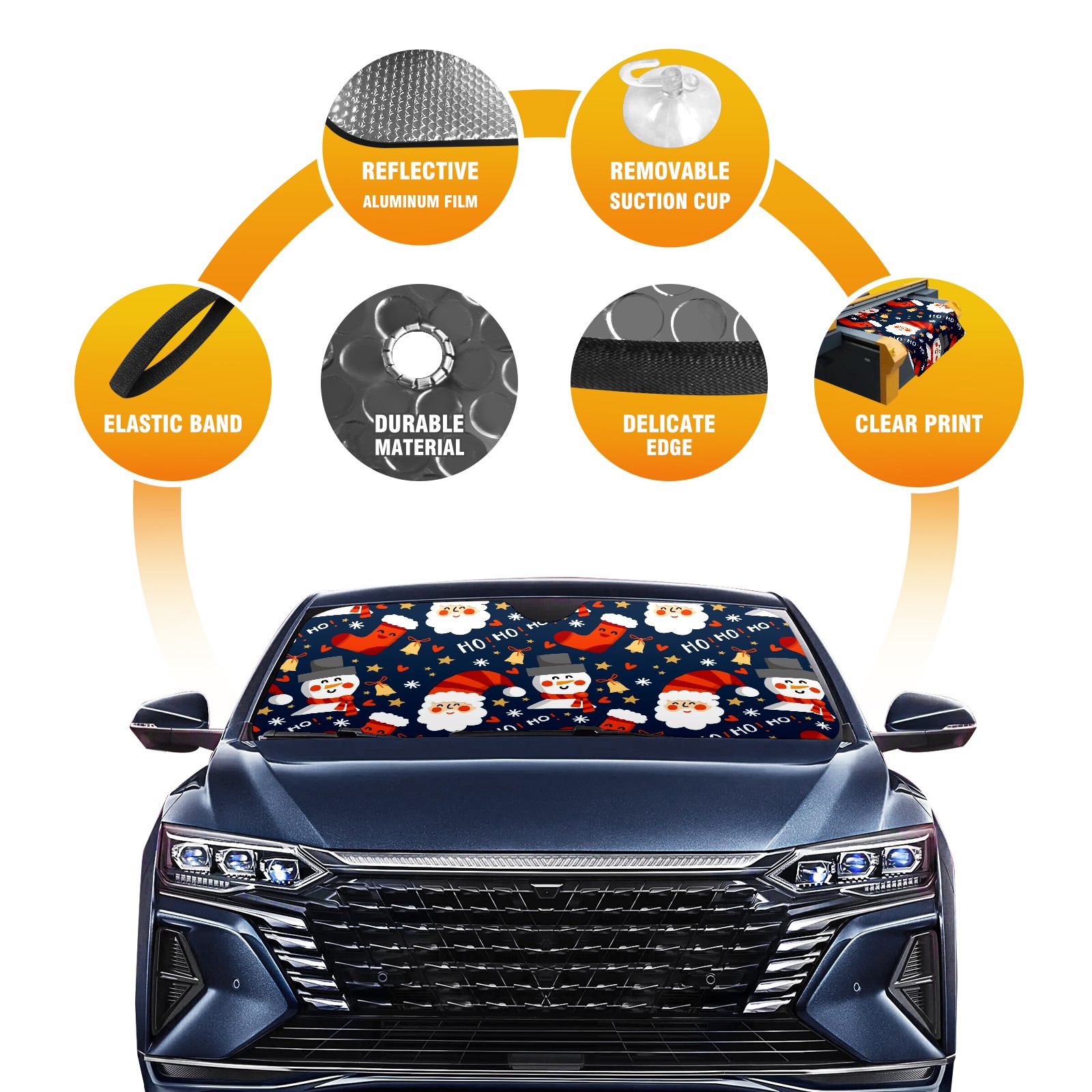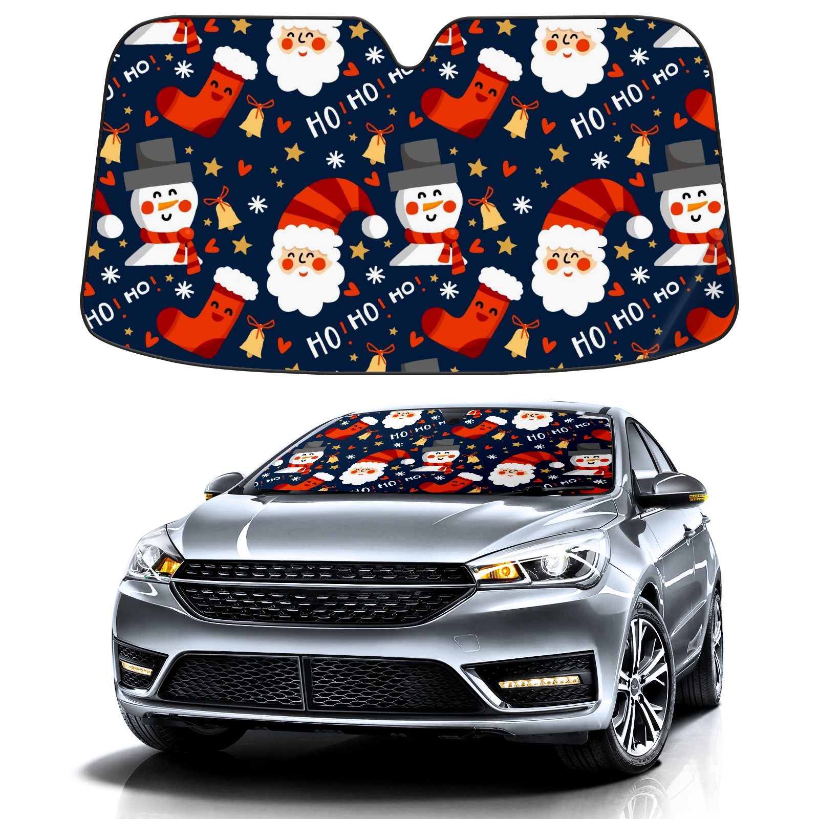 Aluminum foil polyester car sunshade pad, efficient heat insulation and sun protection artifactSanta Claus And Snowman