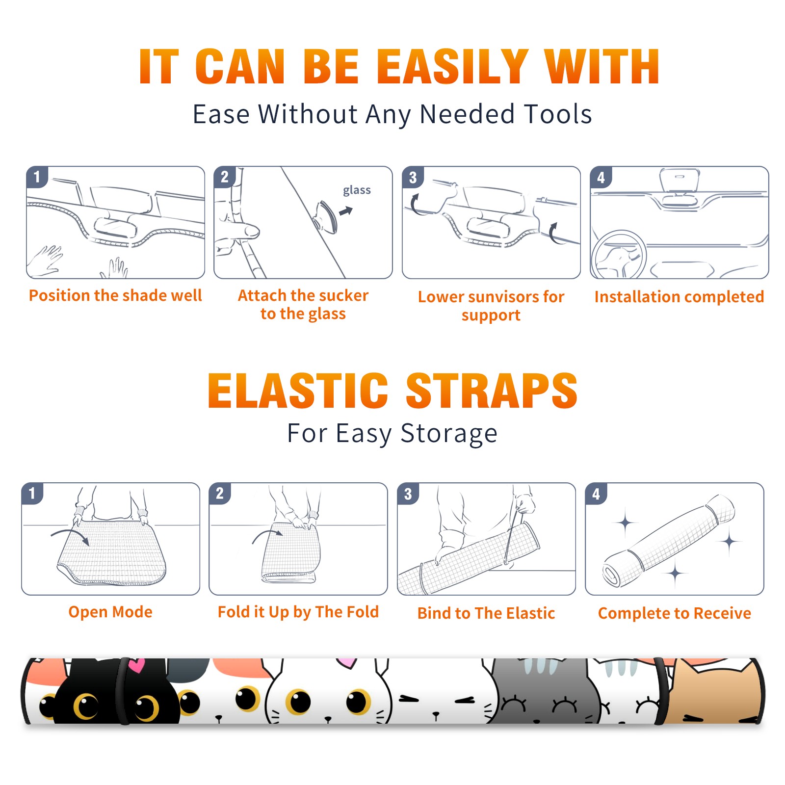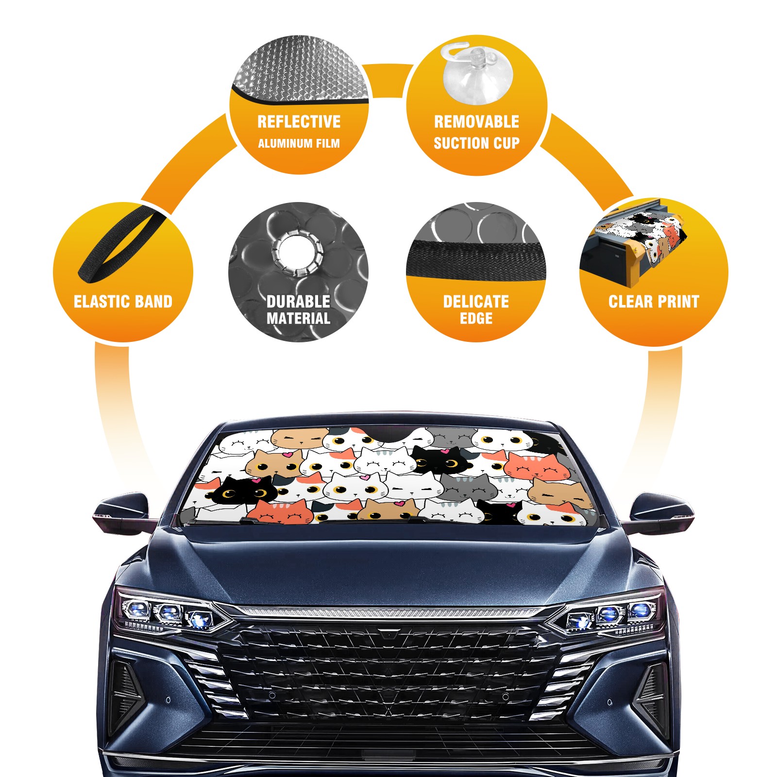 Aluminum foil polyester car sunshade pad, efficient heat insulation and sun protection artifactCat Cartoon
