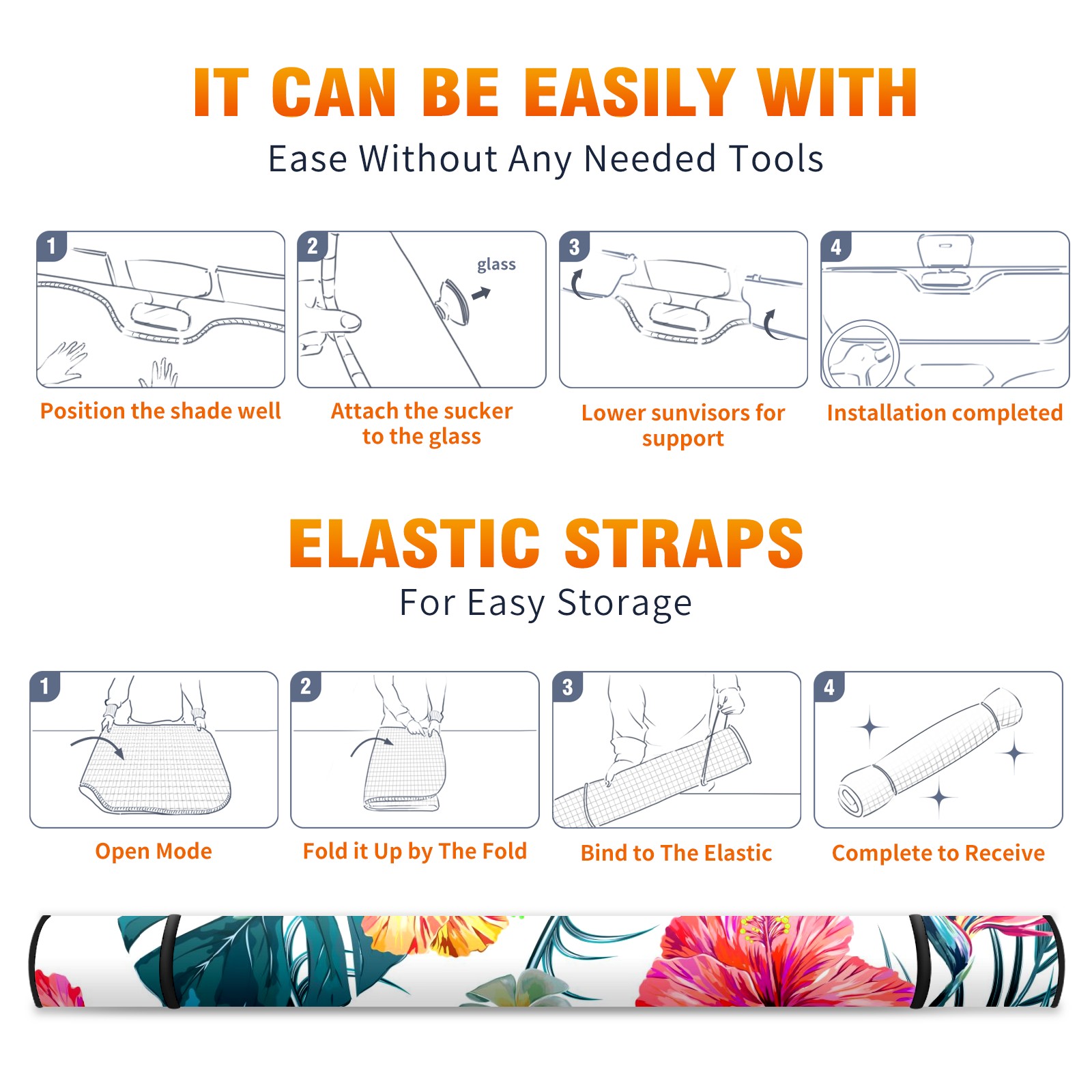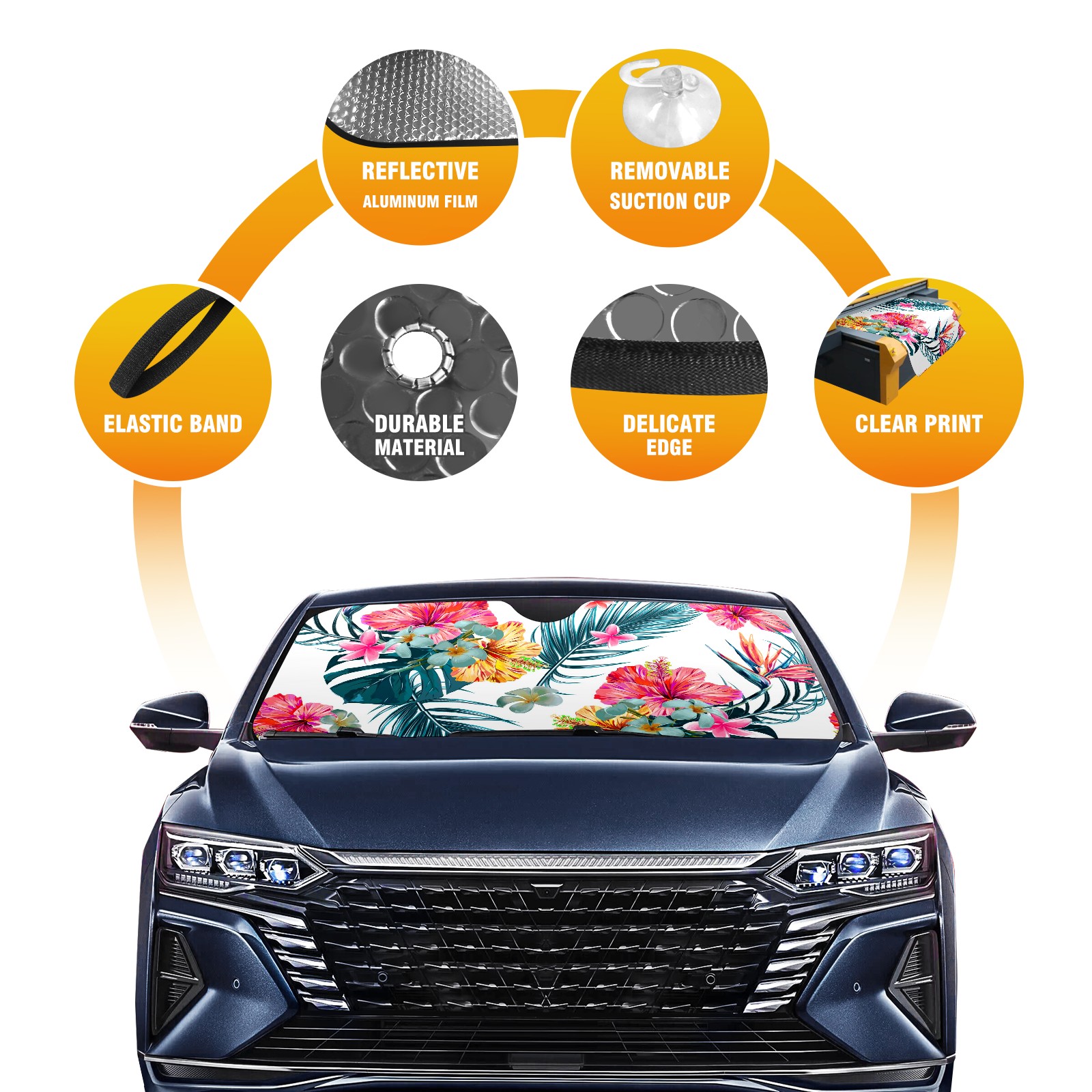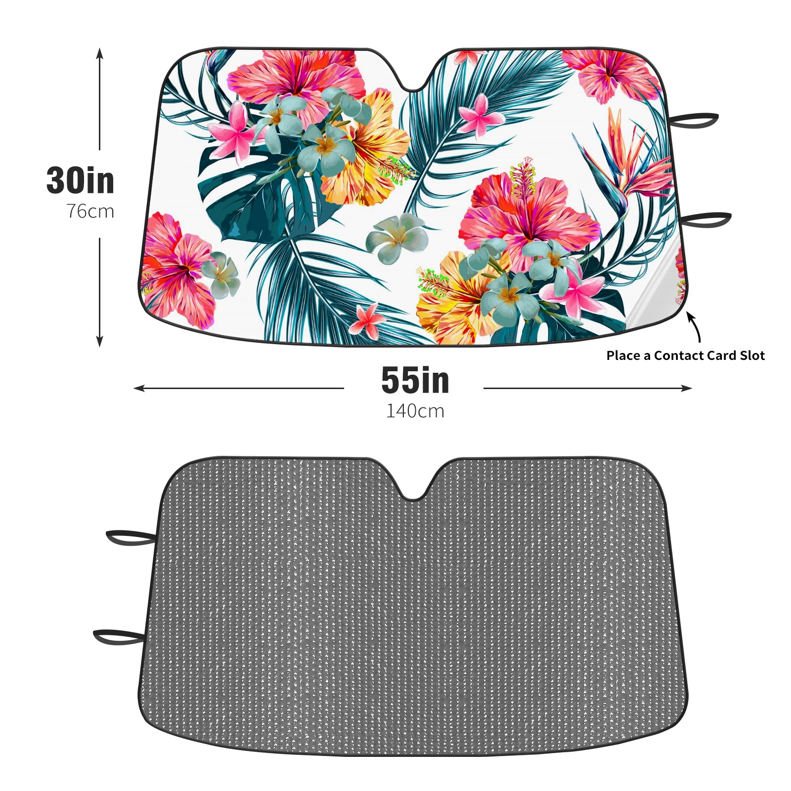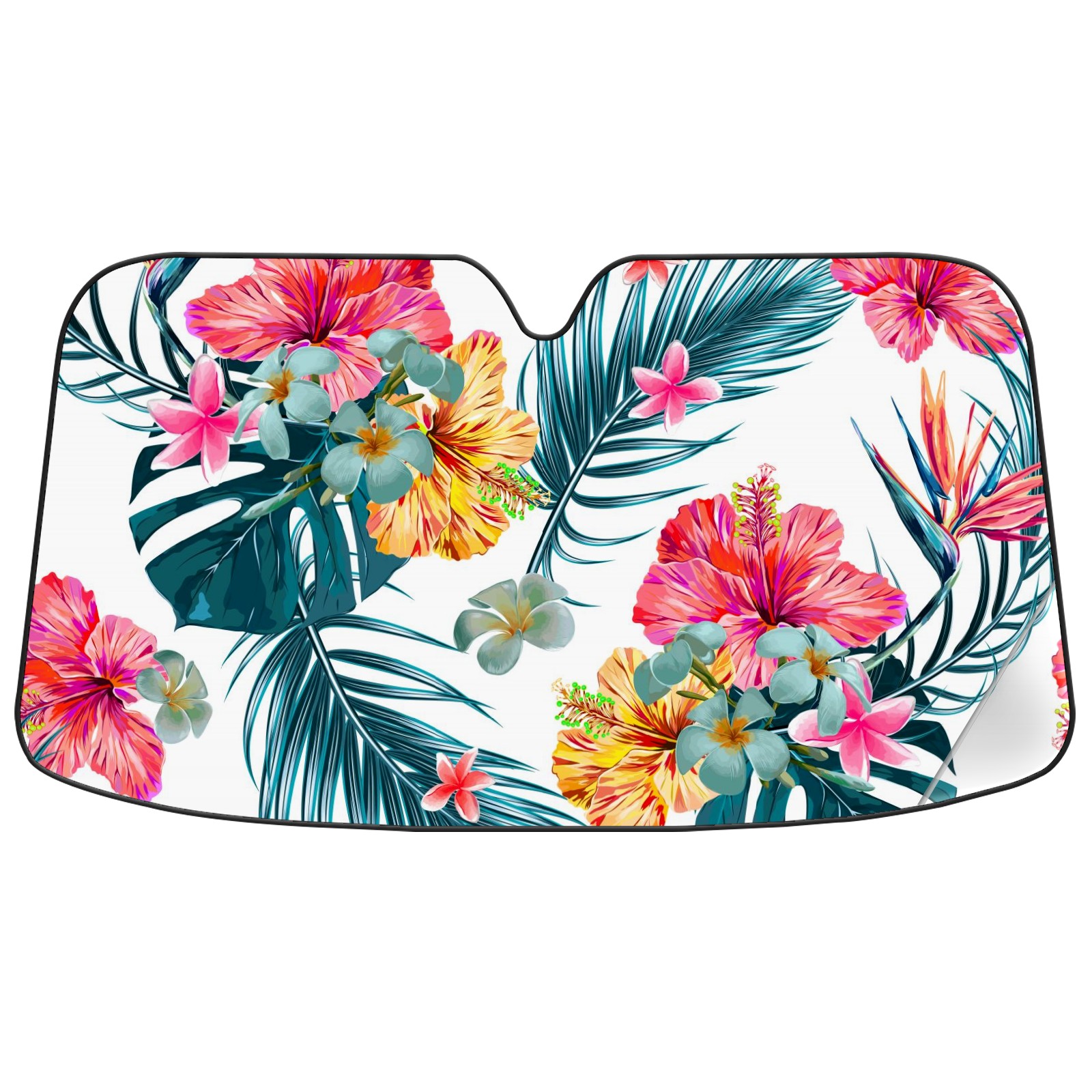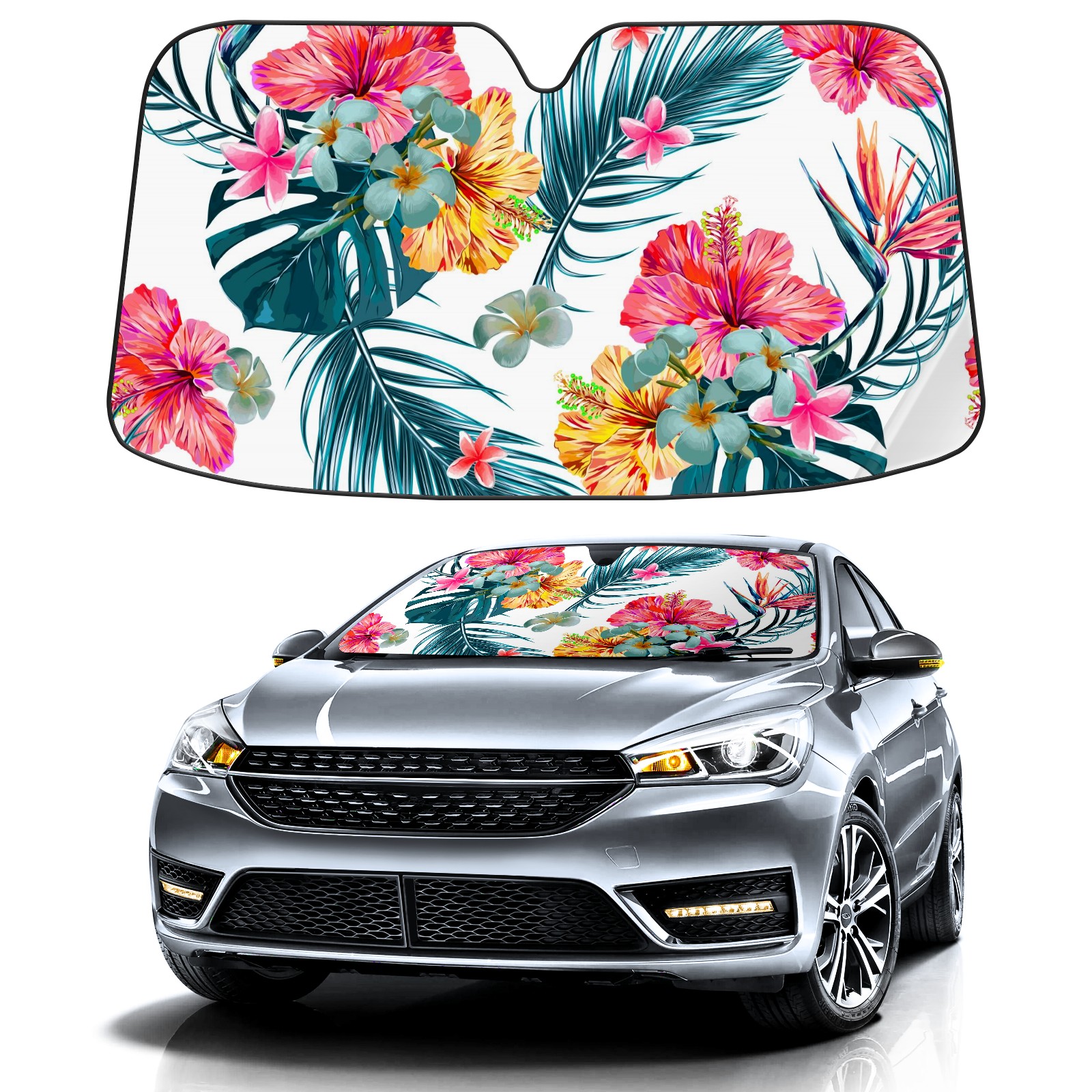 Aluminum foil polyester car sunshade pad, efficient heat insulation and sun protection artifactSummer Hibiscus Flower Tropical Leaf