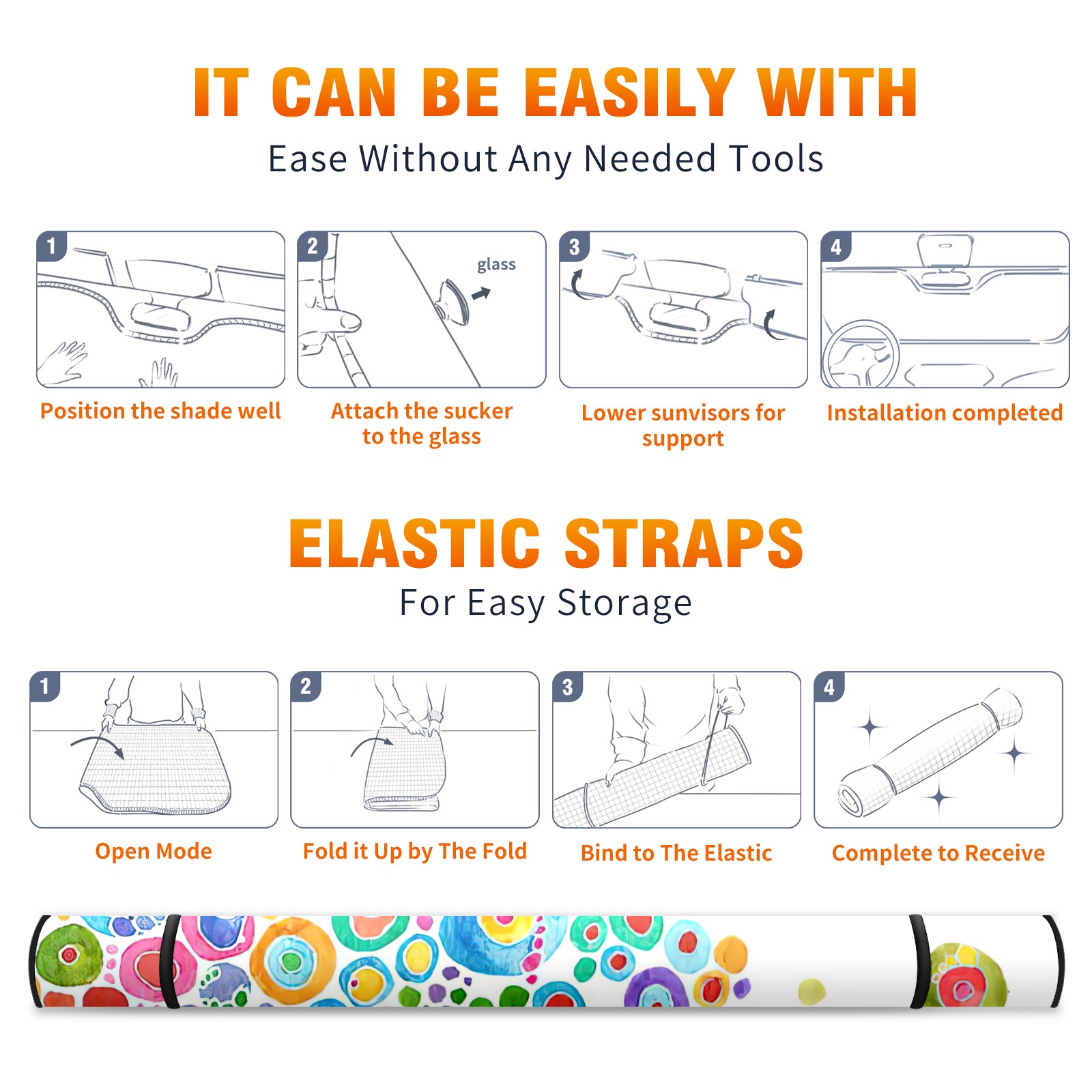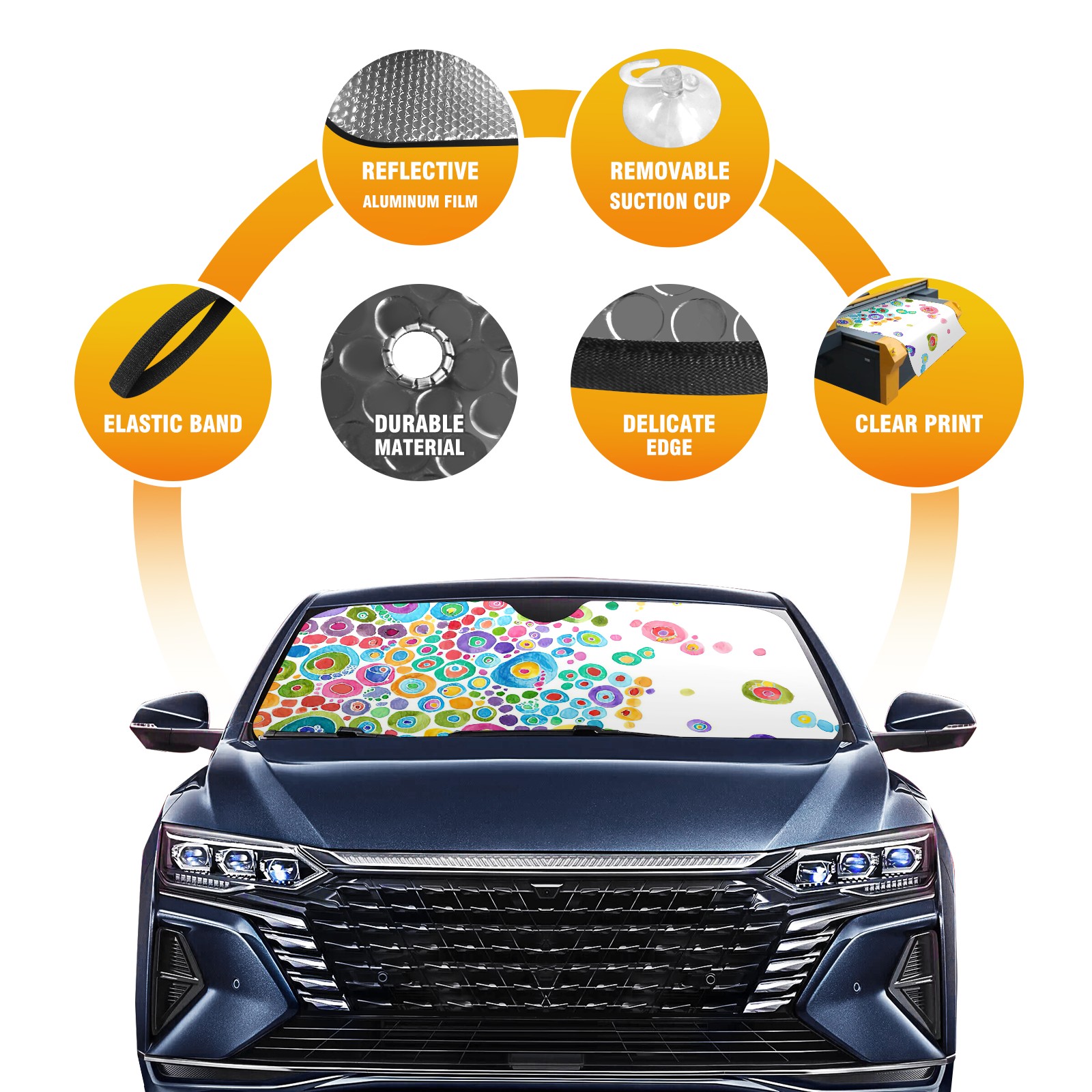 Aluminum foil polyester car sunshade pad, efficient heat insulation and sun protection artifactColorful Rainbow Circles