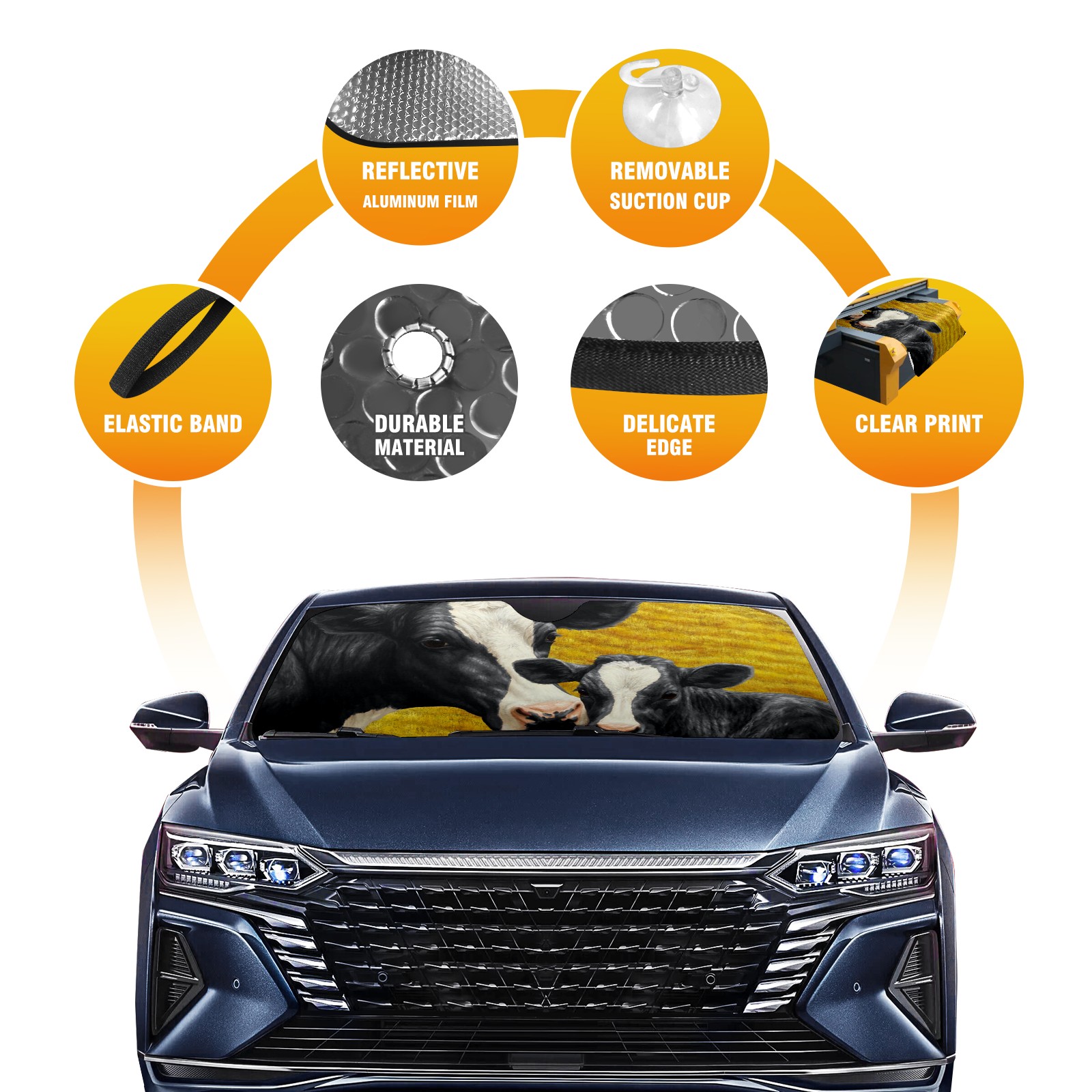 Aluminum foil polyester car sunshade pad, efficient heat insulation and sun protection artifactFarm Cow