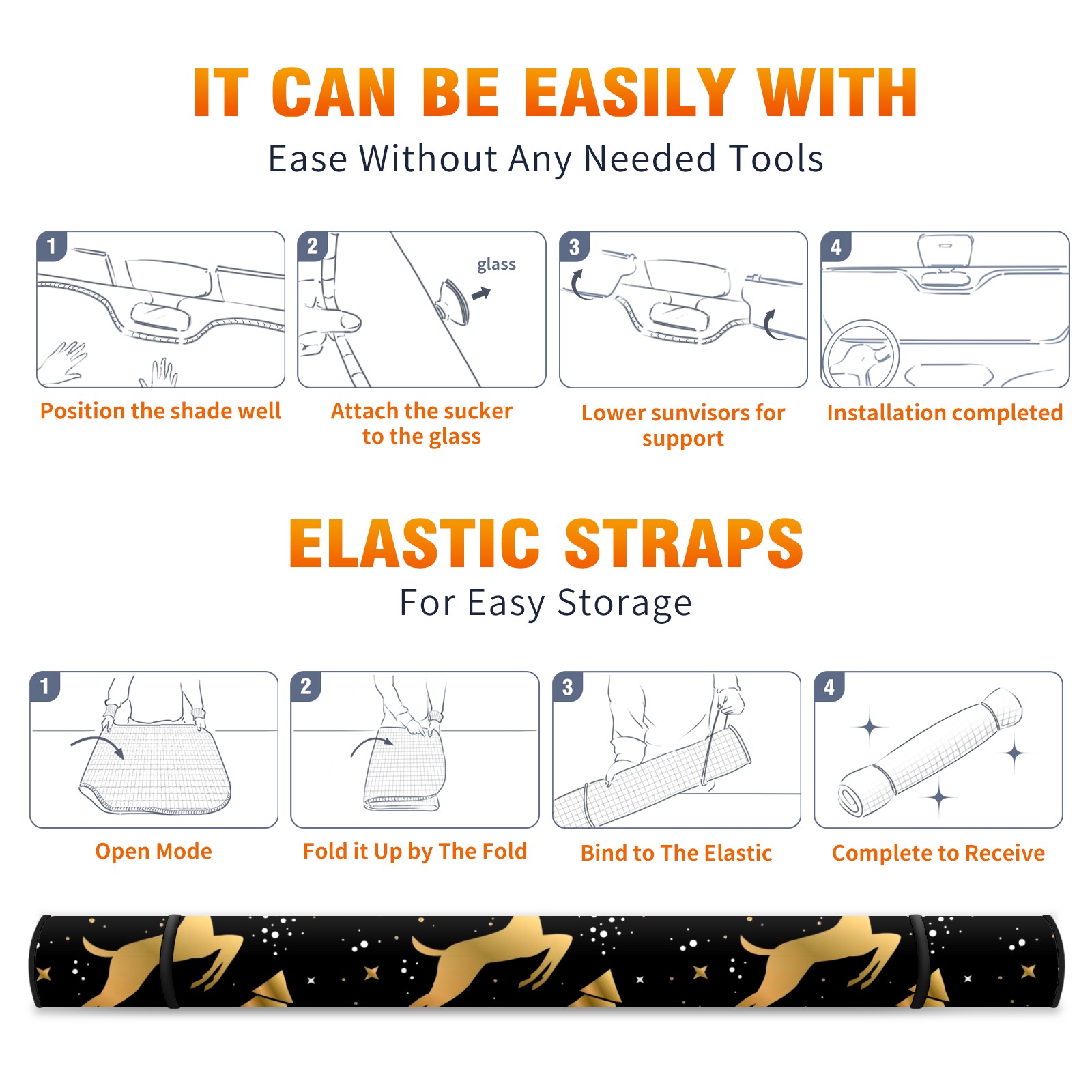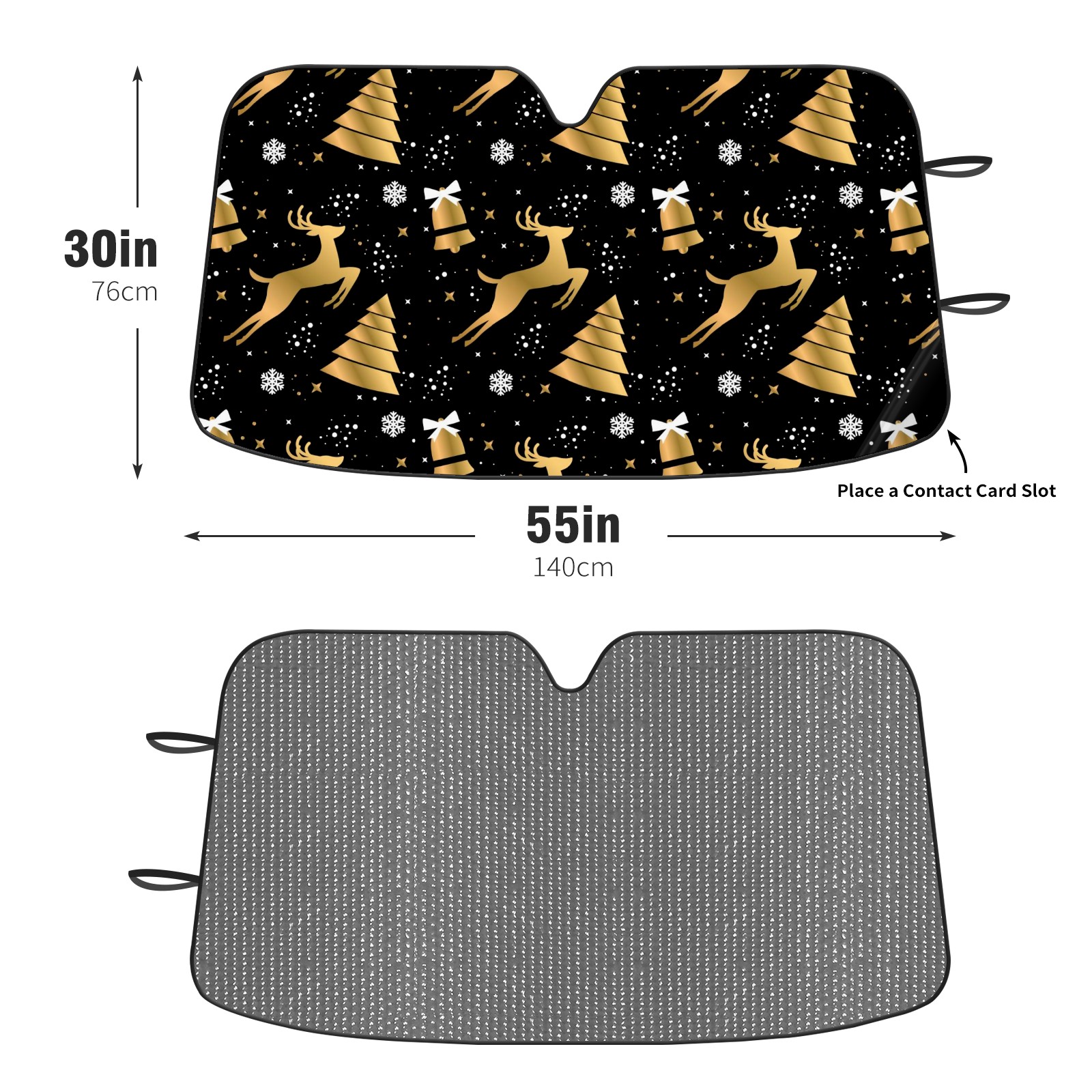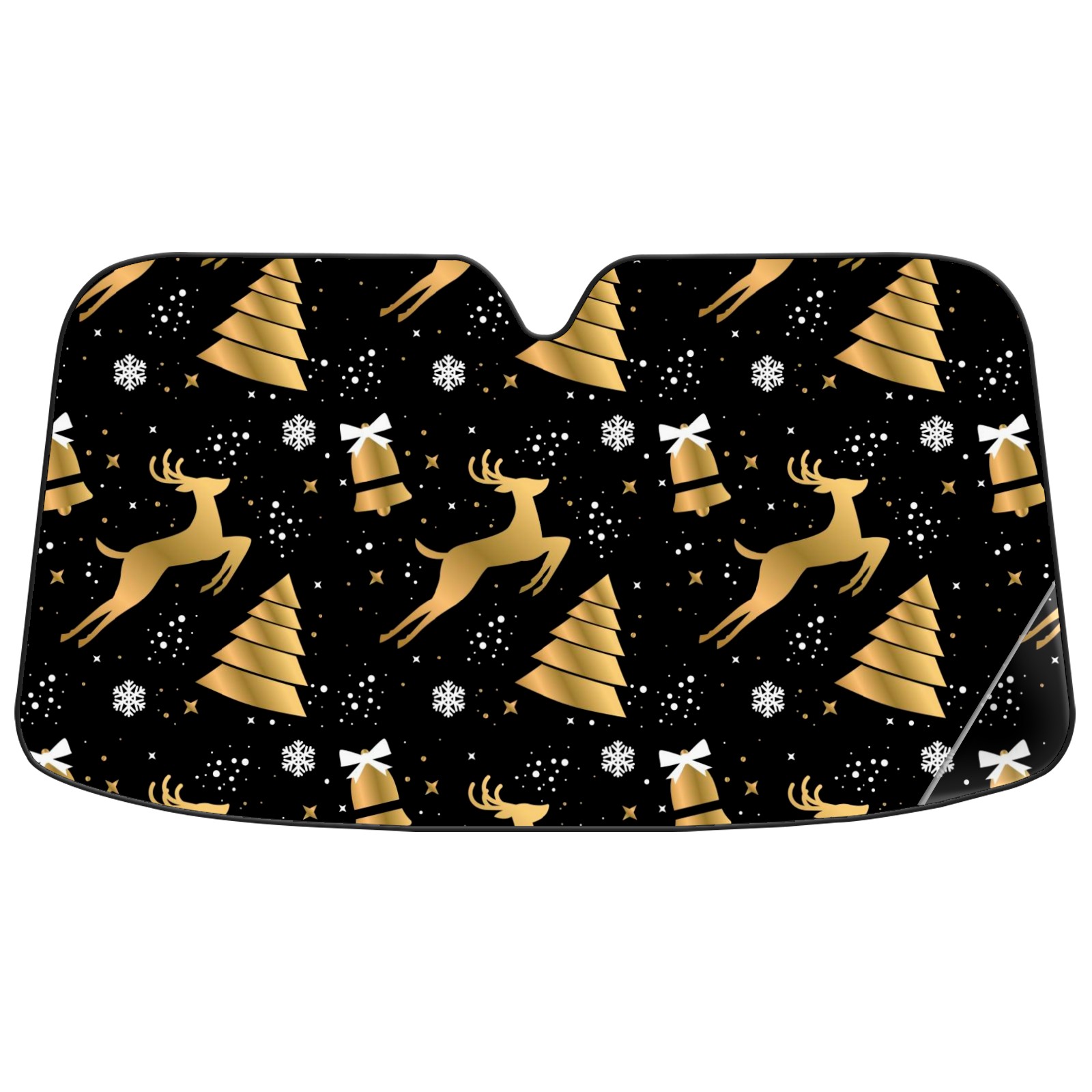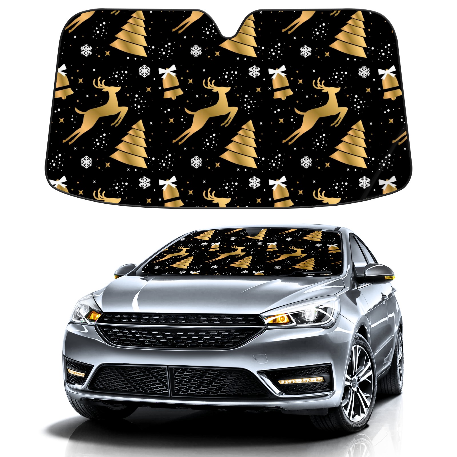 Aluminum foil polyester car sunshade pad, efficient heat insulation and sun protection artifactGolden Christmas Reindeer - Snowflake Bell Black