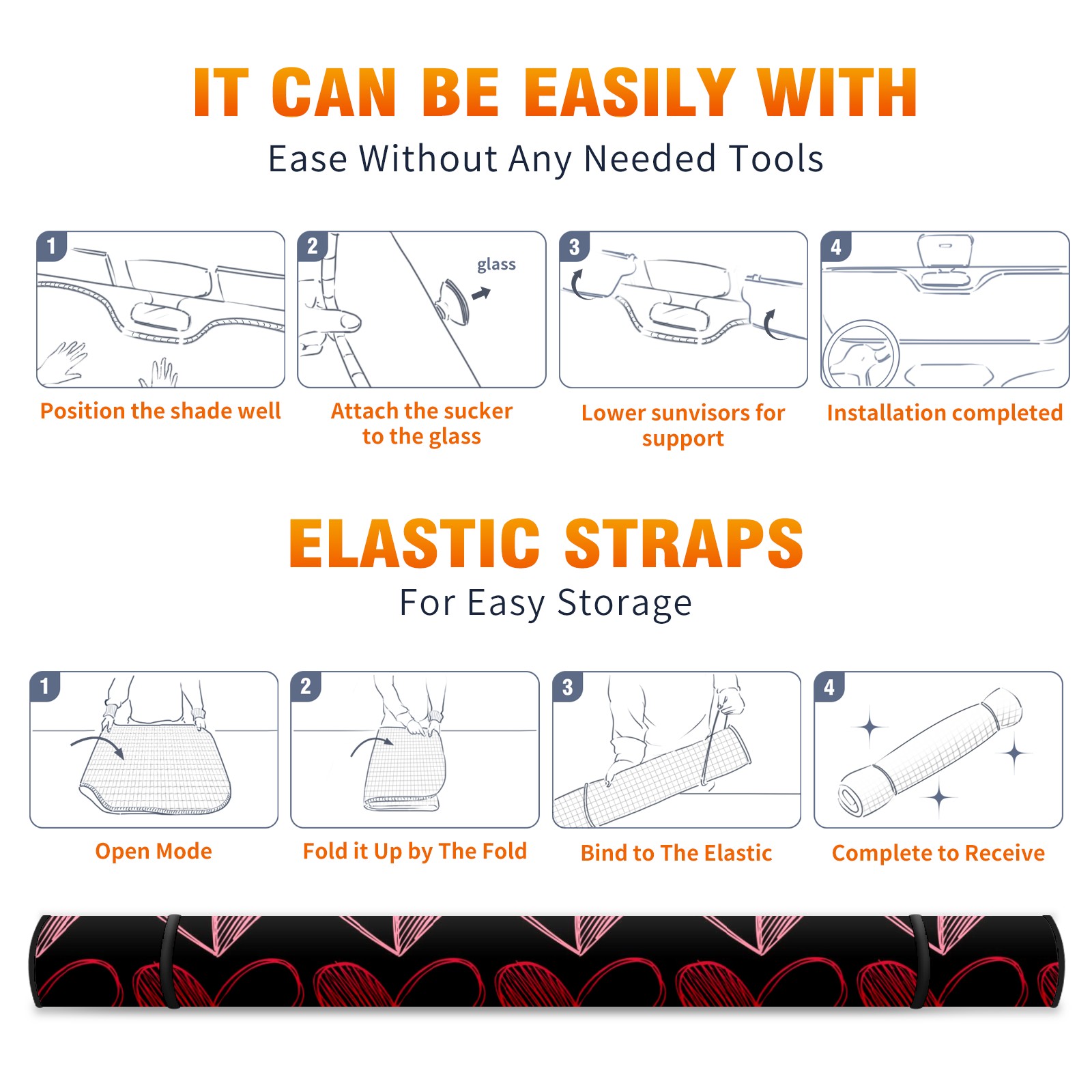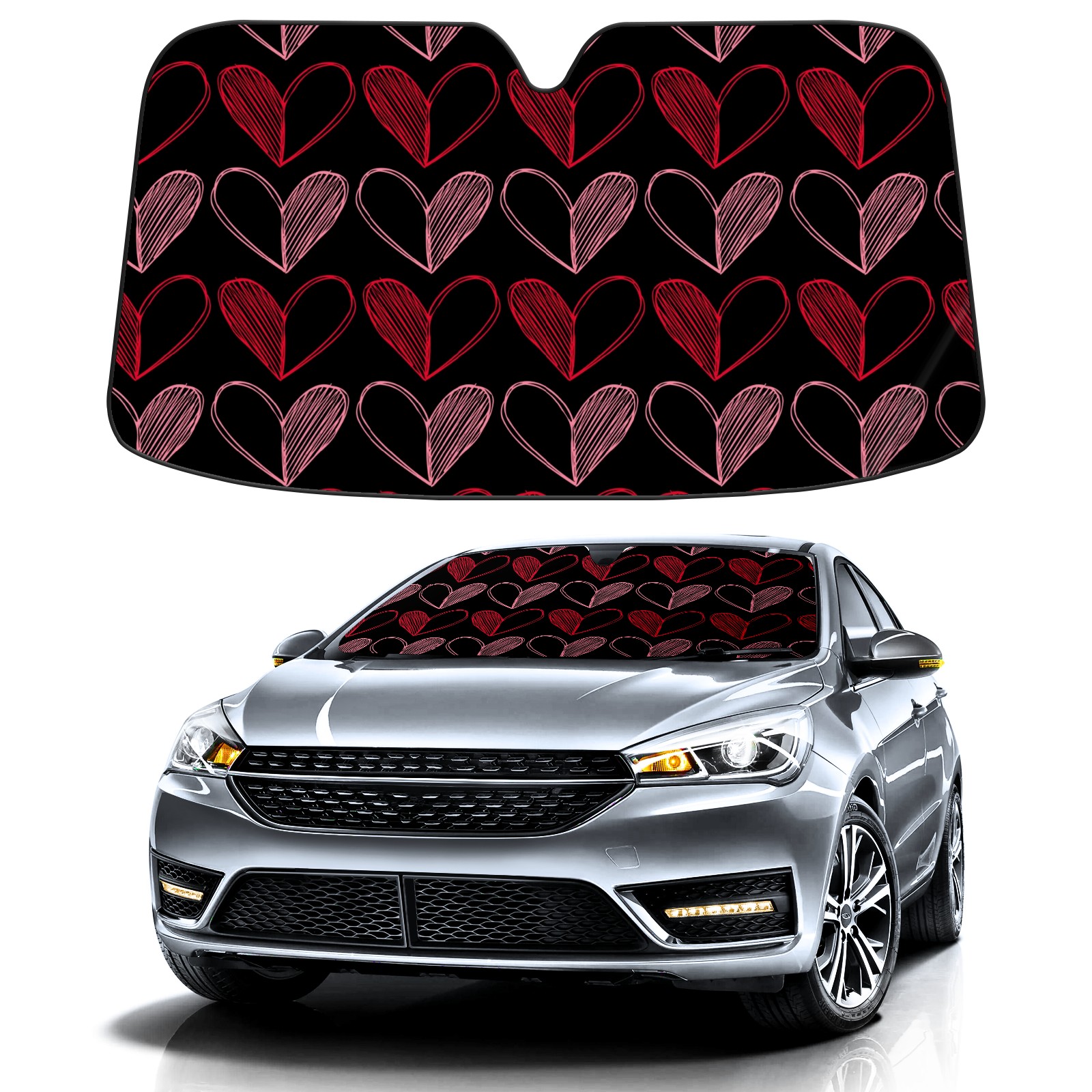 Aluminum foil polyester car sunshade pad, efficient heat insulation and sun protection artifactValentine's Day Heart