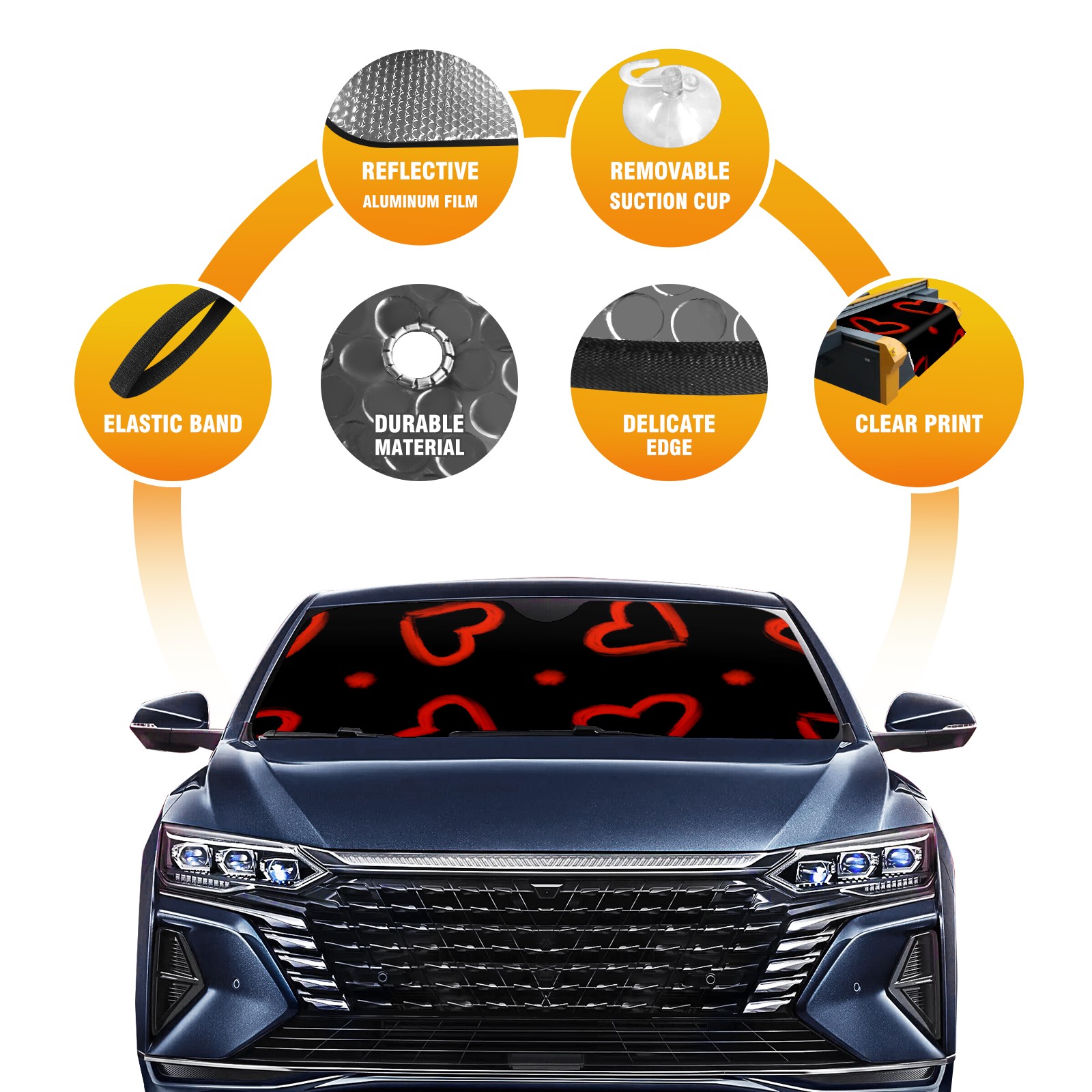 Aluminum foil polyester car sunshade pad, efficient heat insulation and sun protection artifactBlack And Red Valentines Day Hearts