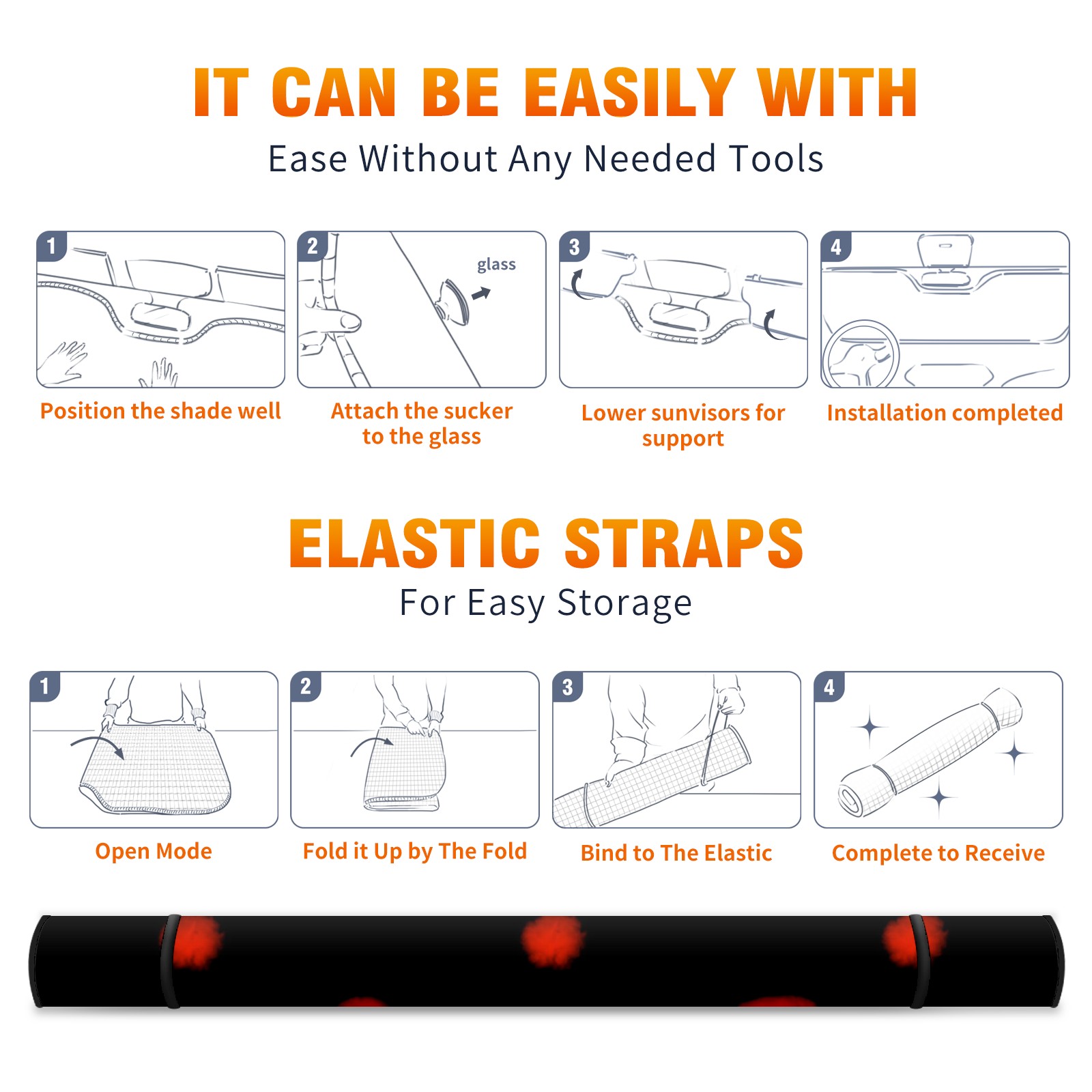 • <p>This car sunshade pad is made of a high-quality combination of aluminum foil and polyester, reinforced with transparent adhesive. It measures 140x76cm (55inx30in) and is a practical choice for protecting your car. Its powerful UV protection function can effectively block harmful light, prevent the car interior from aging due to exposure to sunlight, and maintain the dashboard, steering wheel, and seats in a brand new state.<br></p>