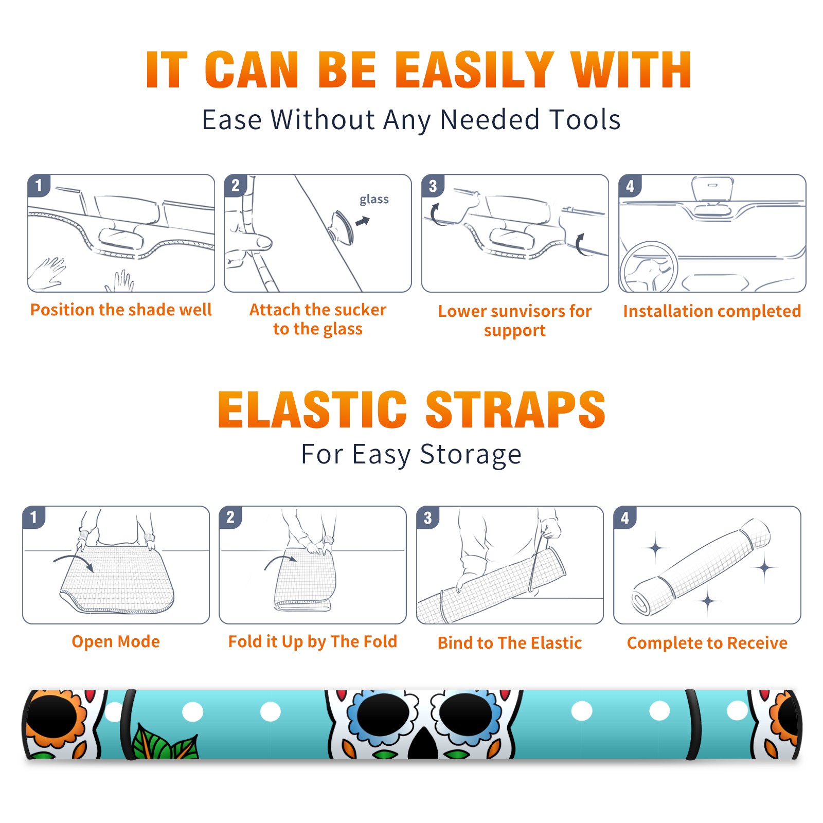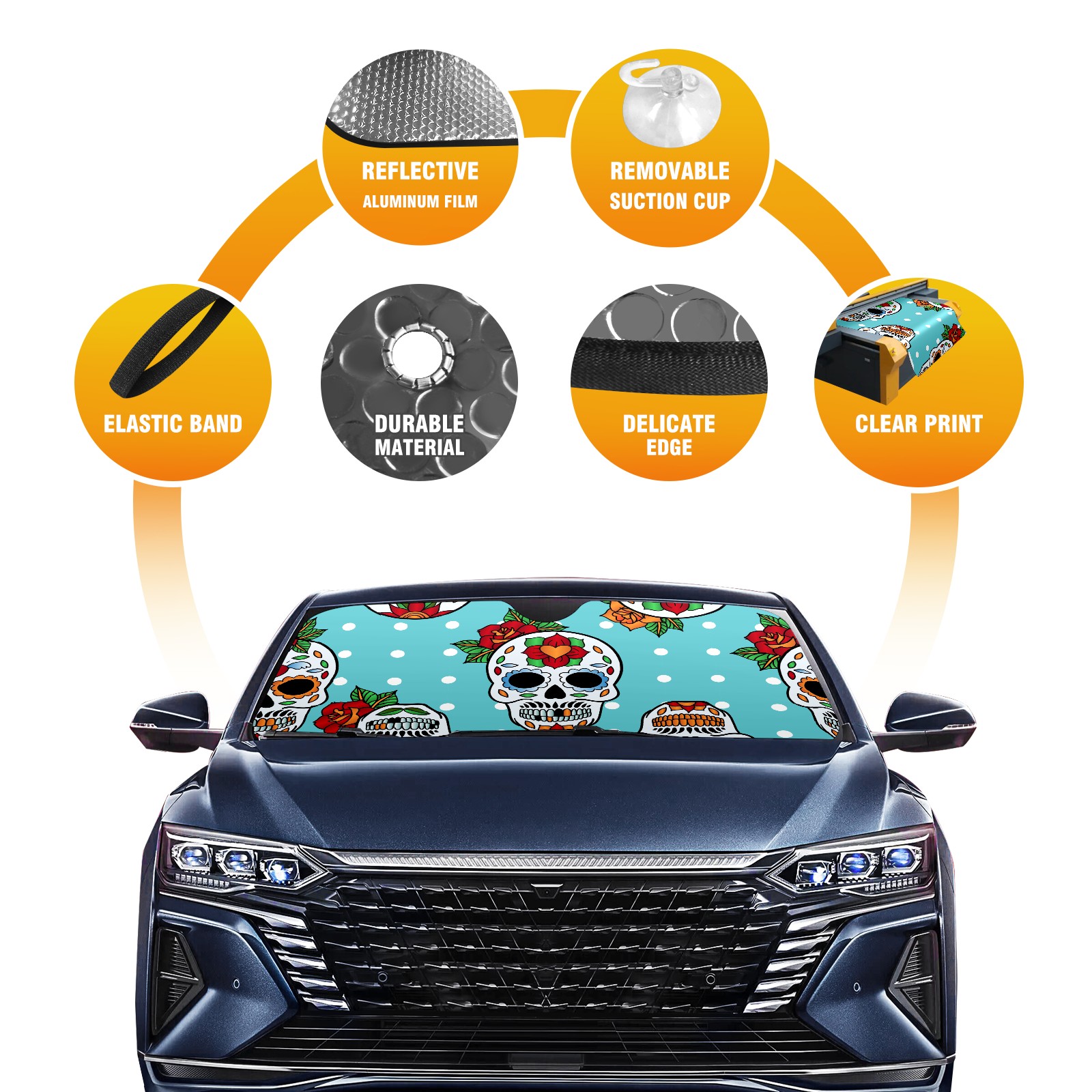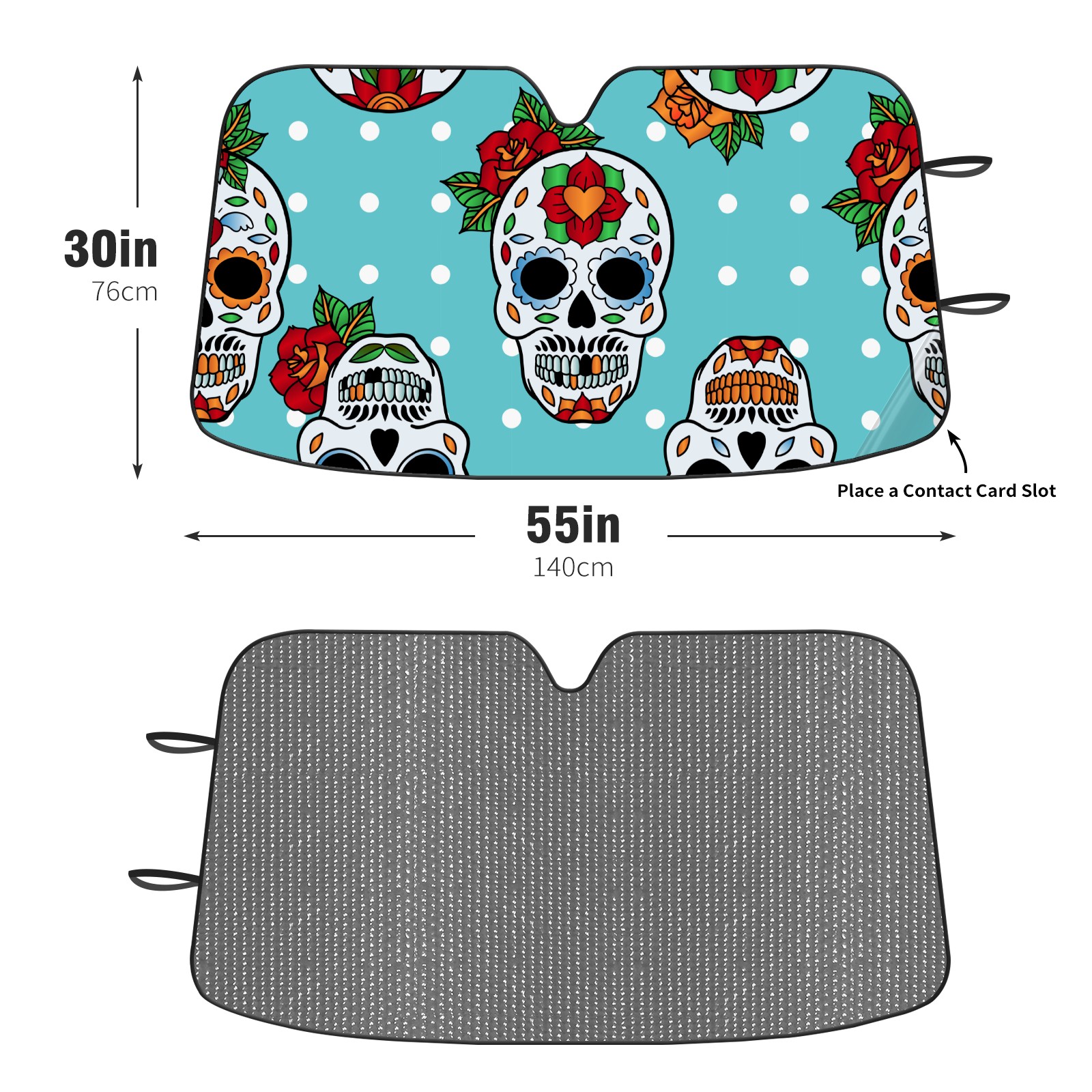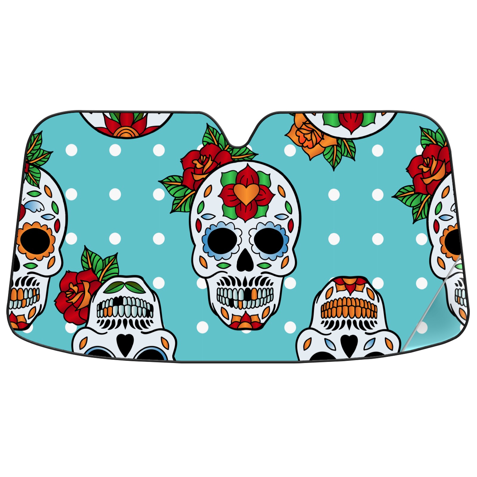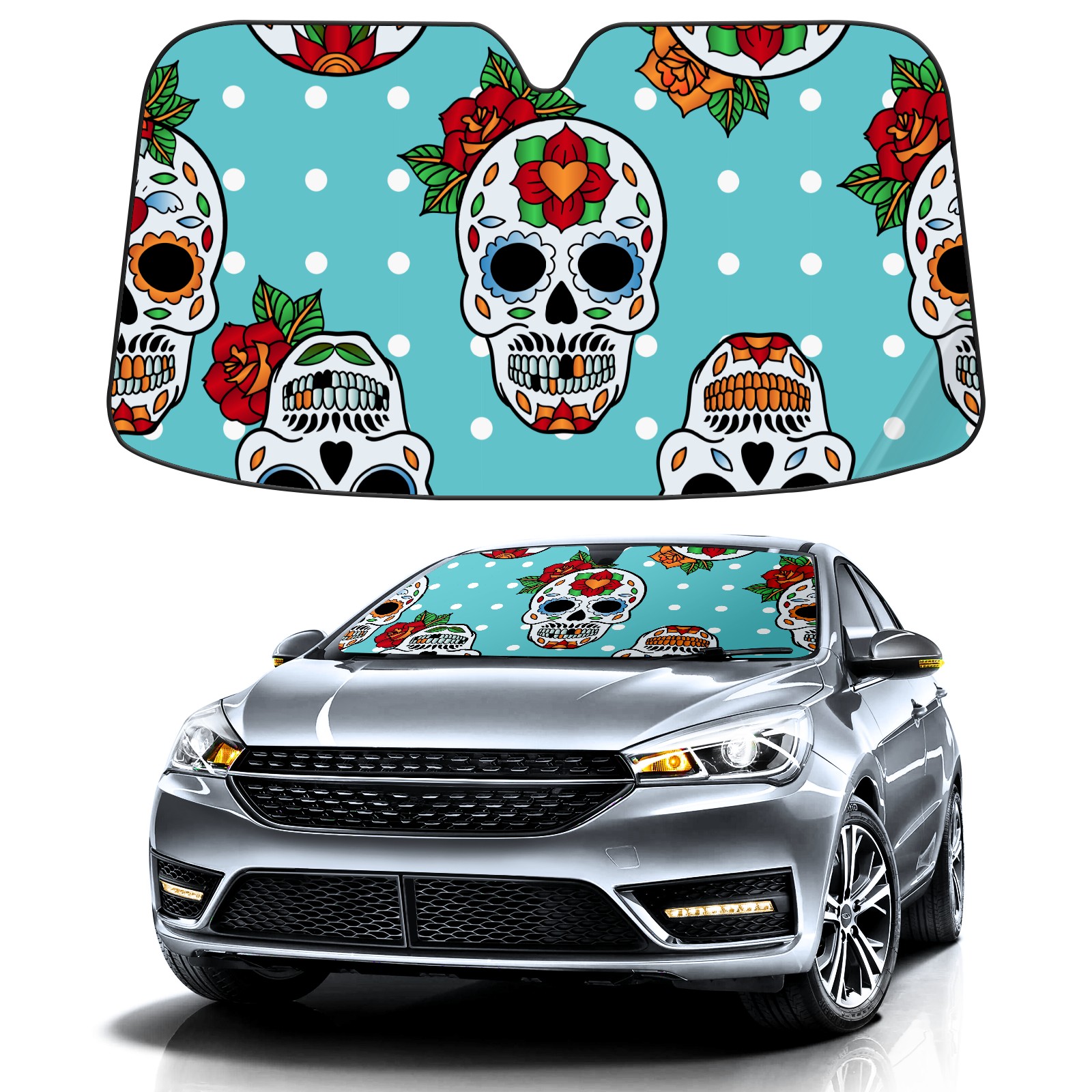 Aluminum foil polyester car sunshade pad, efficient heat insulation and sun protection artifactSugar Skulls Mexican Pattern