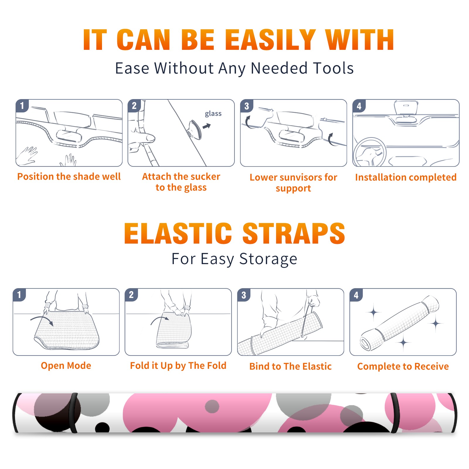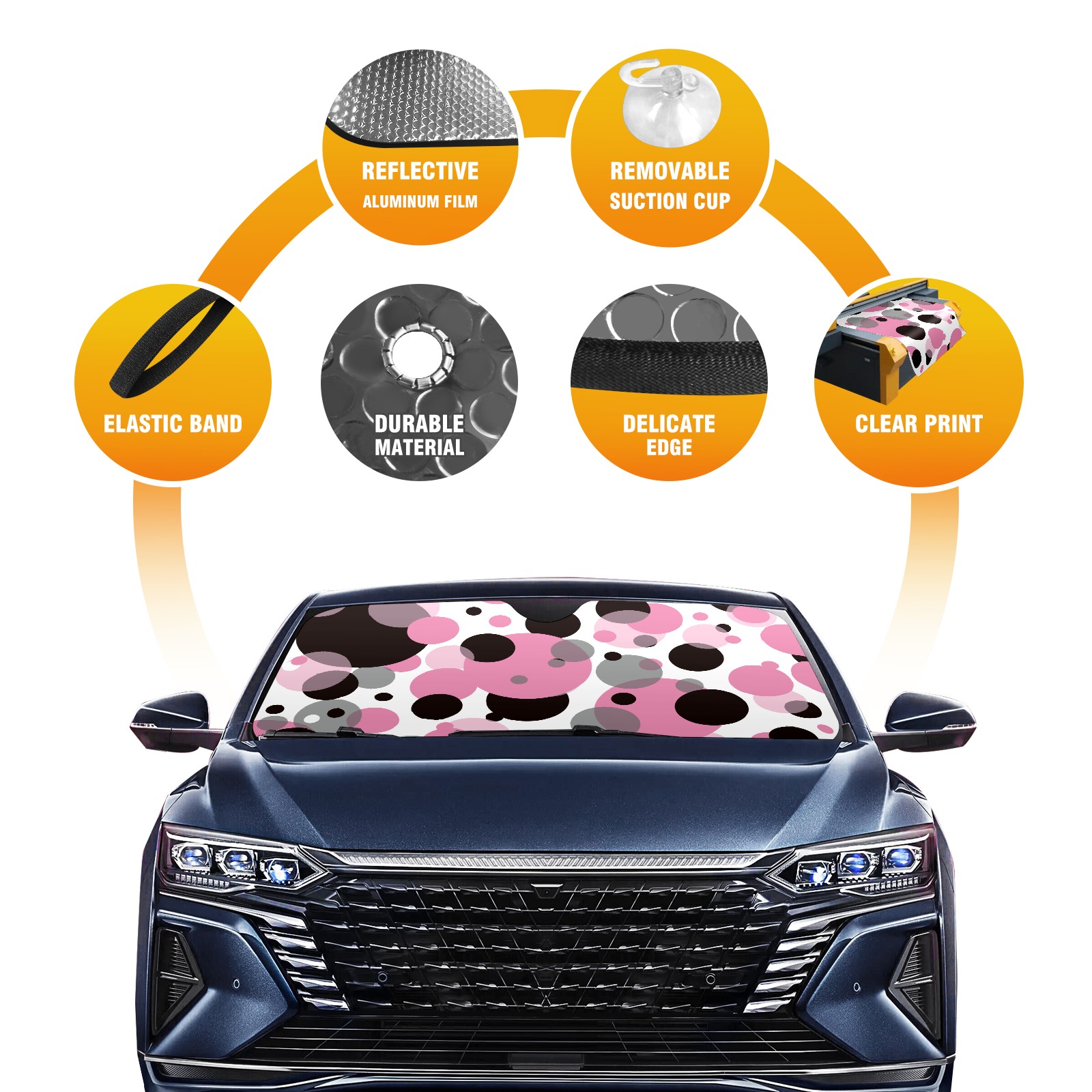 Aluminum foil polyester car sunshade pad, efficient heat insulation and sun protection artifactPink Black Polka Dot