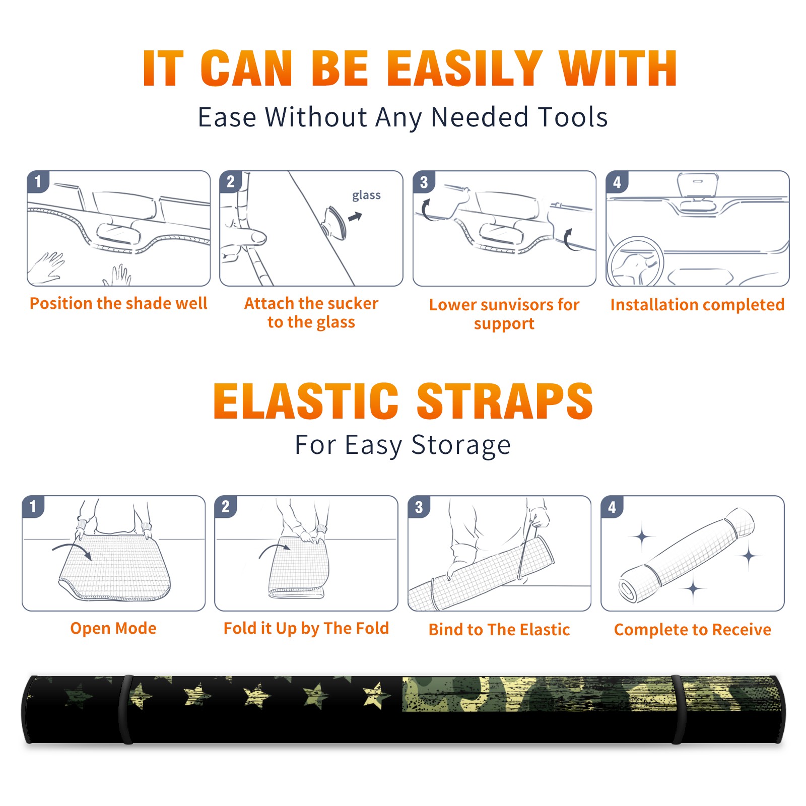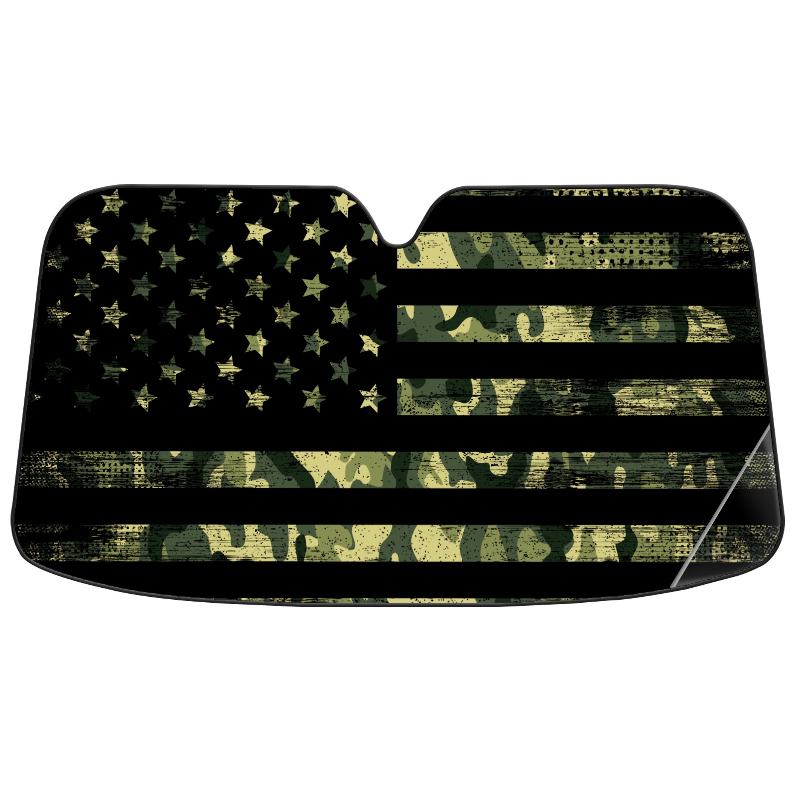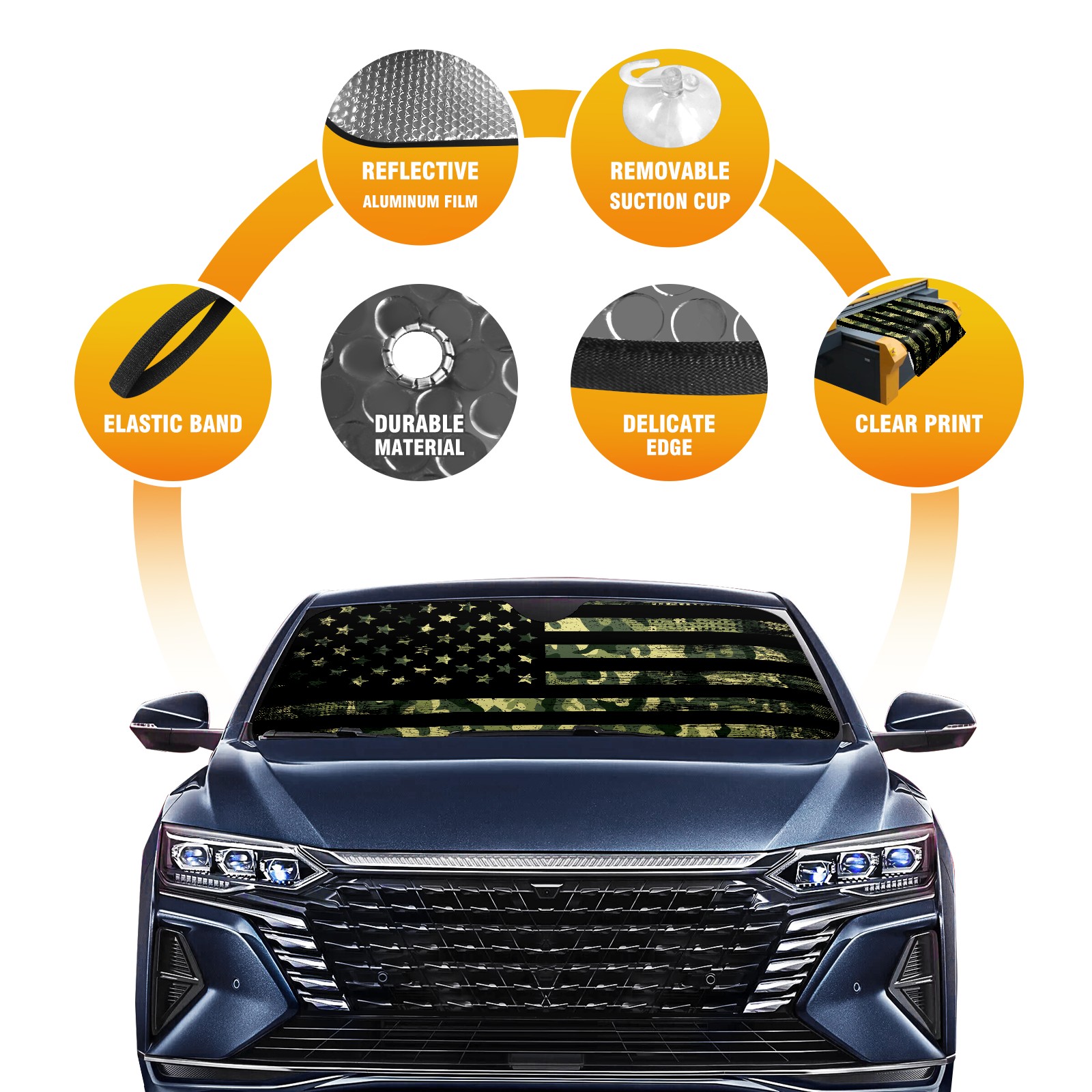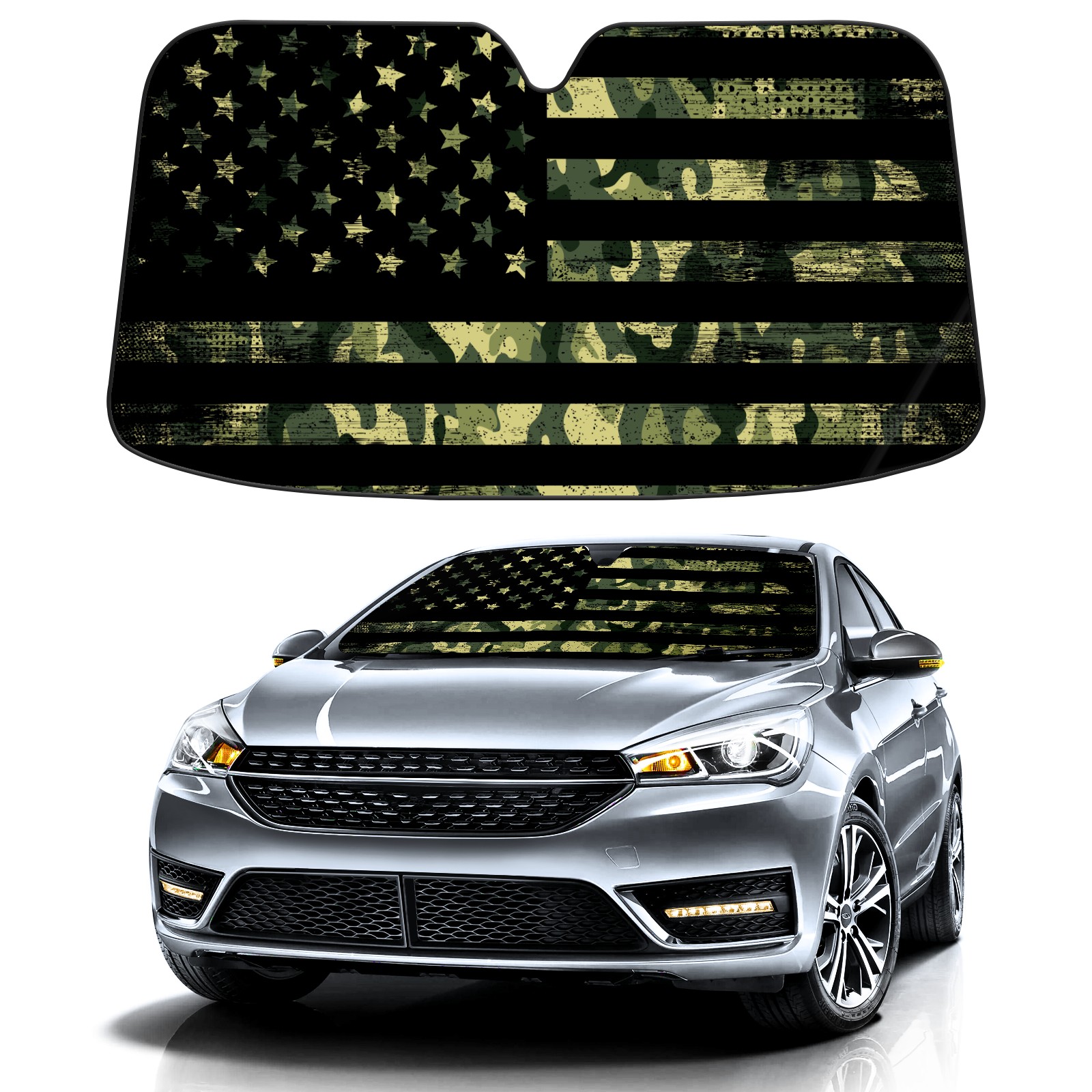 Aluminum foil polyester car sunshade pad, efficient heat insulation and sun protection artifactRetro American Flag Camouflage