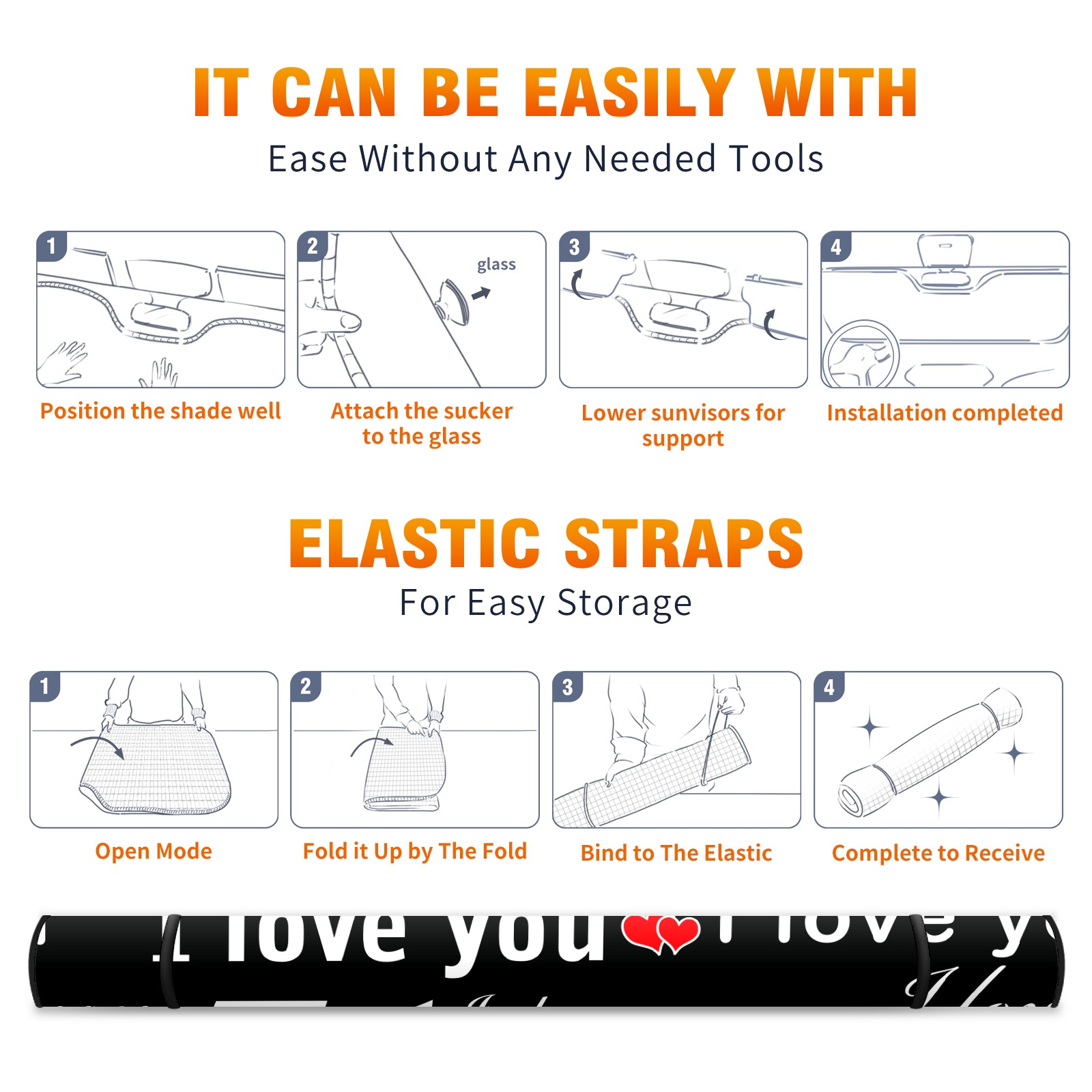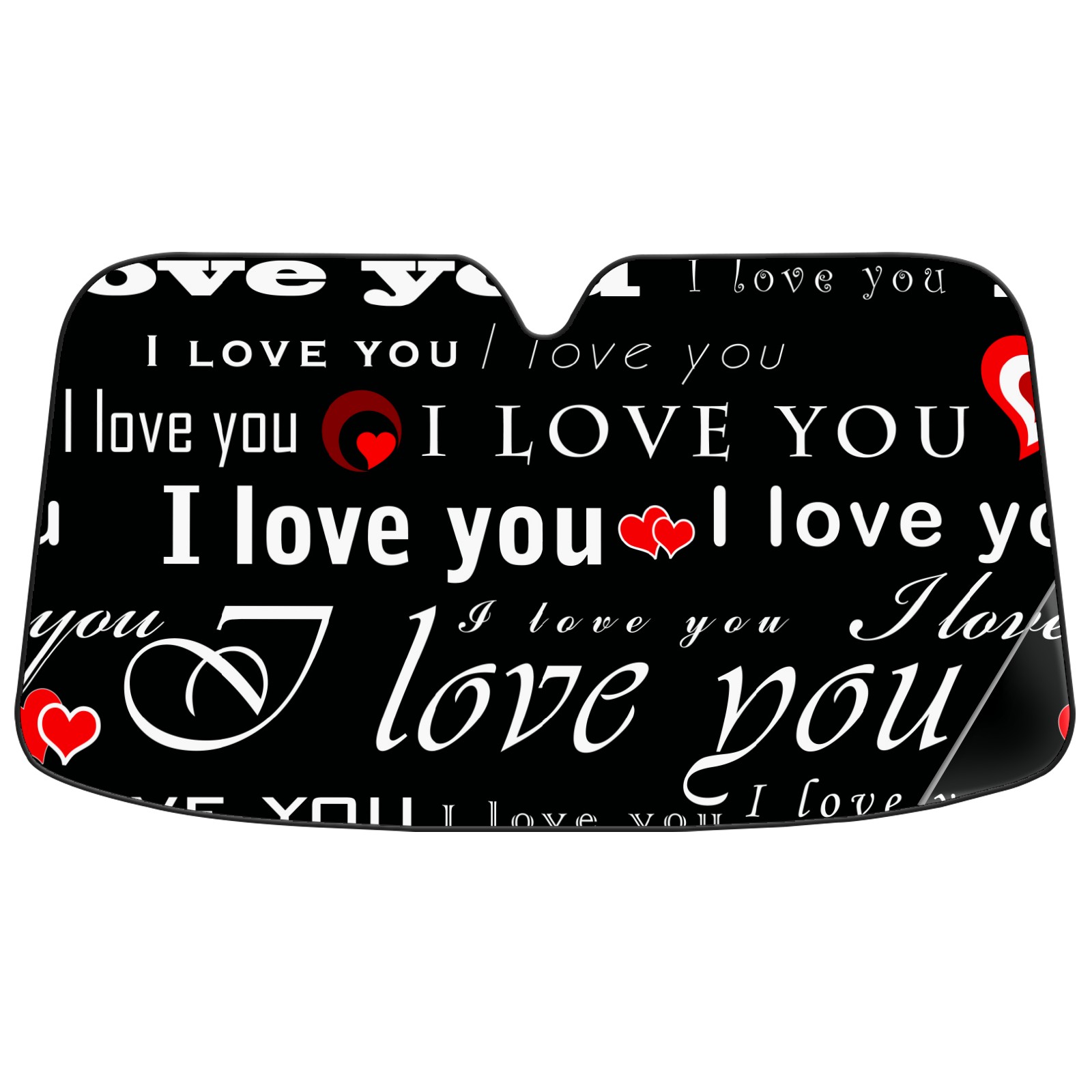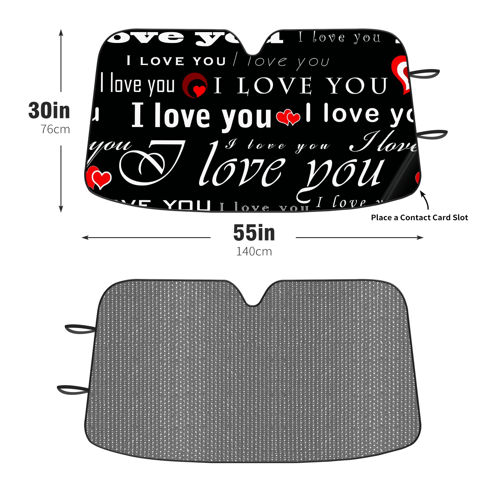 Aluminum foil polyester car sunshade pad, efficient heat insulation and sun protection artifactValentine's Day I Love You Pattern