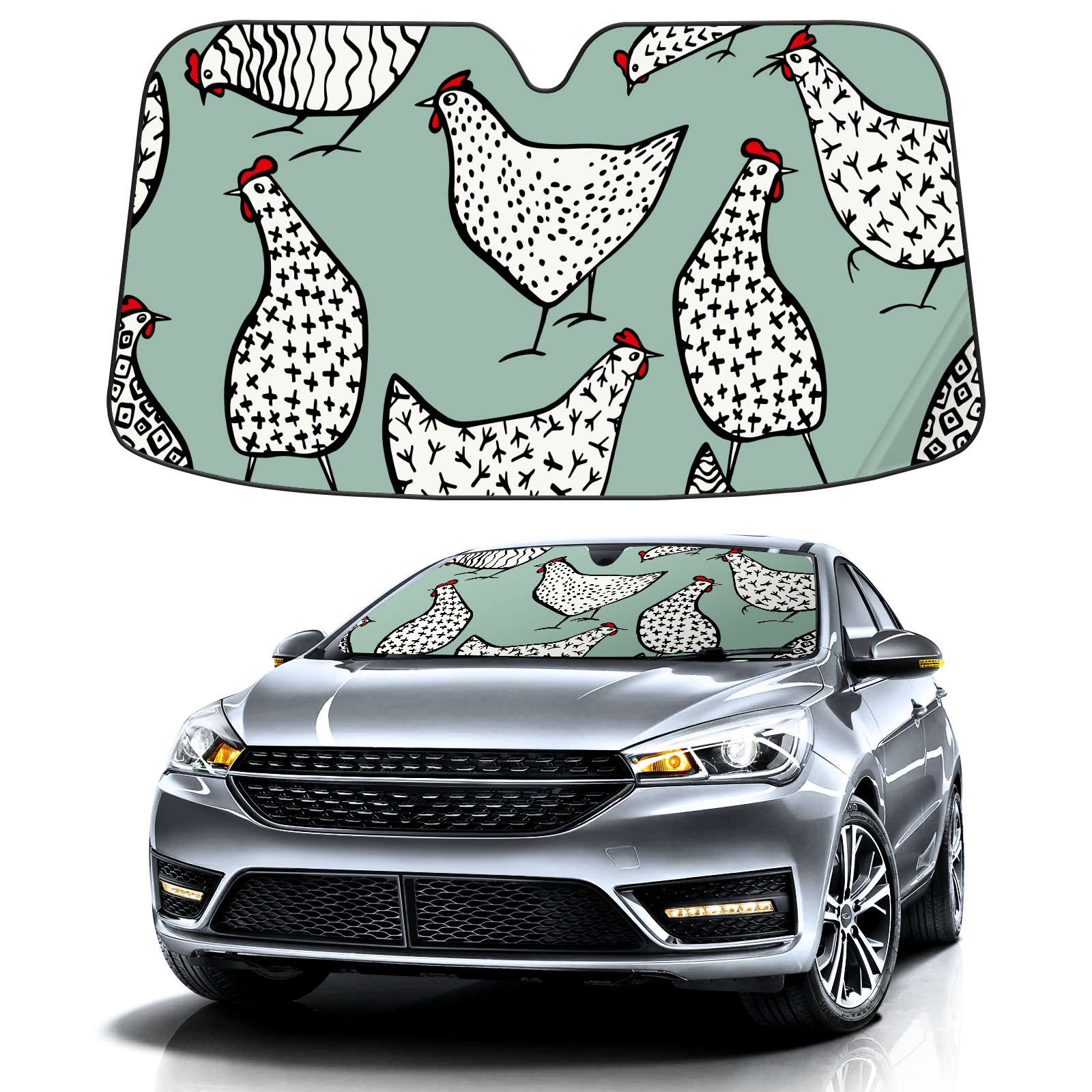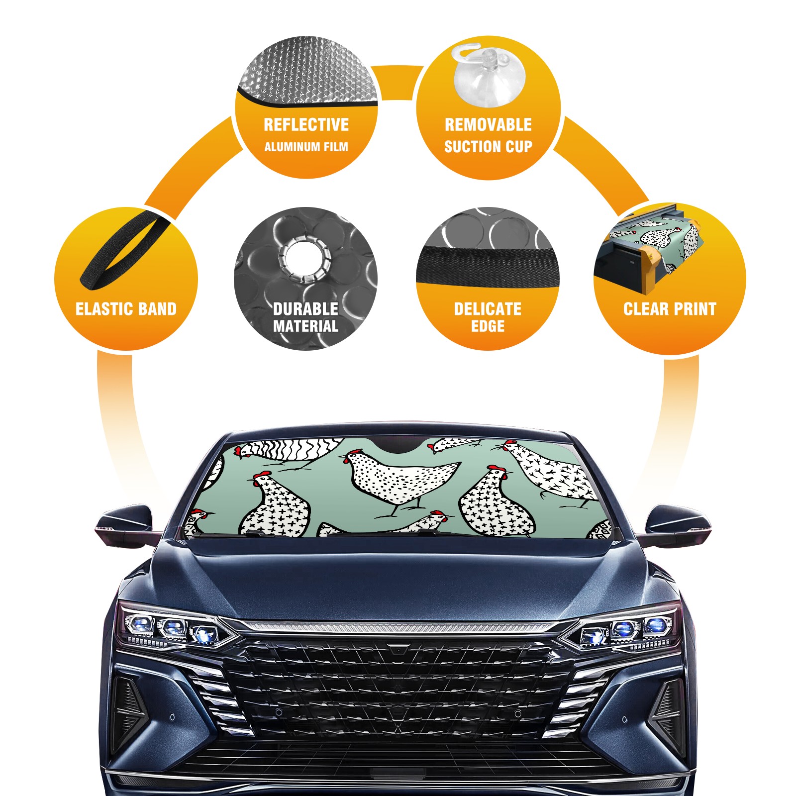 Aluminum foil polyester car sunshade pad, efficient heat insulation and sun protection artifactFunny Animal Chicken Rooster Pattern