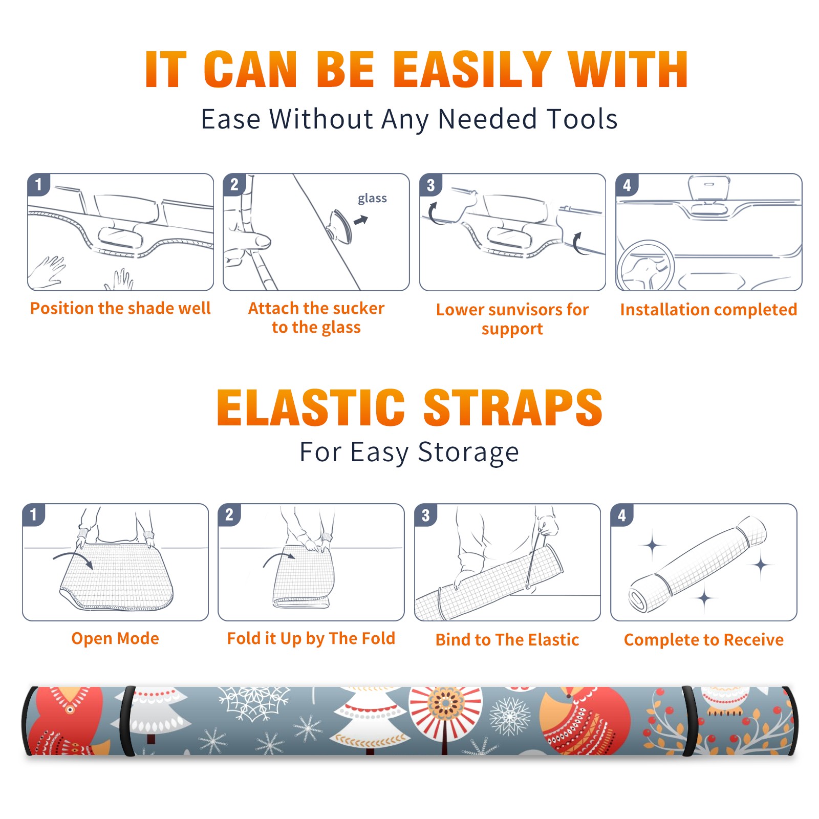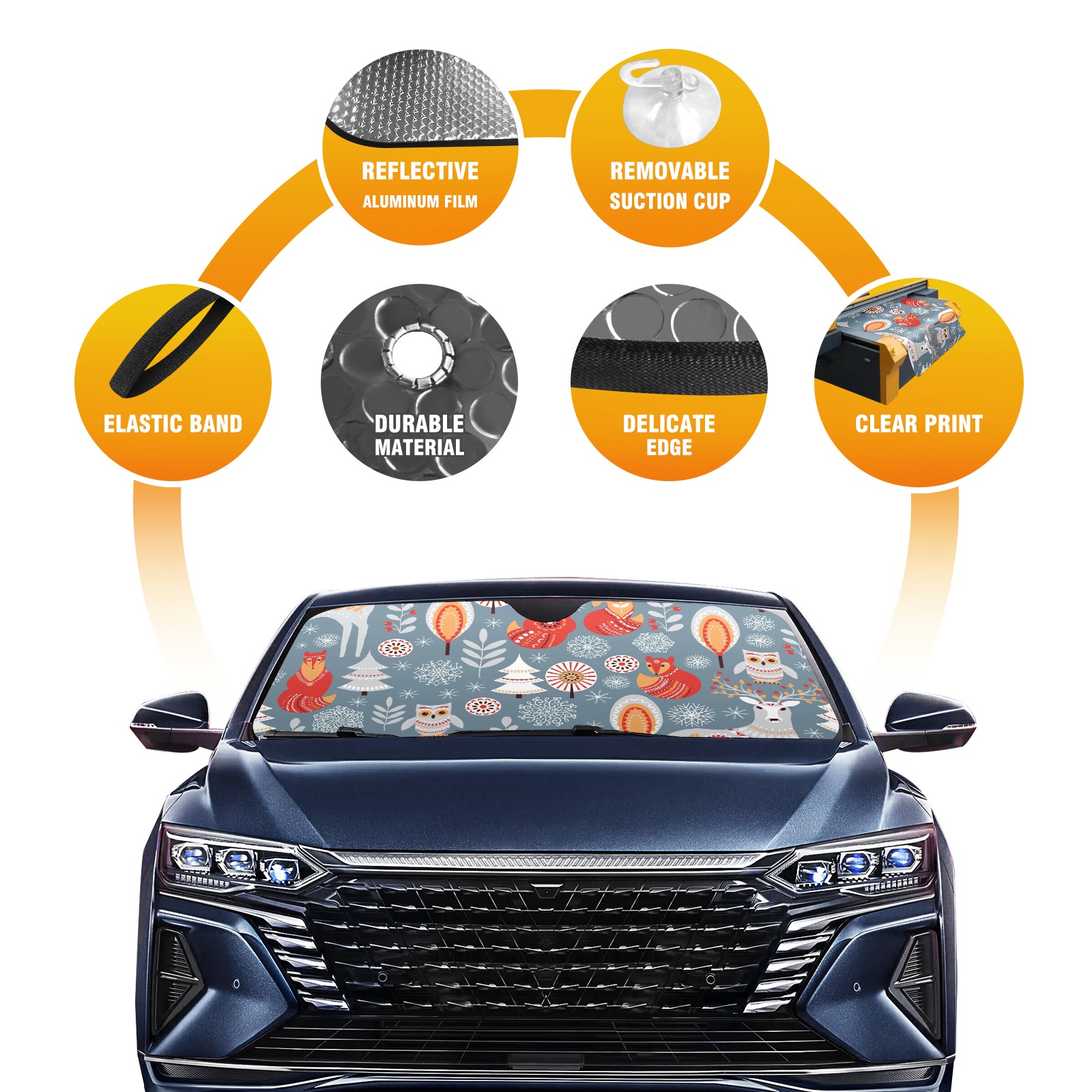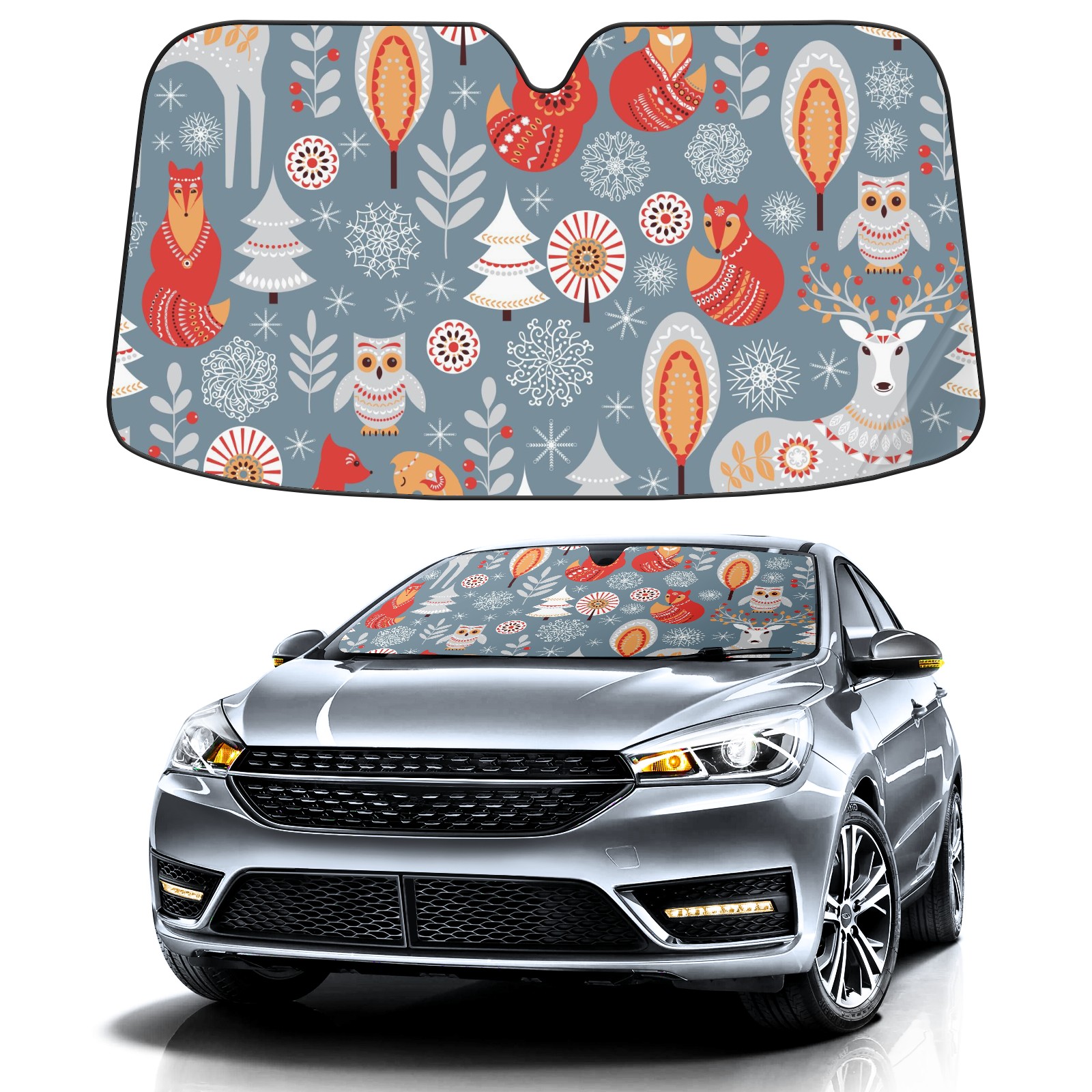 Aluminum foil polyester car sunshade pad, efficient heat insulation and sun protection artifactScandinavian Christmas Animals