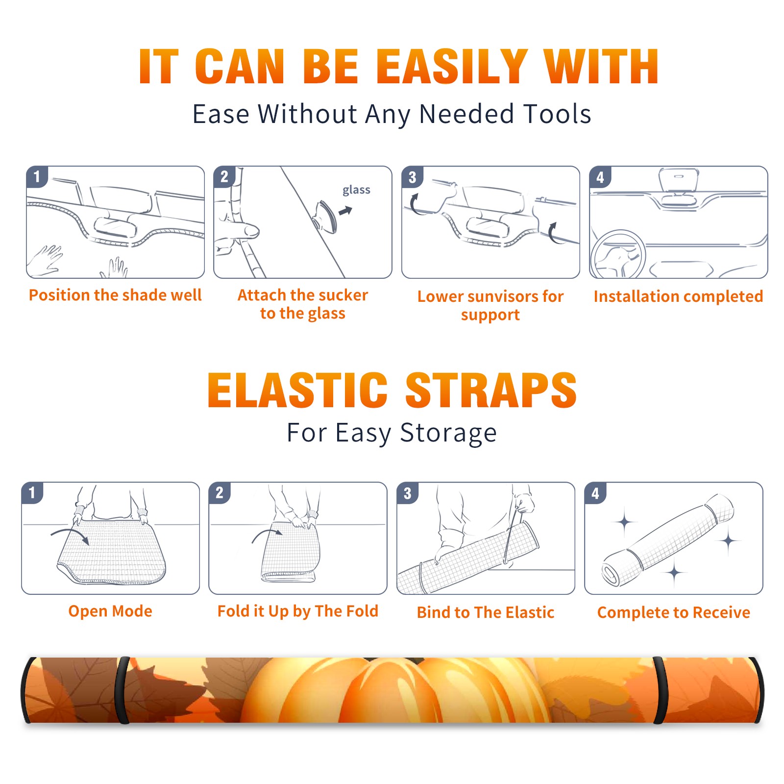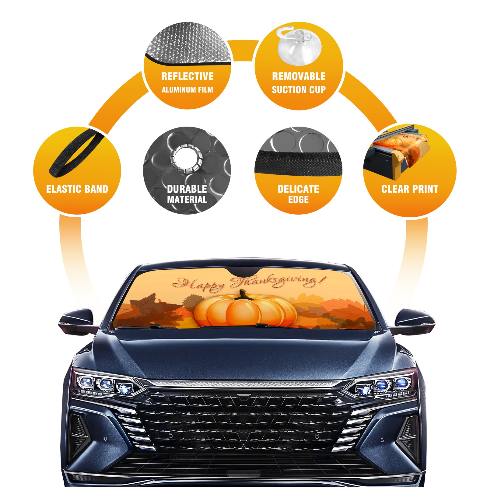 Aluminum foil polyester car sunshade pad, efficient heat insulation and sun protection artifactThanksgiving Pumpkin Leaves