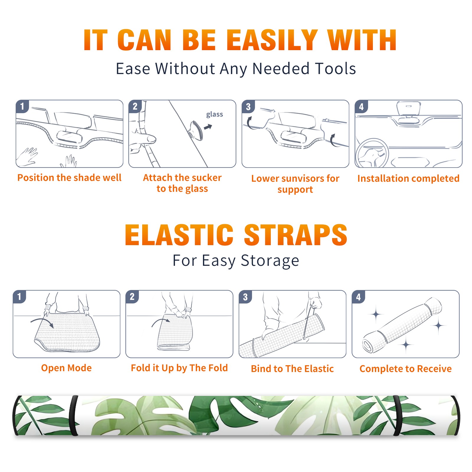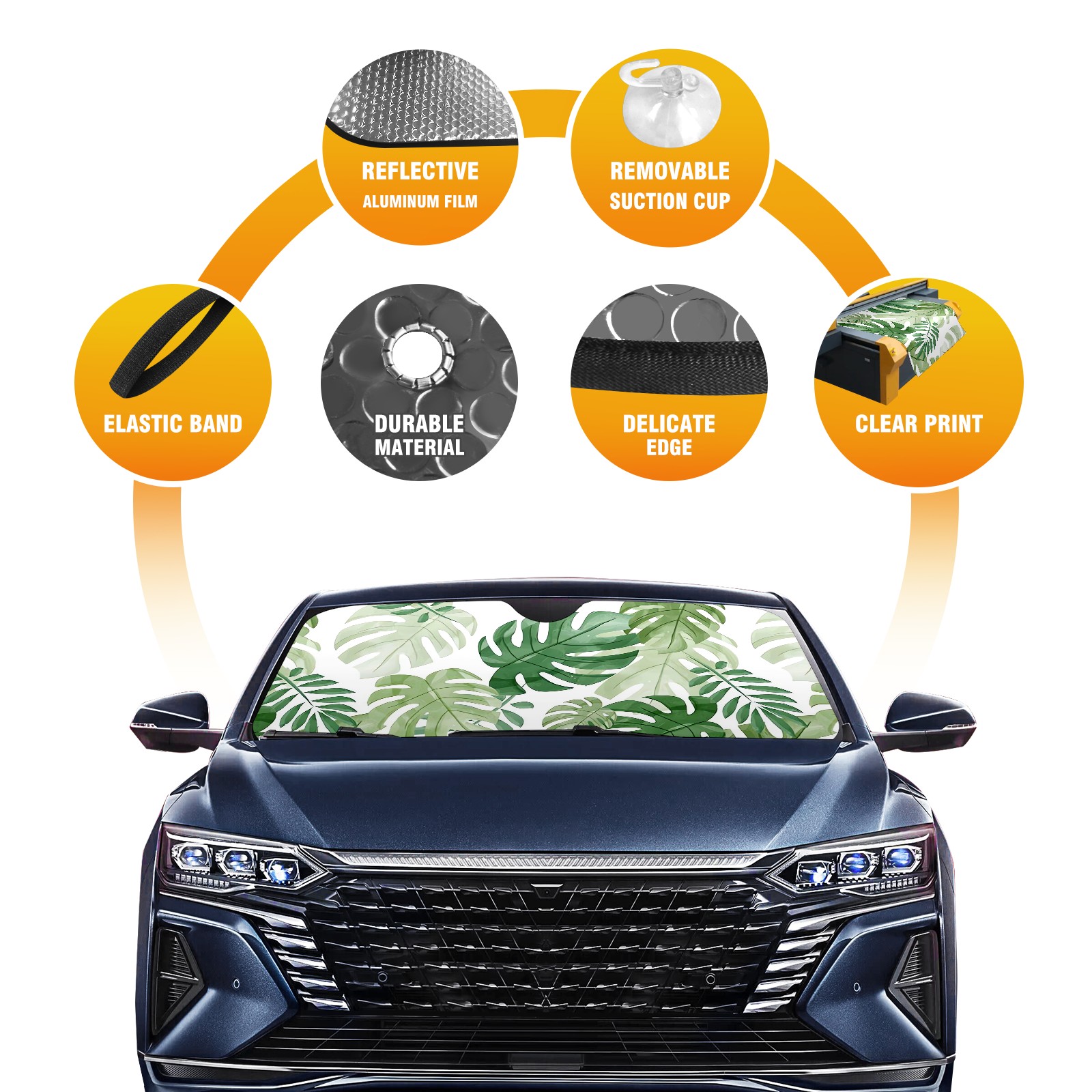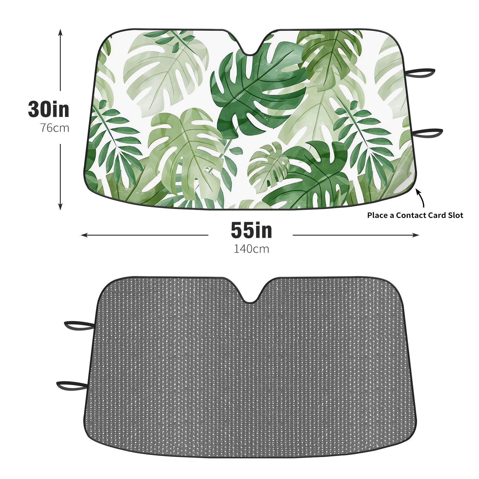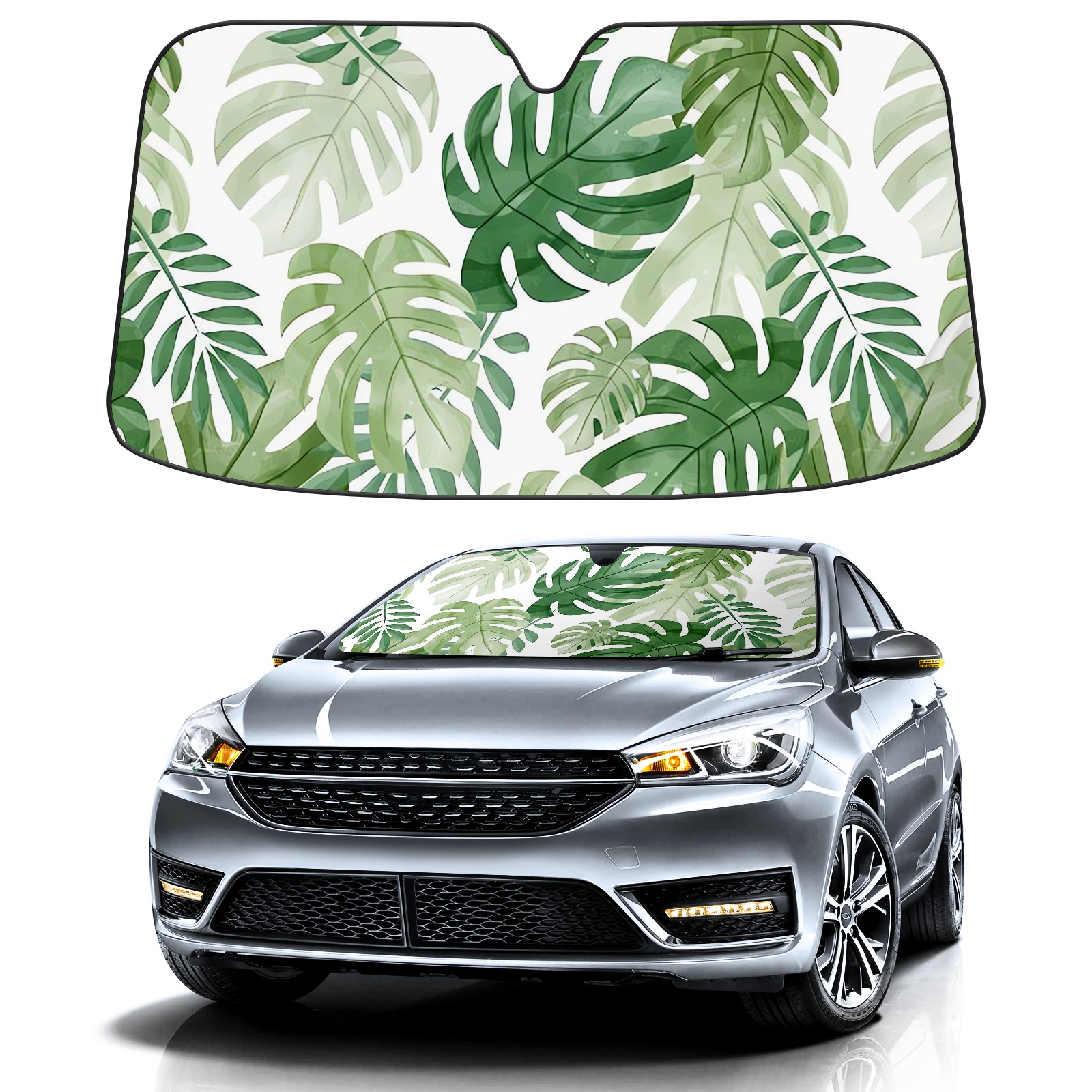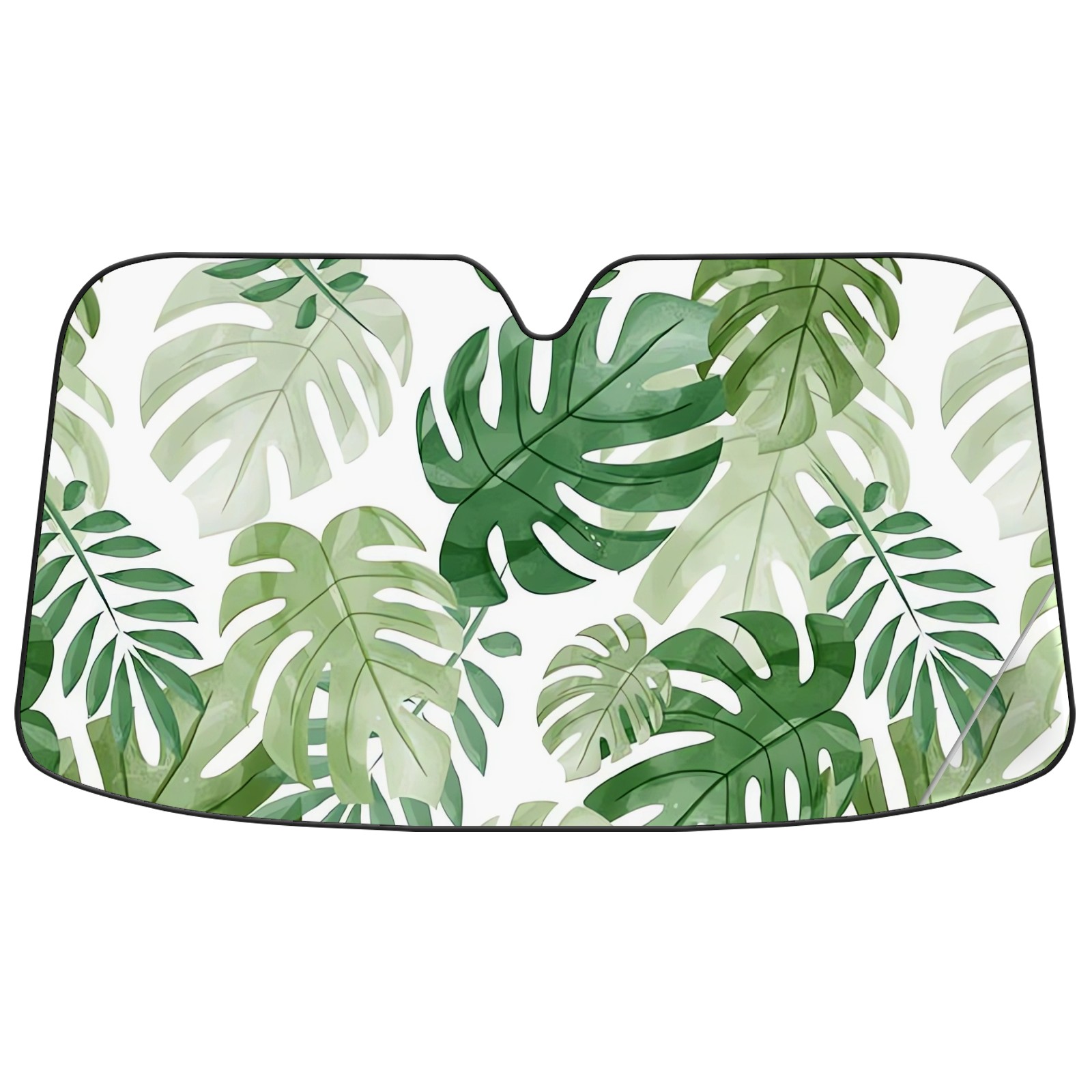 Aluminum foil polyester car sunshade pad, efficient heat insulation and sun protection artifactGreen Watercolor Monstera Leaves