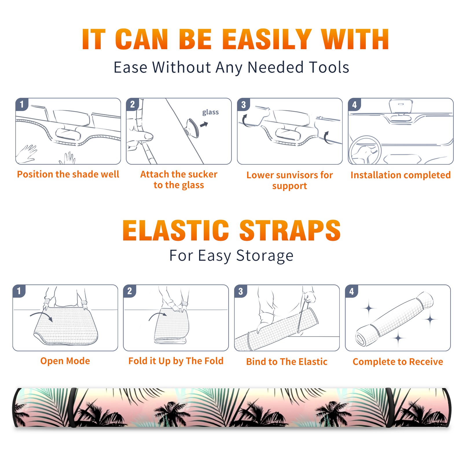 Aluminum foil polyester car sunshade pad, efficient heat insulation and sun protection artifactPalm Trees