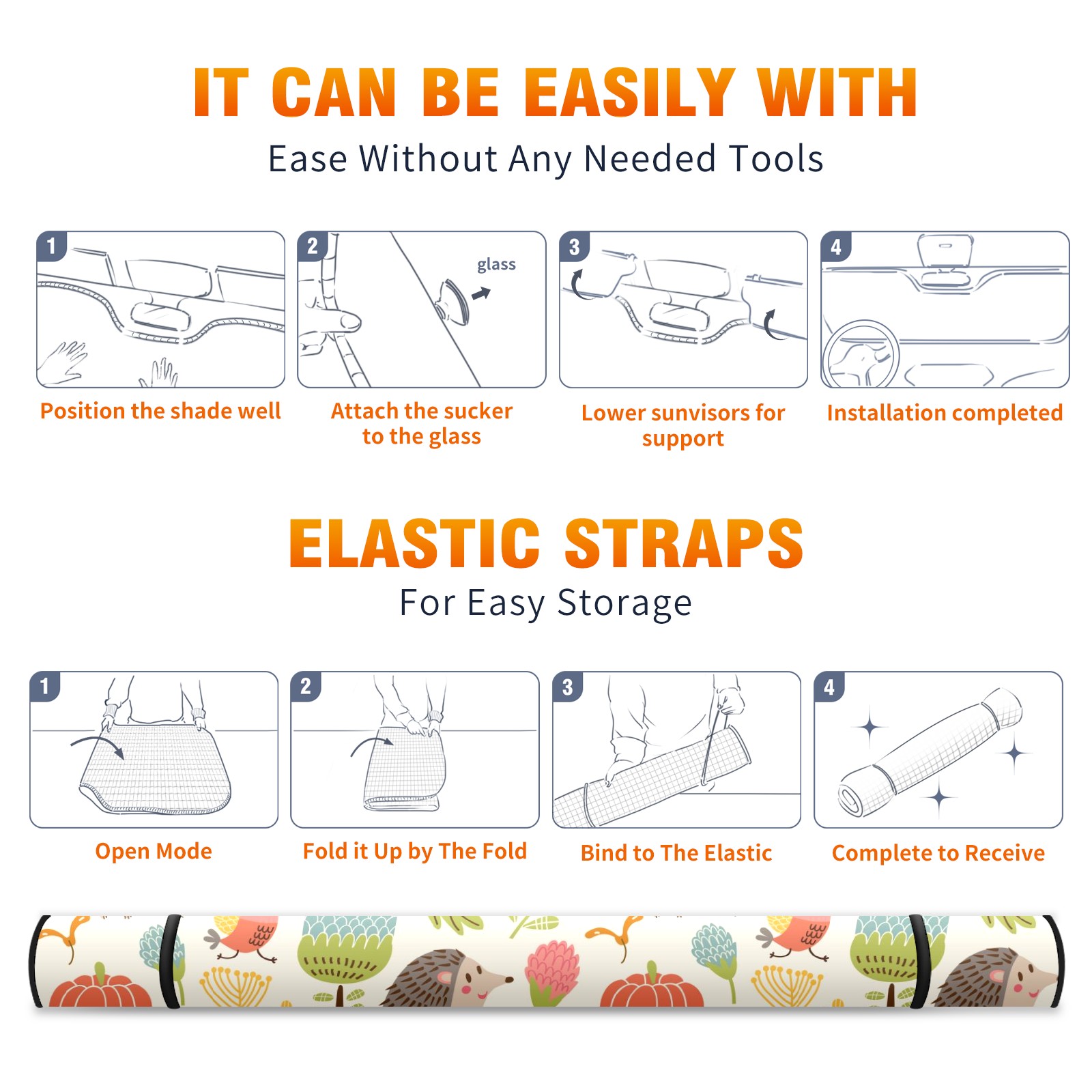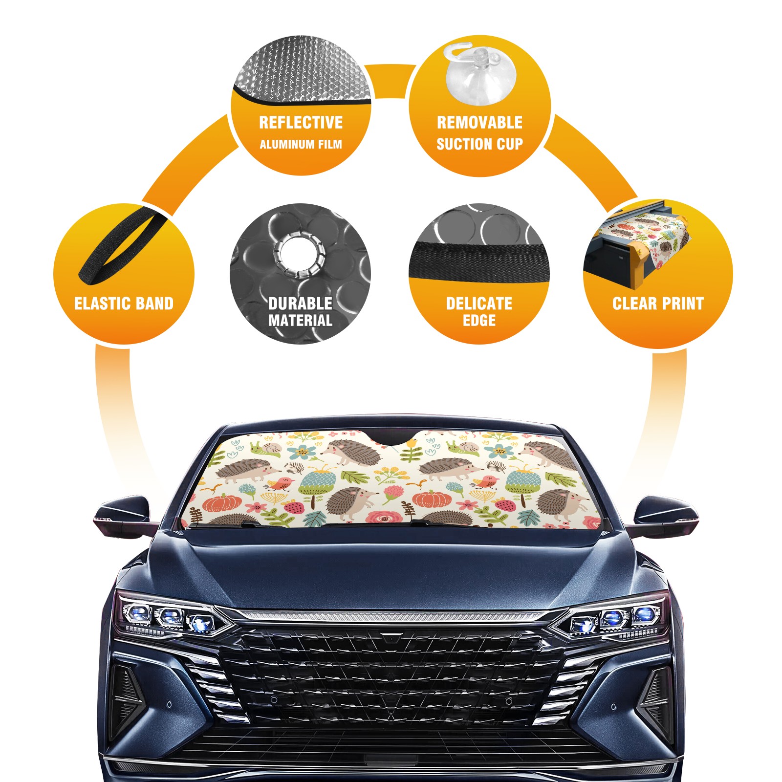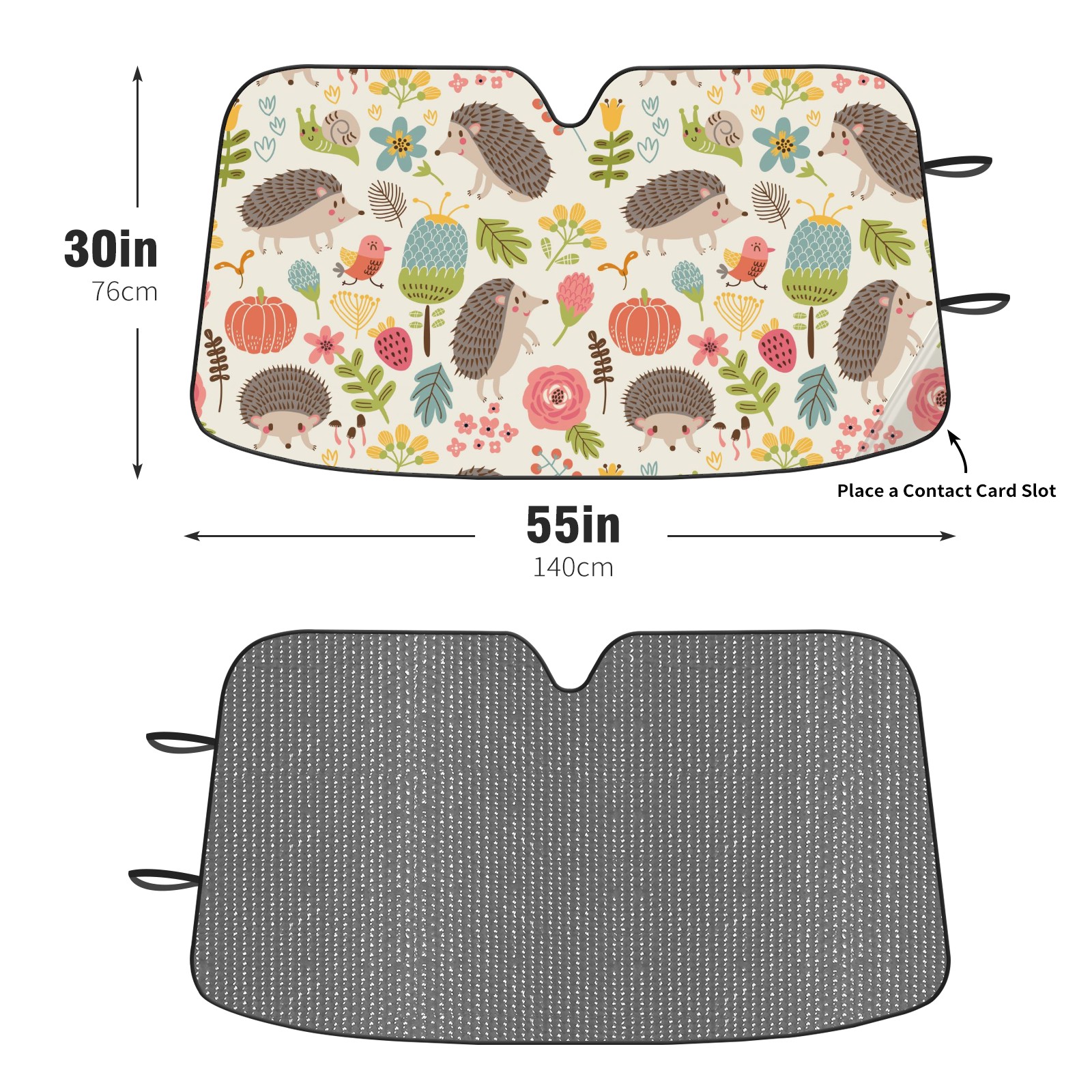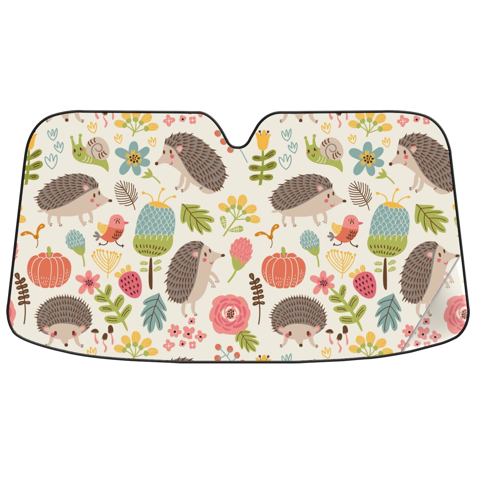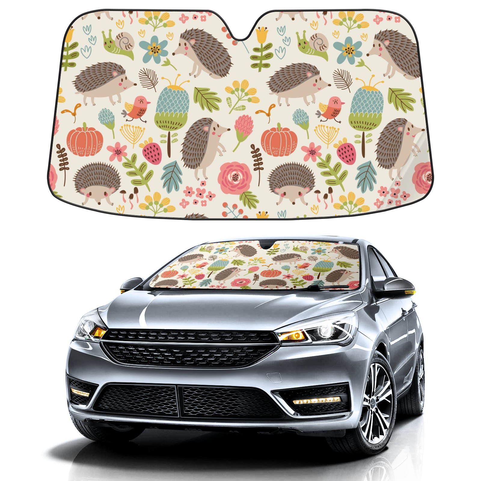 Aluminum foil polyester car sunshade pad, efficient heat insulation and sun protection artifactRetro Forest Hedgehog Floral Pattern