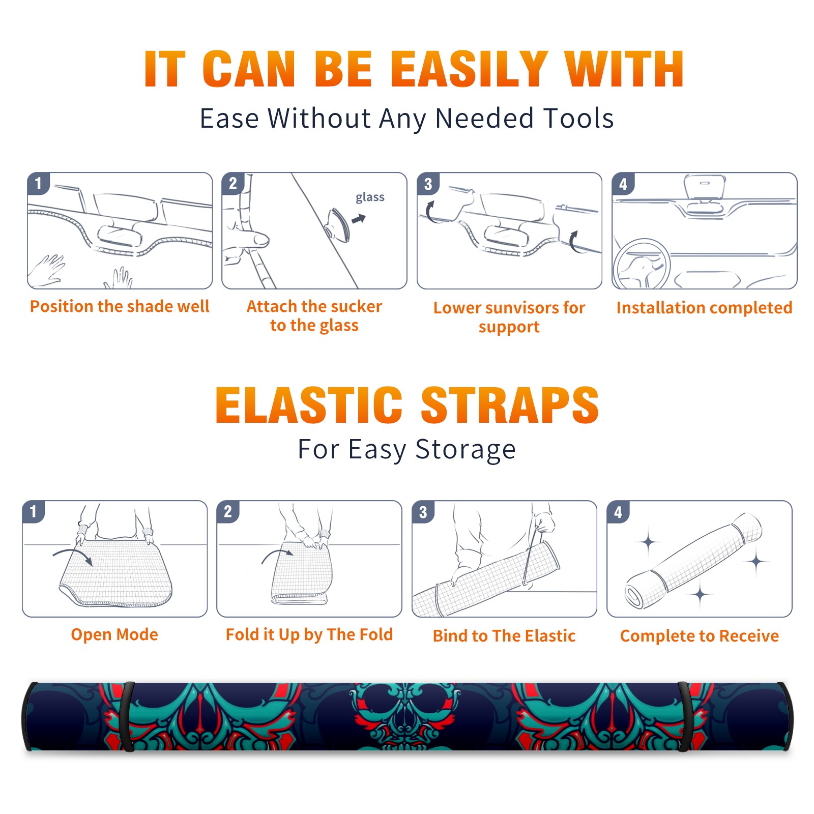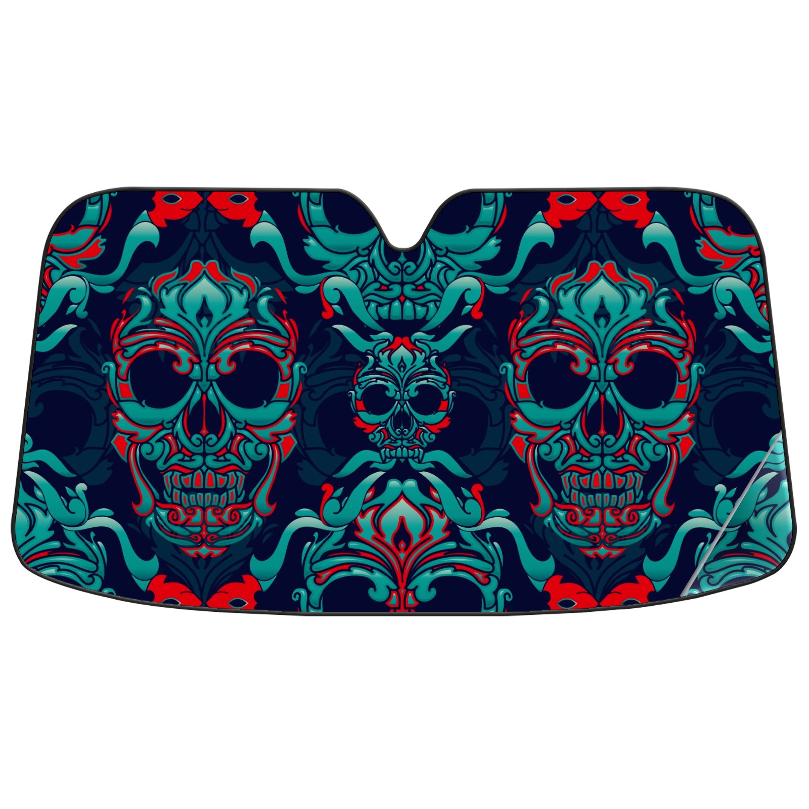 Aluminum foil polyester car sunshade pad, efficient heat insulation and sun protection artifactMexico Sugar Skull Pattern