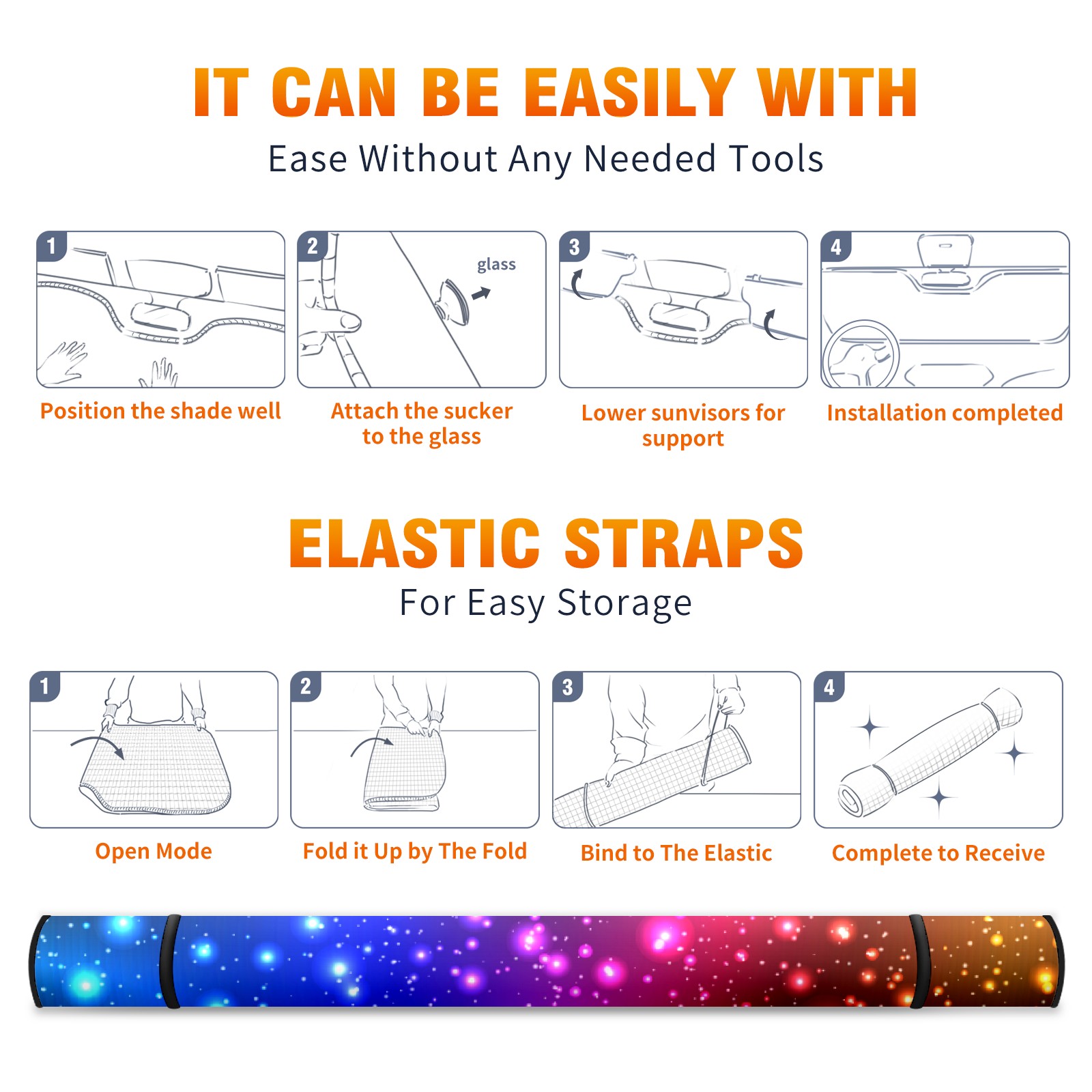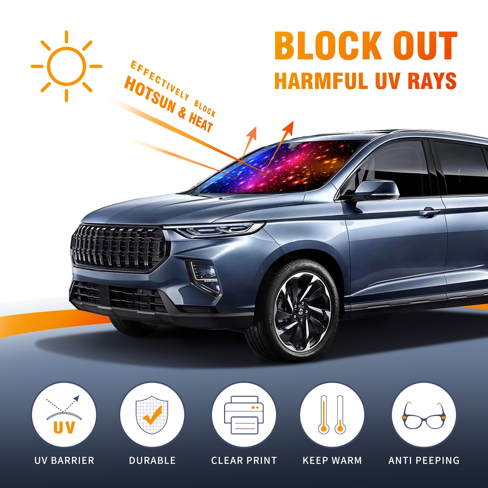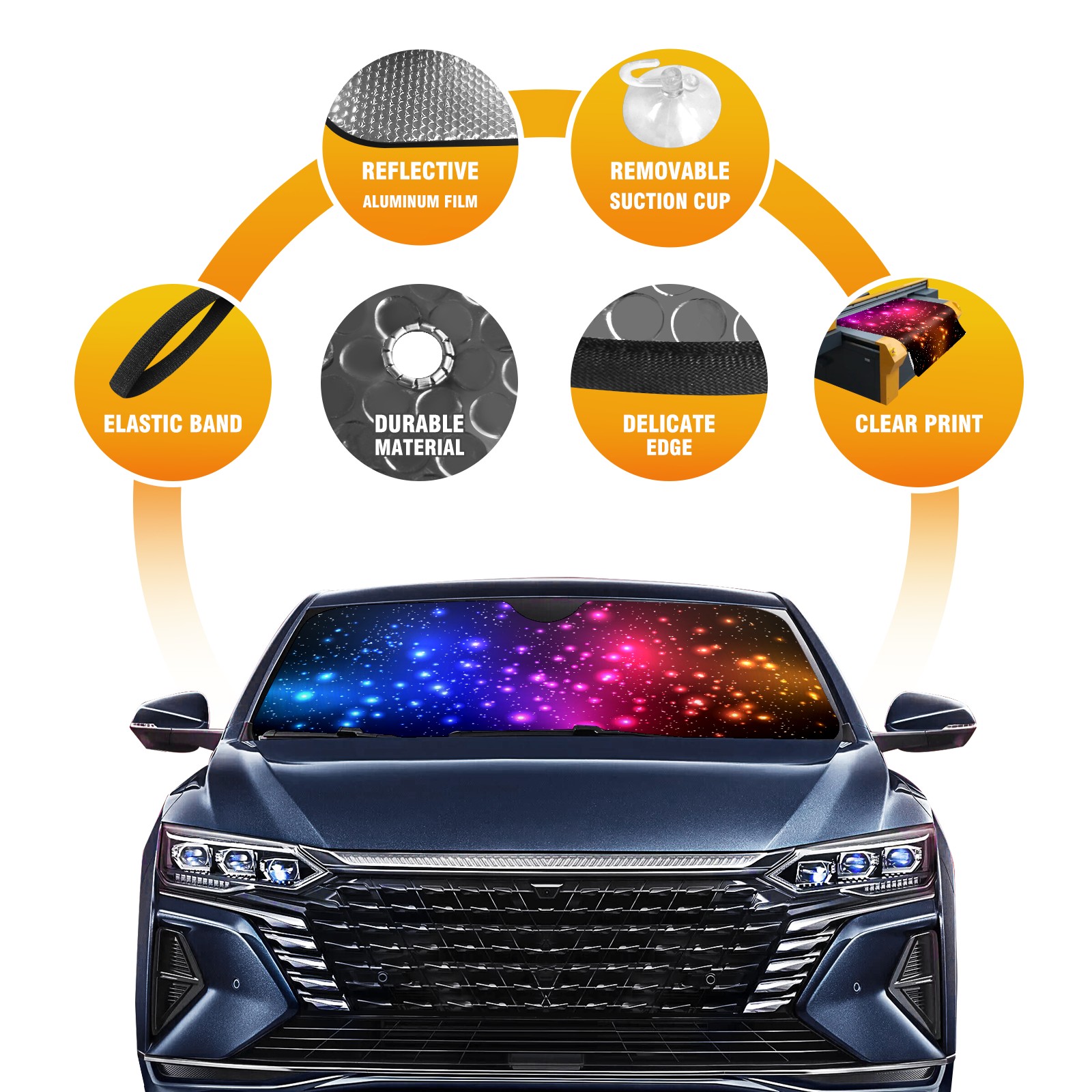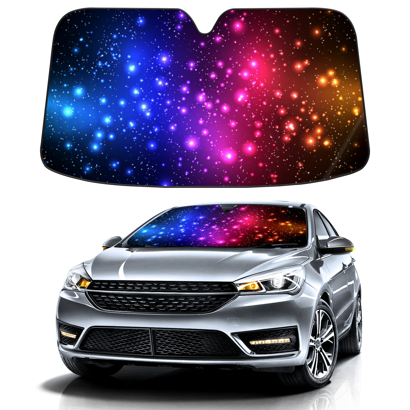 Aluminum foil polyester car sunshade pad, efficient heat insulation and sun protection artifactColorful Starry Sky Galaxy