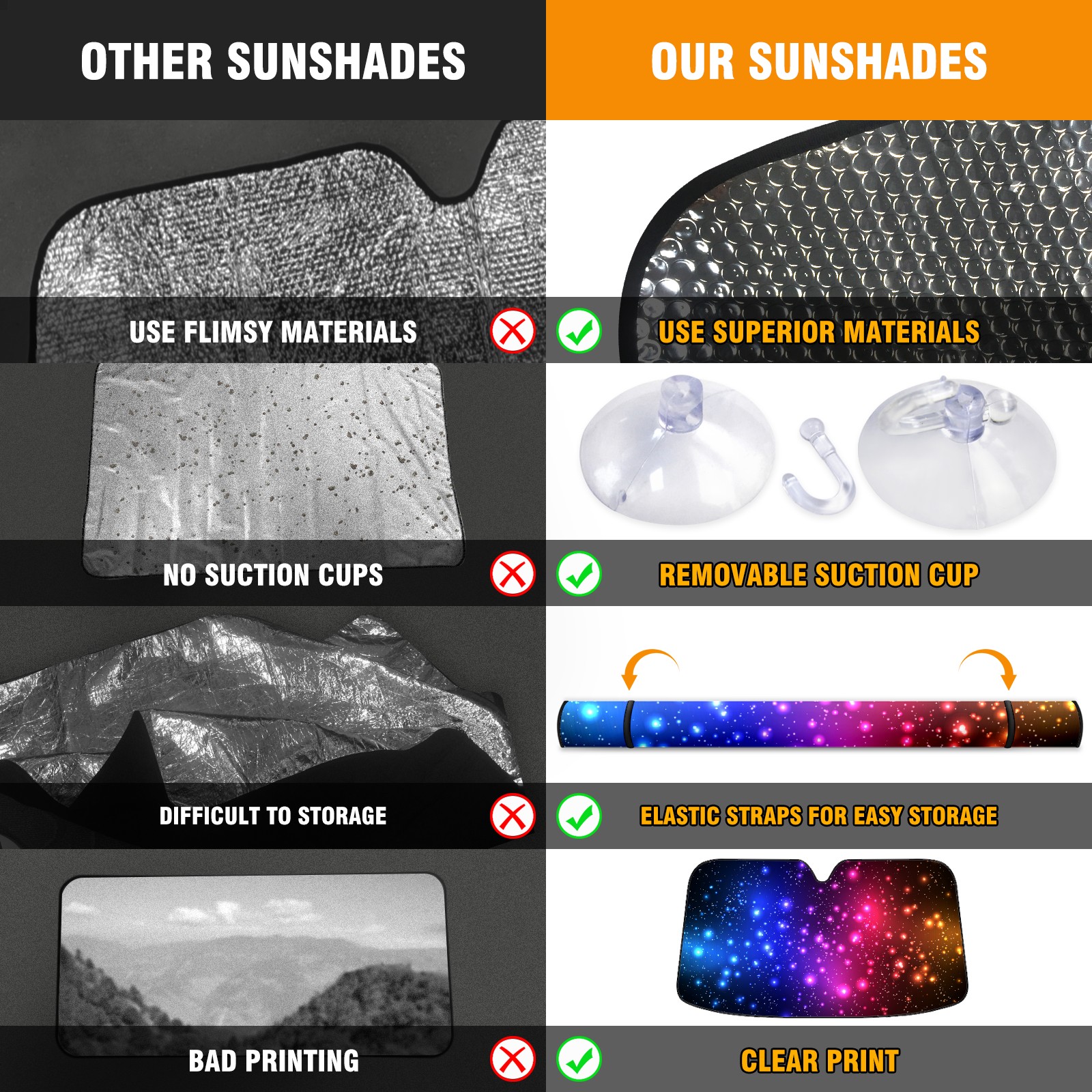 • <p>This car sunshade pad is made of a high-quality combination of aluminum foil and polyester, reinforced with transparent adhesive. It measures 140x76cm (55inx30in) and is a practical choice for protecting your car. Its powerful UV protection function can effectively block harmful light, prevent the car interior from aging due to exposure to sunlight, and maintain the dashboard, steering wheel, and seats in a brand new state.<br></p>