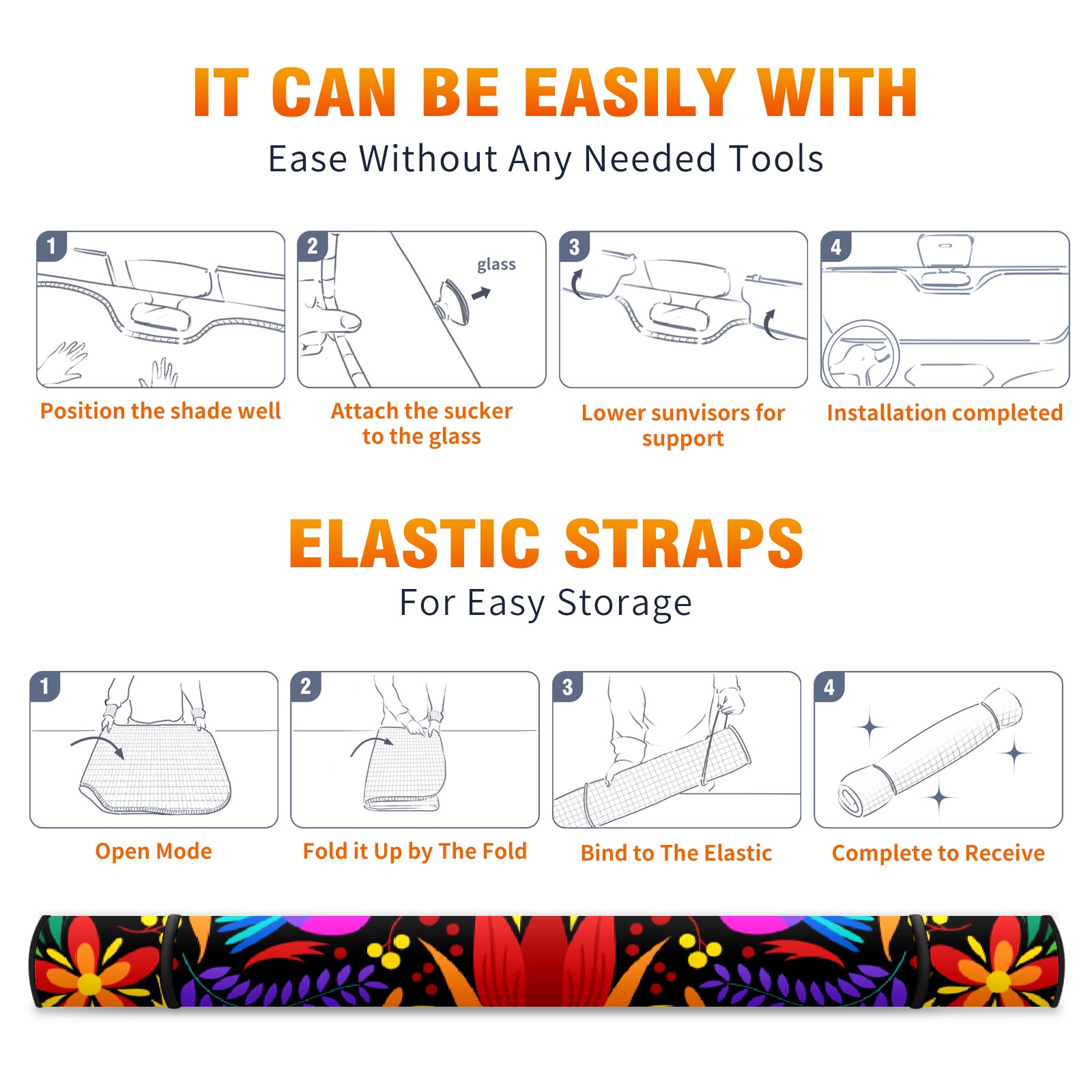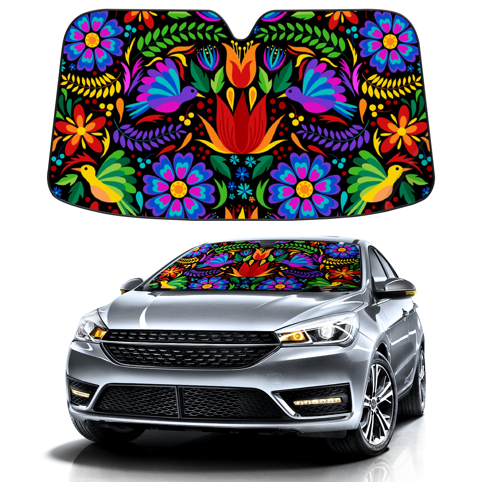 Aluminum foil polyester car sunshade pad, efficient heat insulation and sun protection artifactBoho Ethnic Mexican Colorful Floral