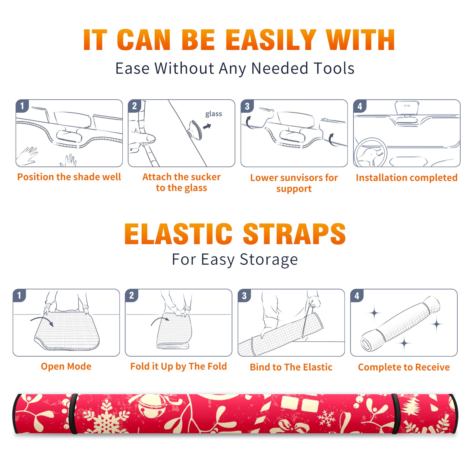 Aluminum foil polyester car sunshade pad, efficient heat insulation and sun protection artifactChristmas Cartoon Bell