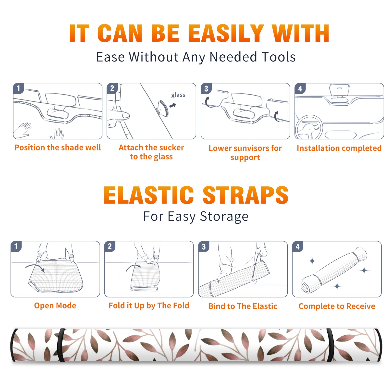 Aluminum foil polyester car sunshade pad, efficient heat insulation and sun protection artifactBoho Leaves