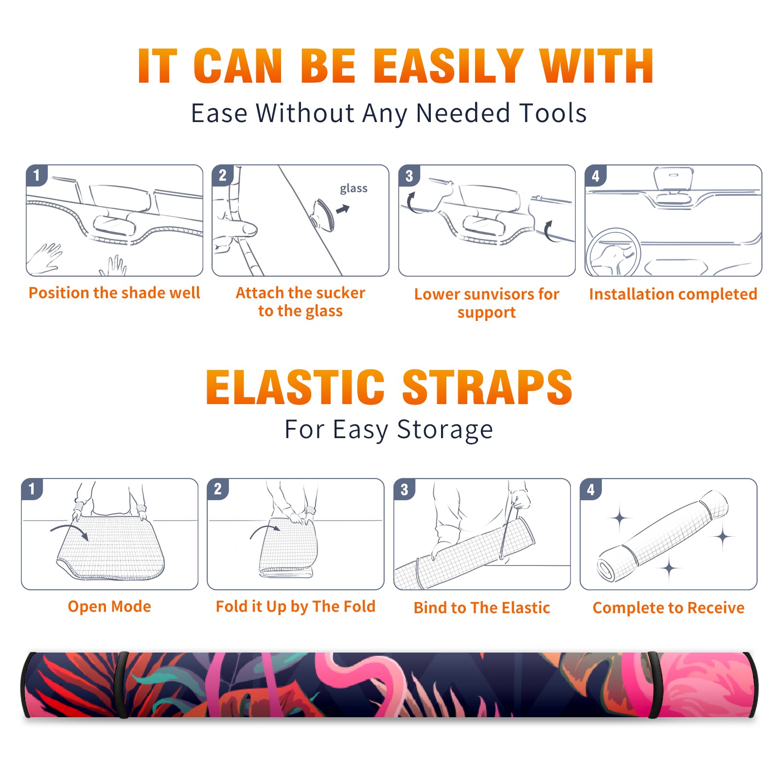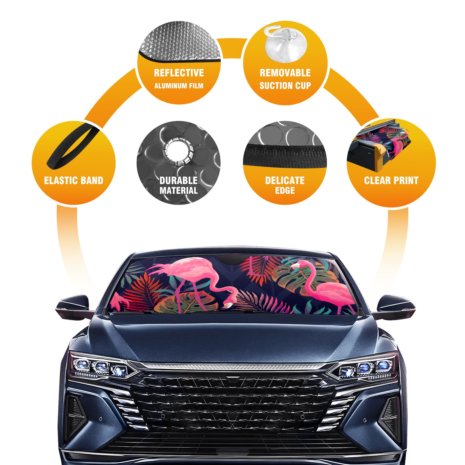 Aluminum foil polyester car sunshade pad, efficient heat insulation and sun protection artifactFlamingos Tropical Pink