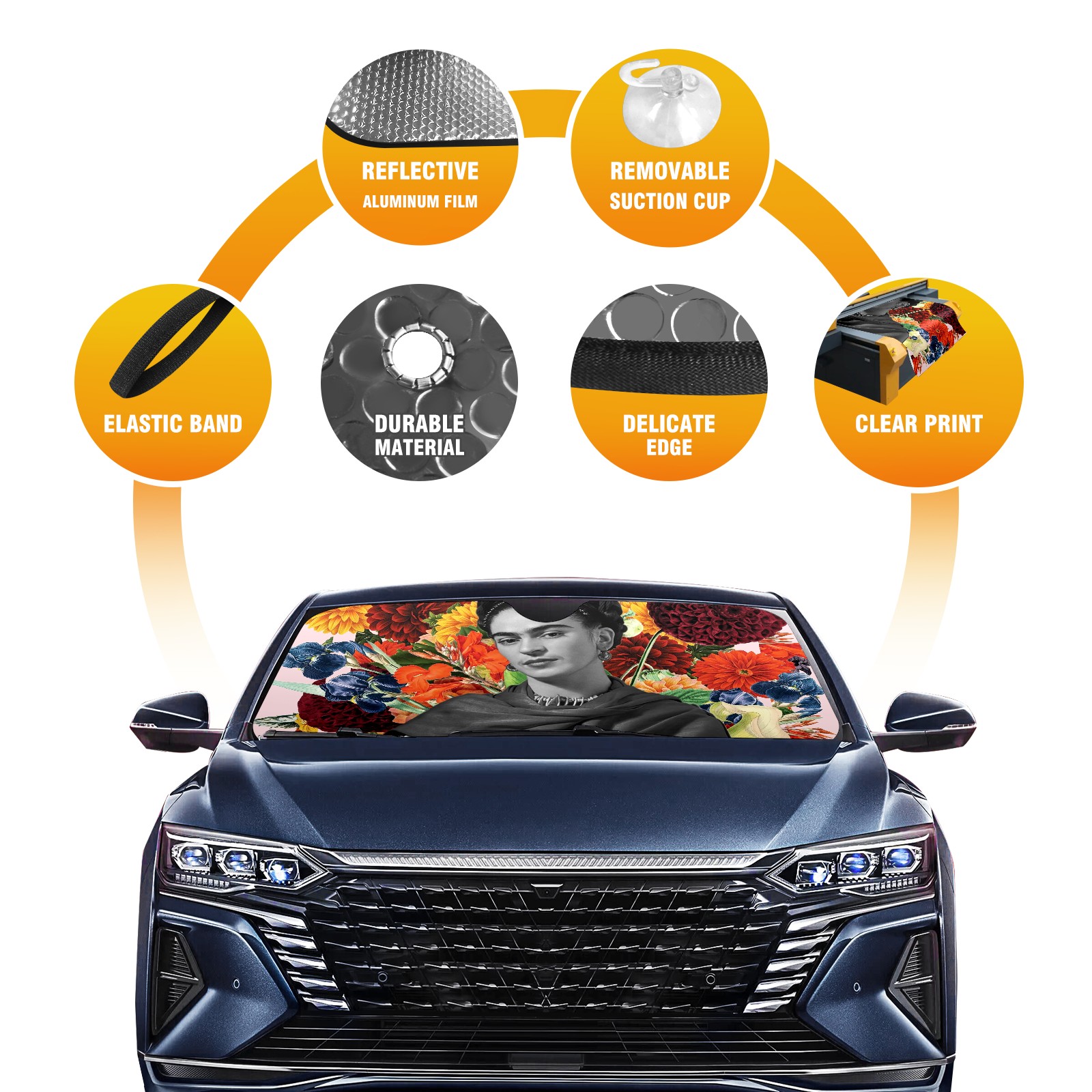 Aluminum foil polyester car sunshade pad, efficient heat insulation and sun protection artifactYandex Frida_composition_flat_4x