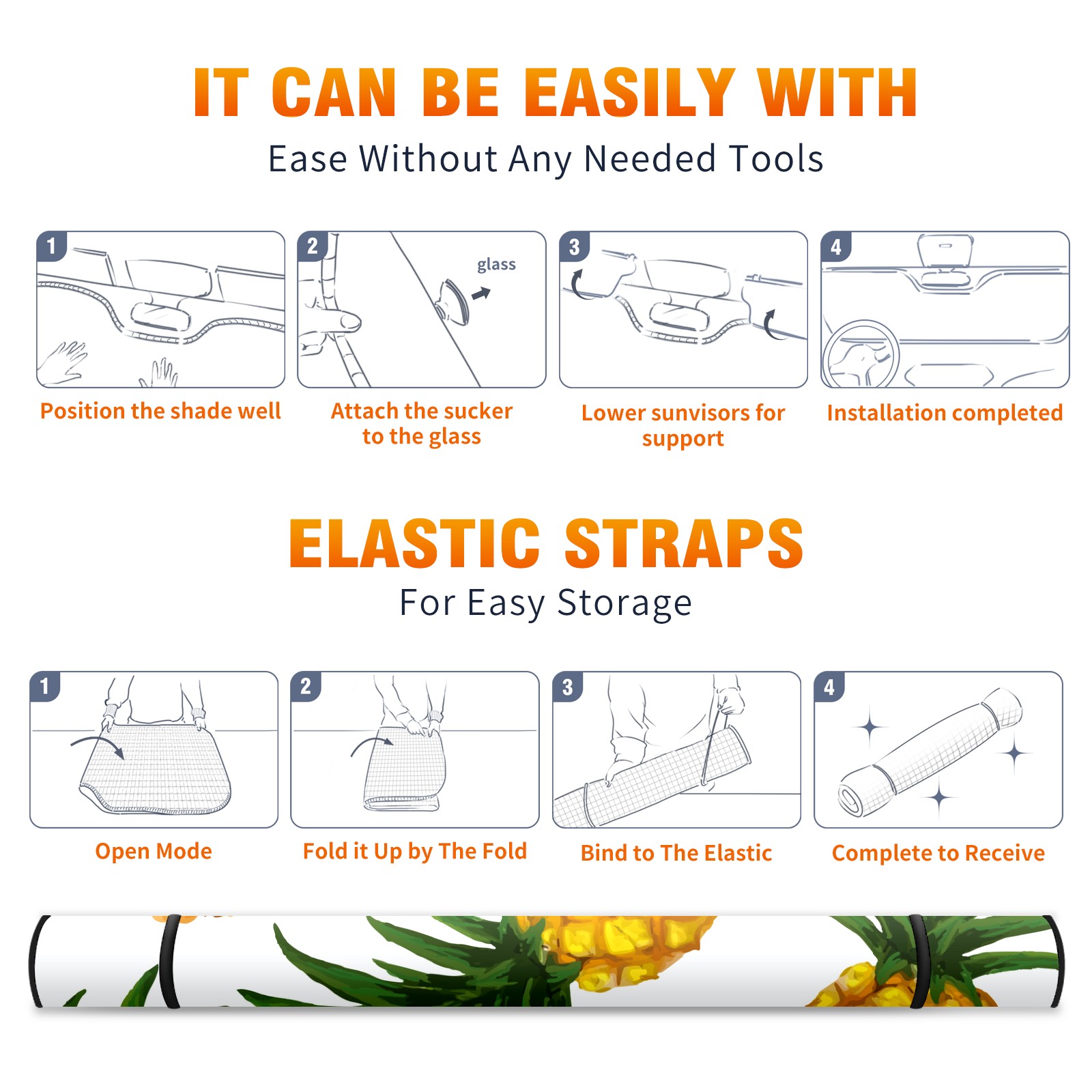 Aluminum foil polyester car sunshade pad, efficient heat insulation and sun protection artifactStripe Summer Pineapple