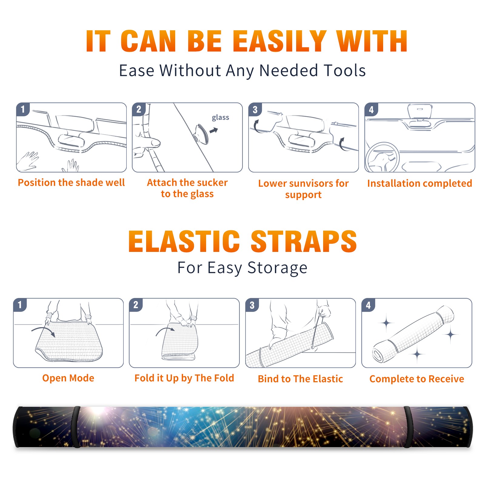 • <p>This car sunshade pad is made of a high-quality combination of aluminum foil and polyester, reinforced with transparent adhesive. It measures 140x76cm (55inx30in) and is a practical choice for protecting your car. Its powerful UV protection function can effectively block harmful light, prevent the car interior from aging due to exposure to sunlight, and maintain the dashboard, steering wheel, and seats in a brand new state.<br></p>