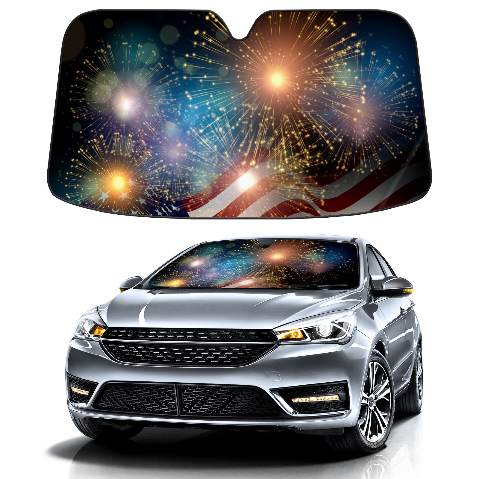 Aluminum foil polyester car sunshade pad, efficient heat insulation and sun protection artifactUsa Flag Colorful Firework